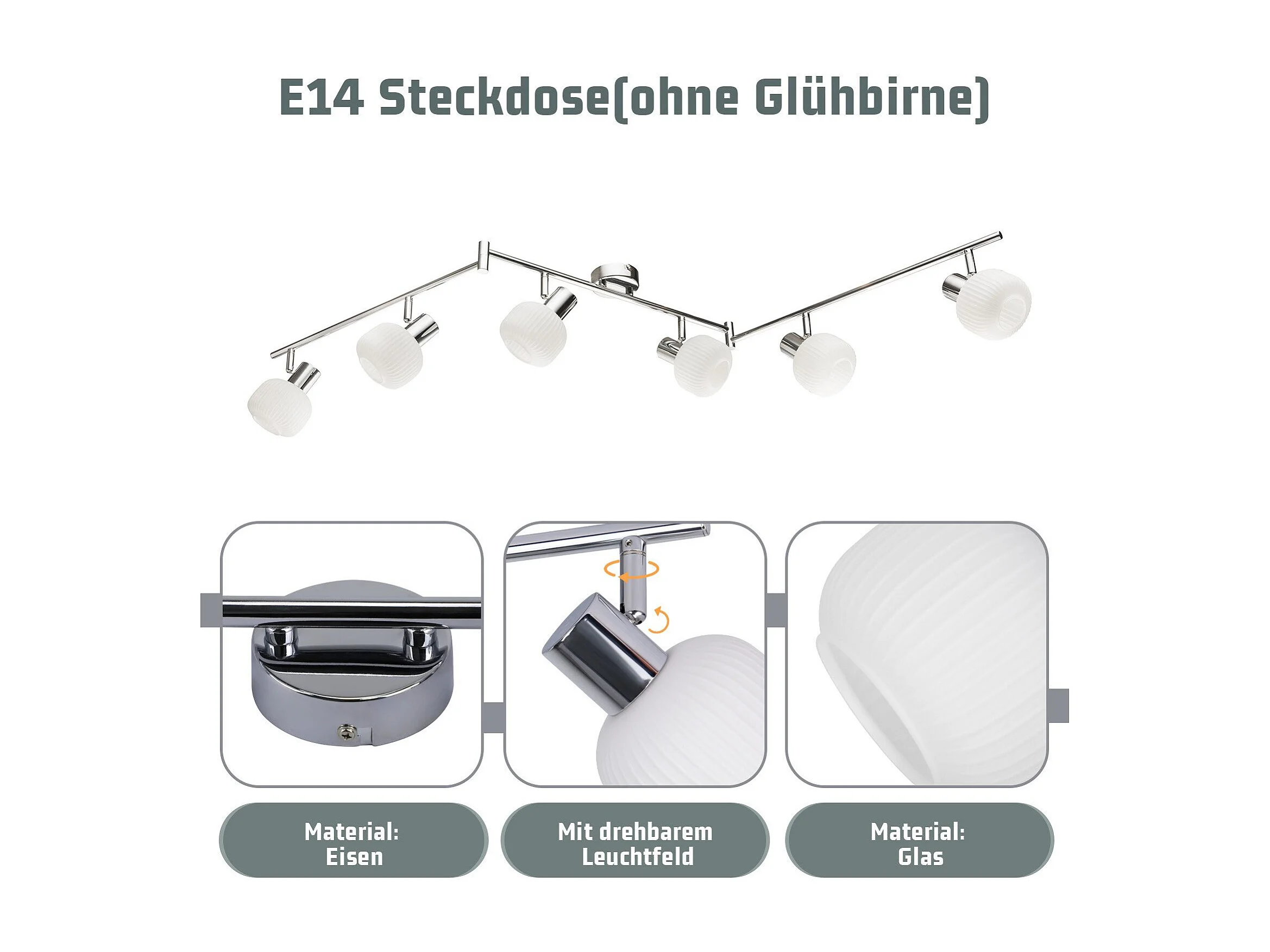 NETTLIFE Weiß Deckenstrahler E14 Deckenlampe 6-flammig Innen Glas Lampenschirm Verstellbar Strahler