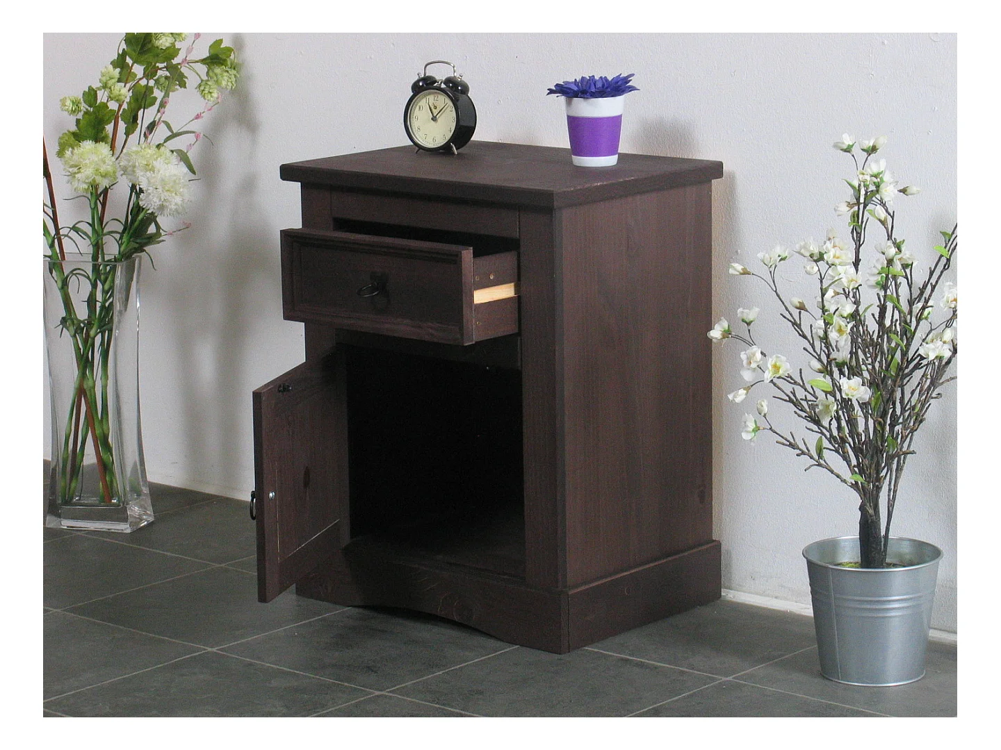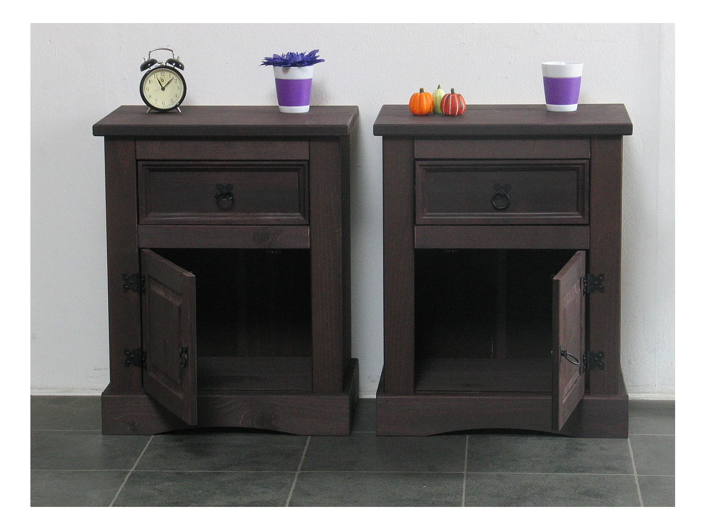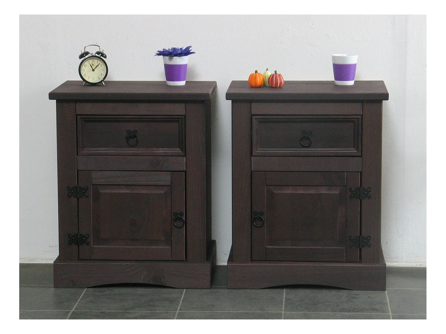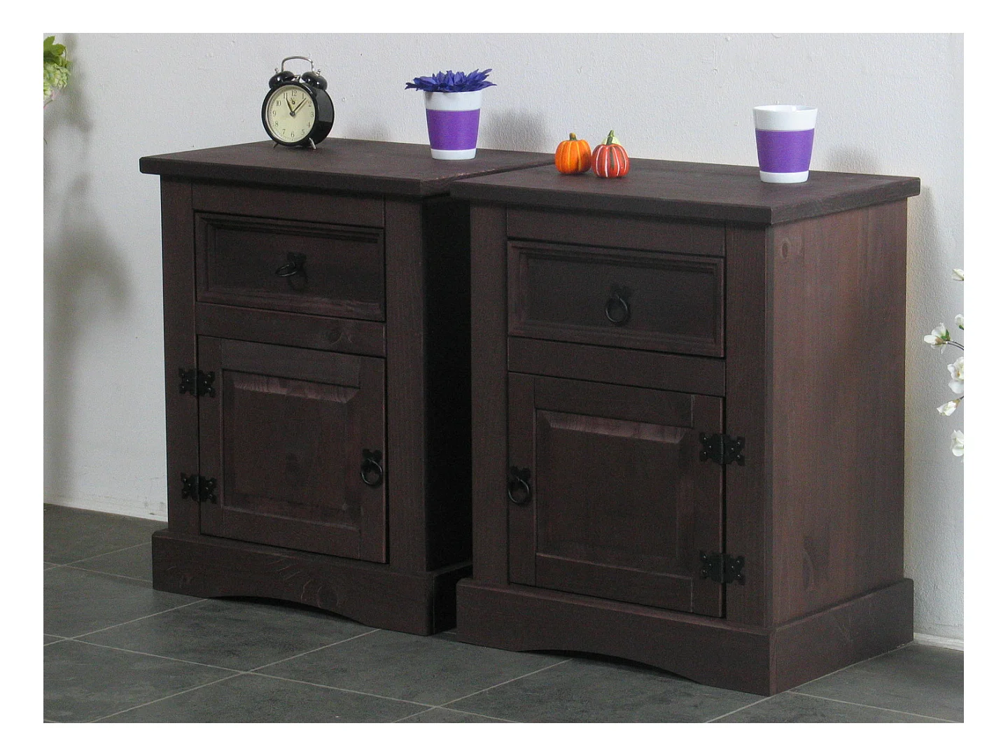 New Mexico Nachttisch 2er Set mit 1 Schublade und 1 Tür braun.