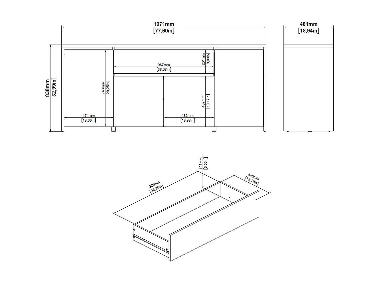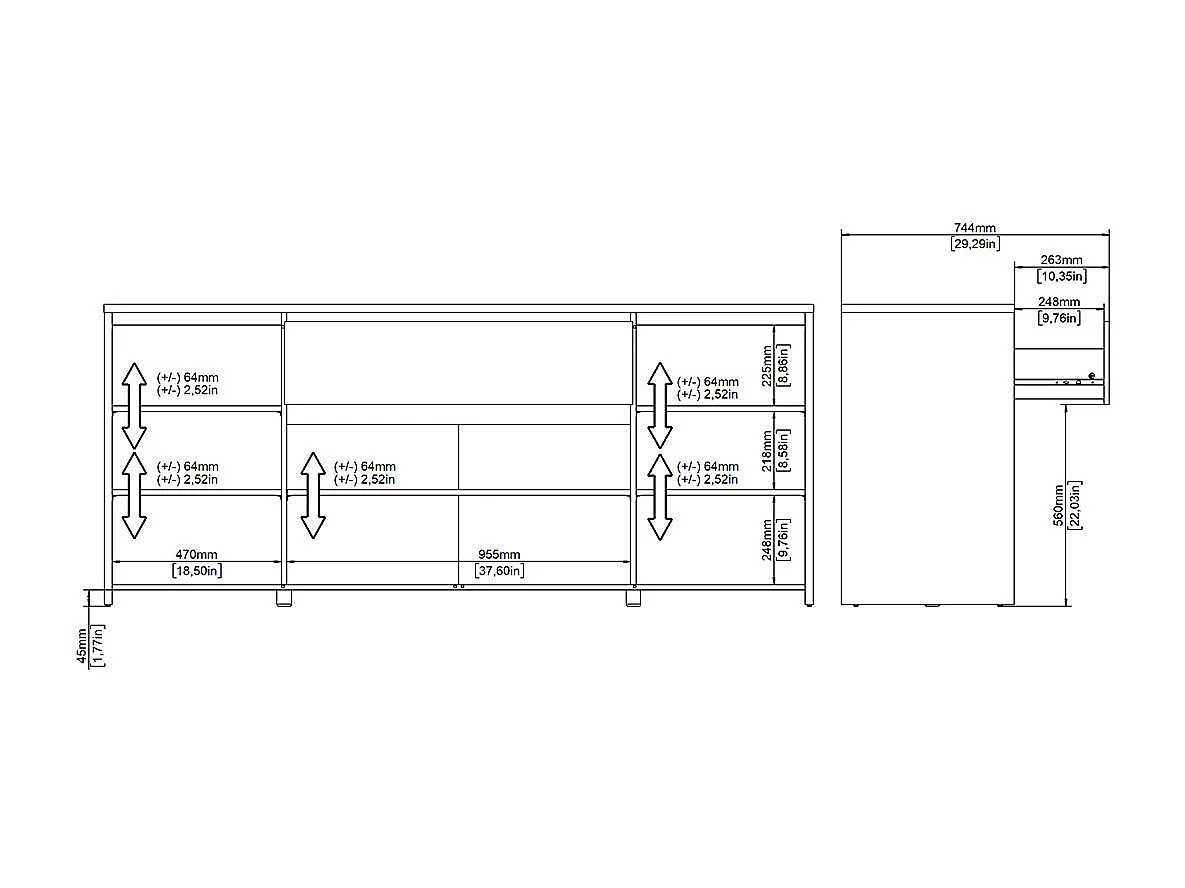 Next Sideboard 4 Türen, 1 Schublade Eichen-Dekor, weiß hochglanz.