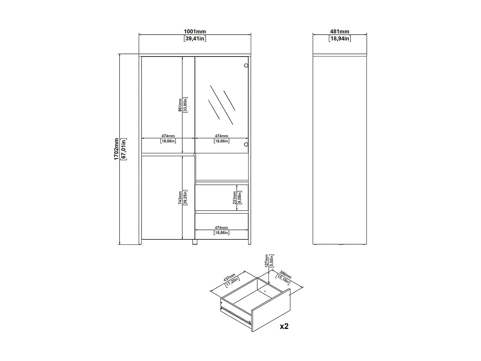 Next Vitrinenschrank 3 Türen, 2 Schubladen, 1 Ablage Eichen-Dekor, weiß hochglanz.