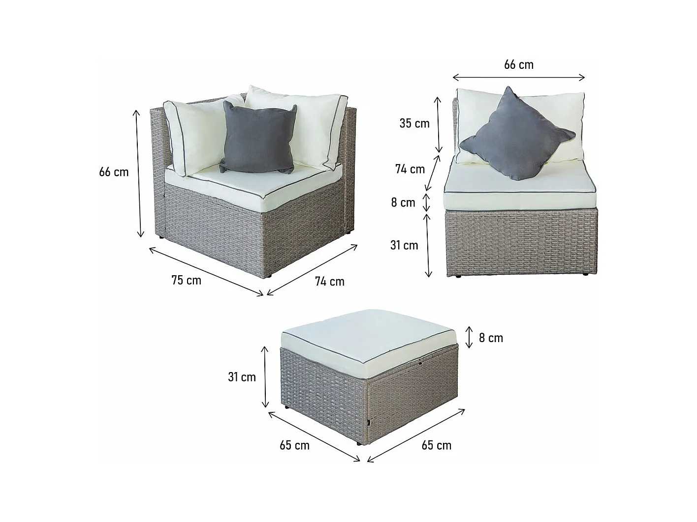 Gartenlounge aus Polyrattan "Kuba" - 3-Sitzer - Grau