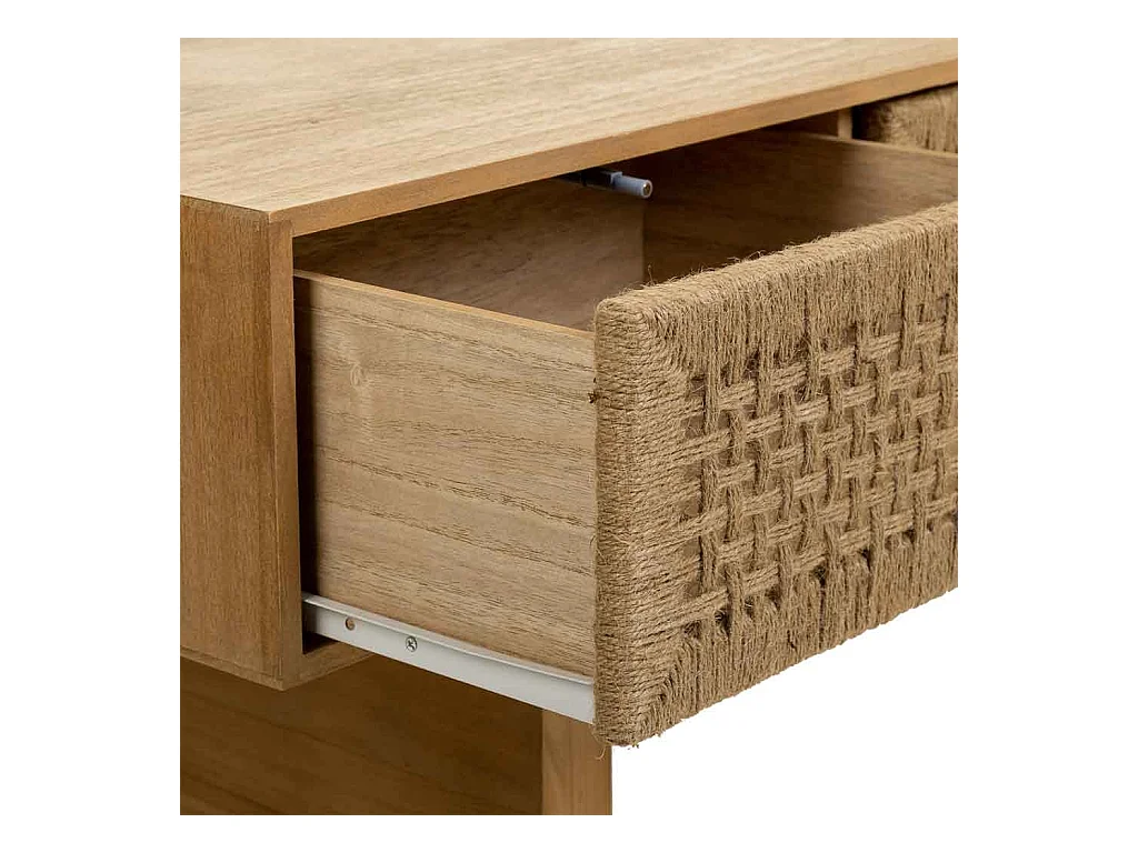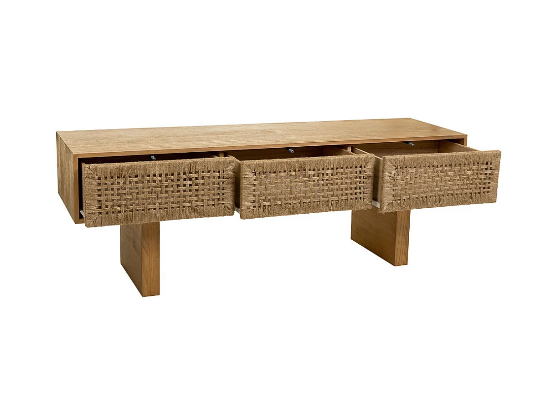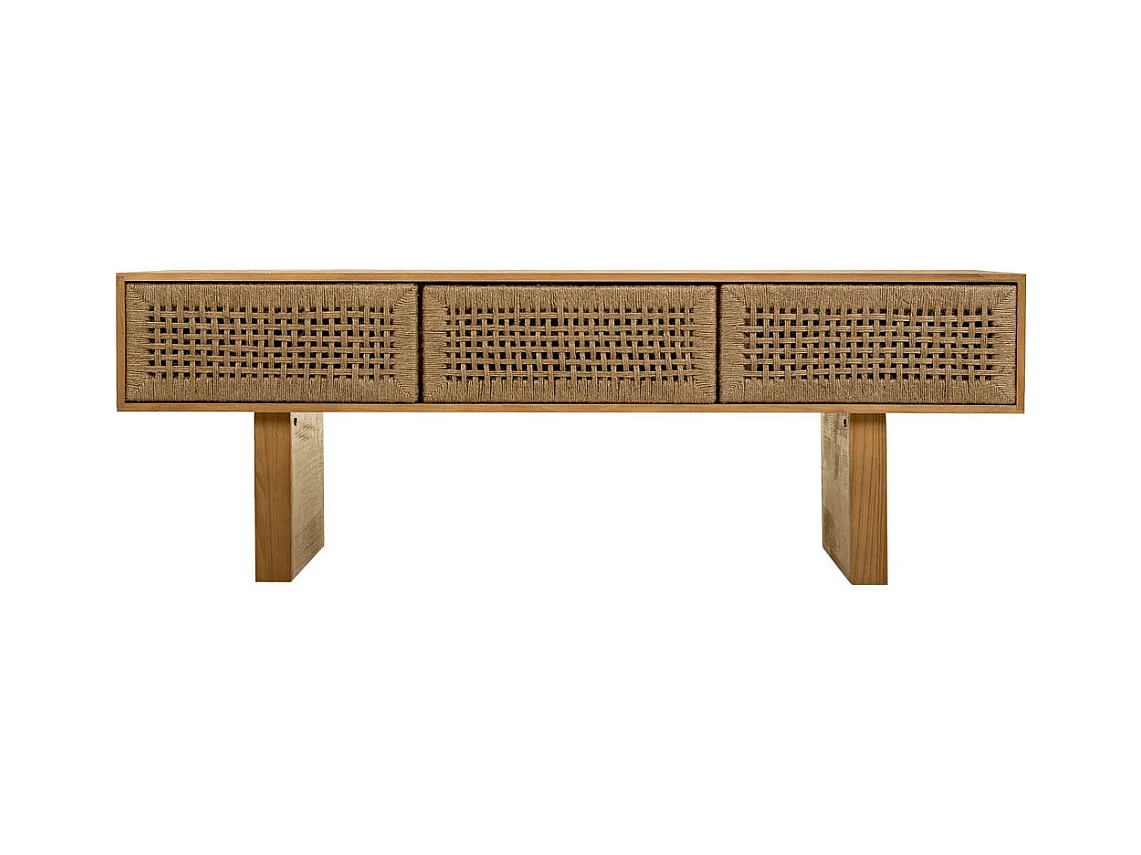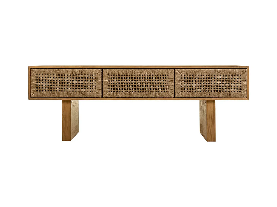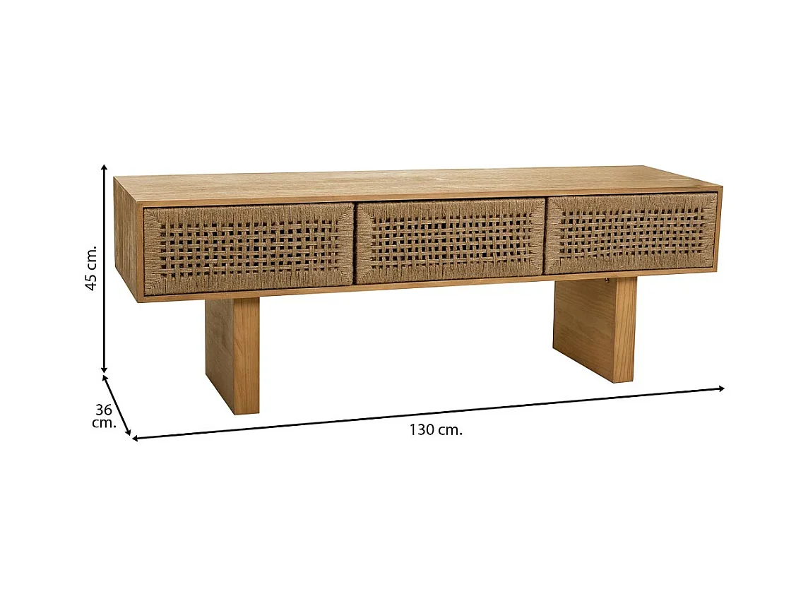 Niedriger Schrank aus Holz und braunem geflochtenem Seil 130x36x45h cm