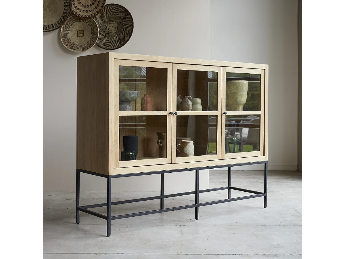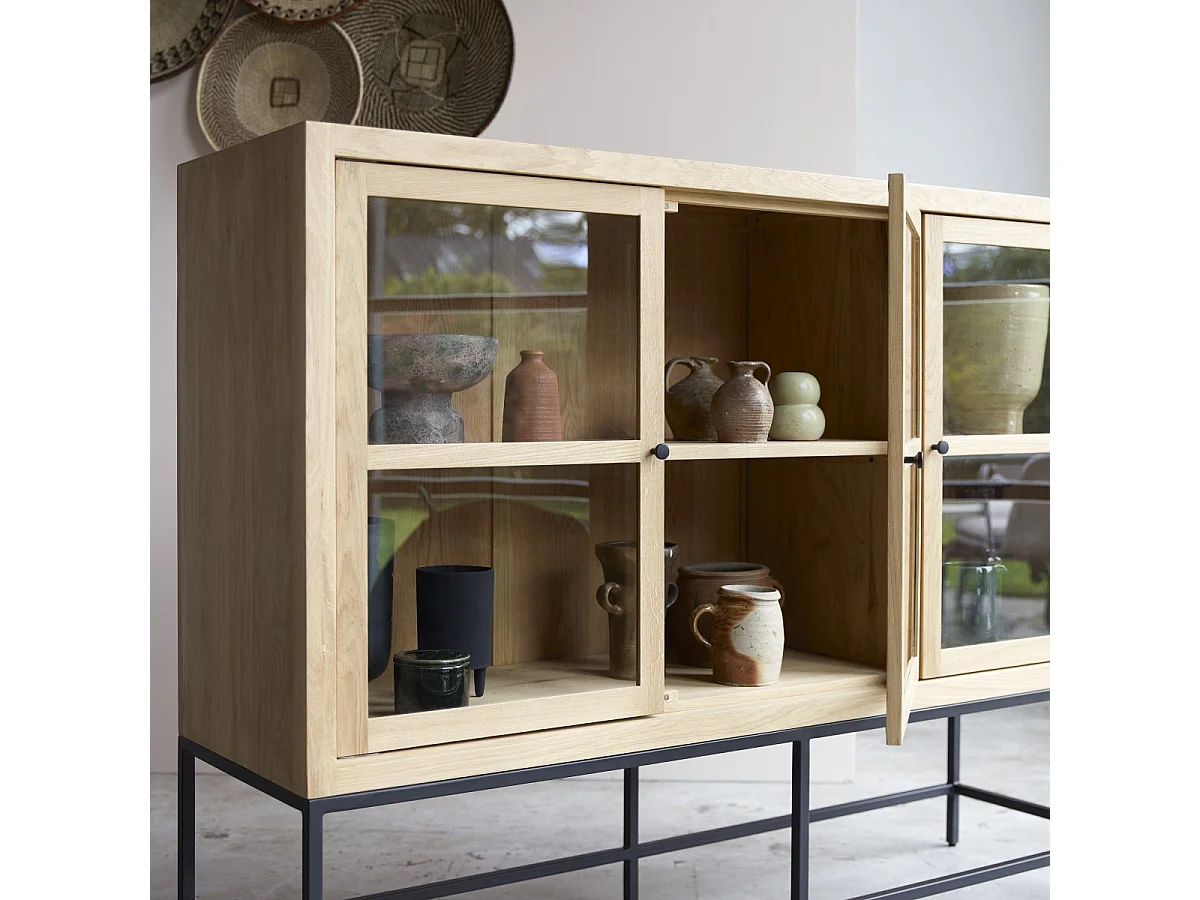 Niedriger Vitrinenschrank Babeth aus massivem Eichenholz 160