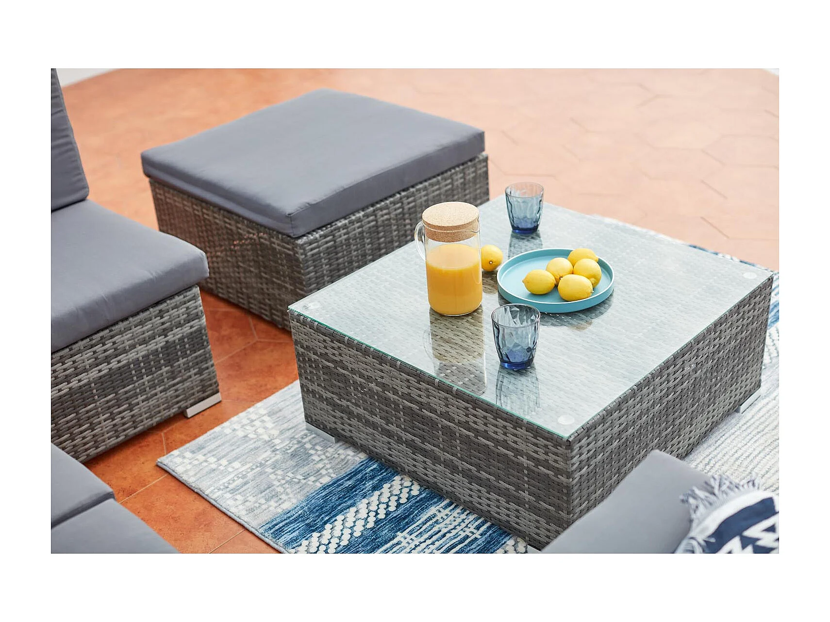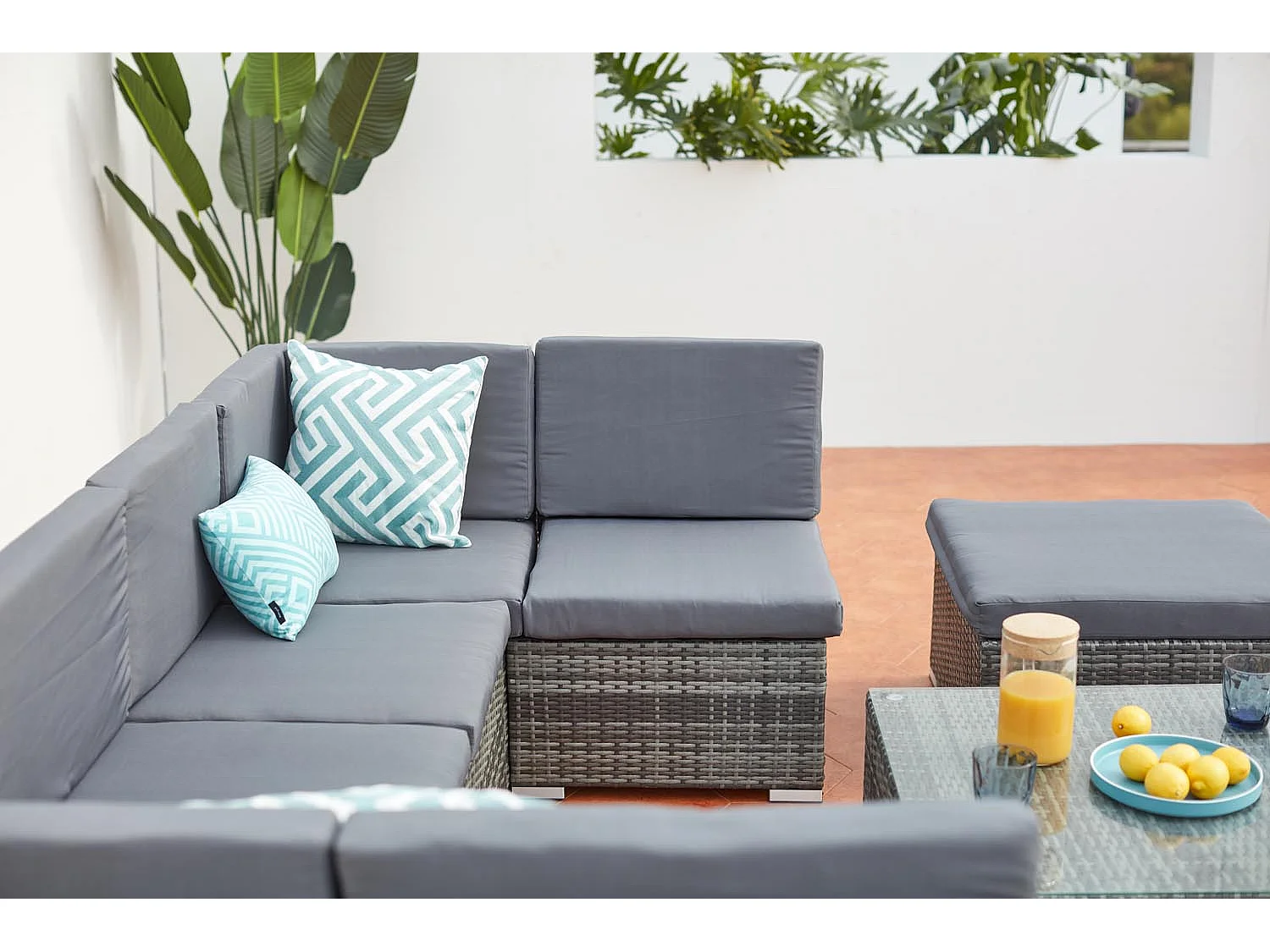 Niedriges 8-Sitzer Gartenmöbel-Set aus Harz und Stahl in Grau GUADALO - Modern, komfortabel und wetterbeständig