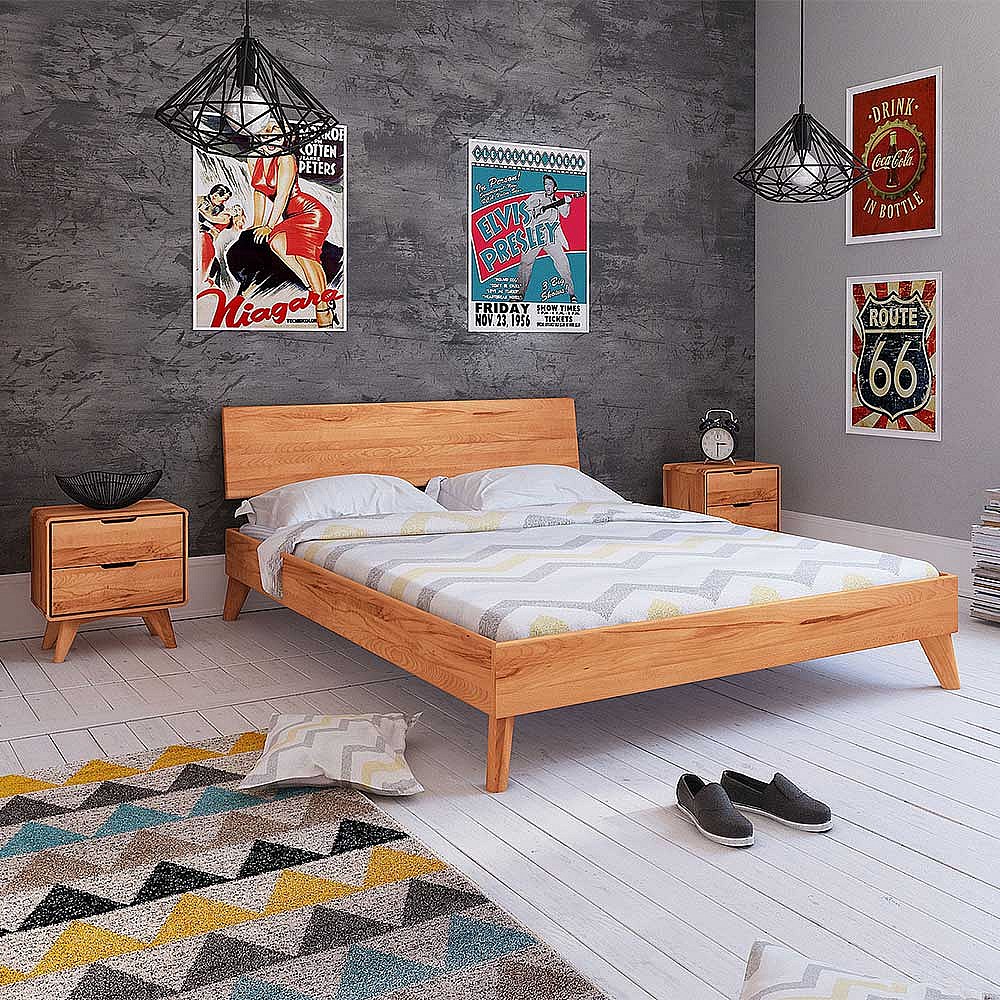 Niedriges Bettgestell aus Kernbuche Massivholz Nachtkommoden (dreiteilig)