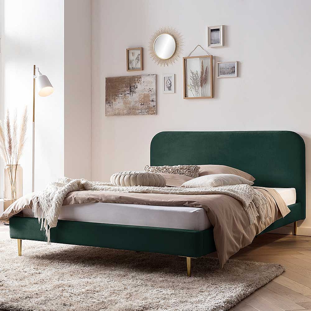 Niedriges Bettgestell mit Samt Bezug Dunkelgrün