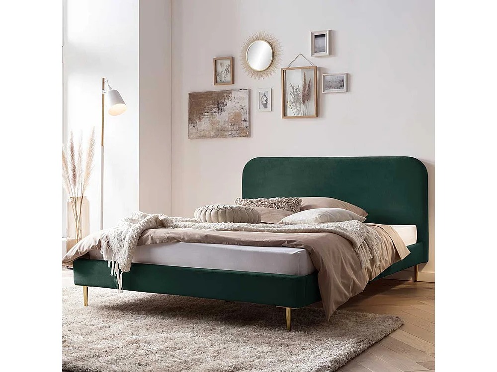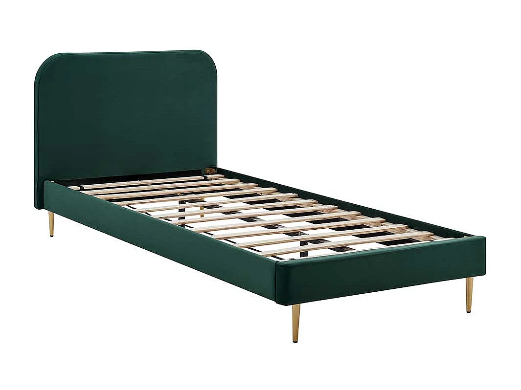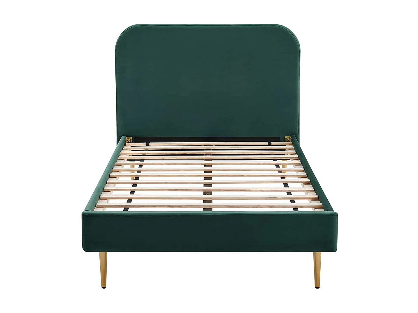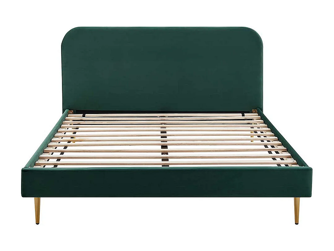 Niedriges Bettgestell mit Samt Bezug Dunkelgrün