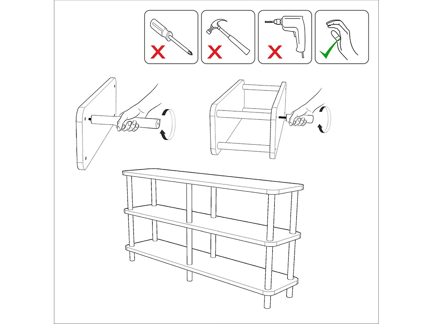 Niedriges Design-Regal SOFIE 180 cm Naturholz und schwarze Füße, 3 melaminbeschichtete Regalböden, werkzeuglose Montage