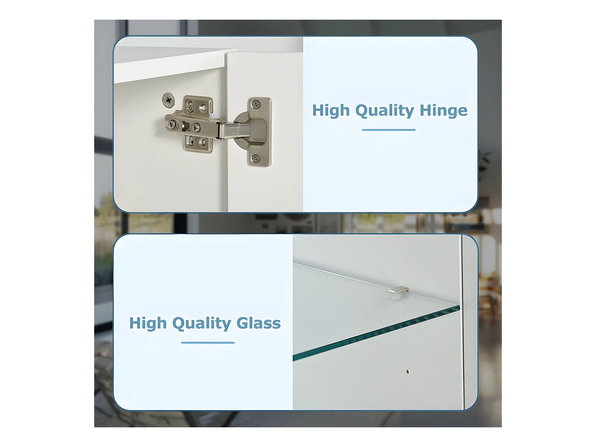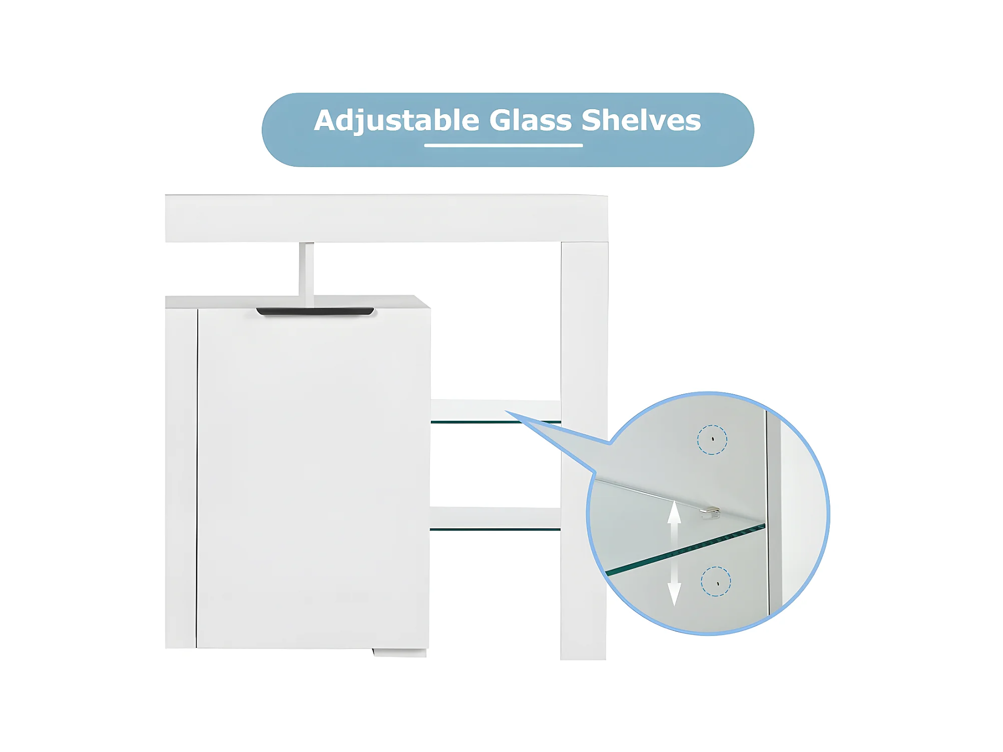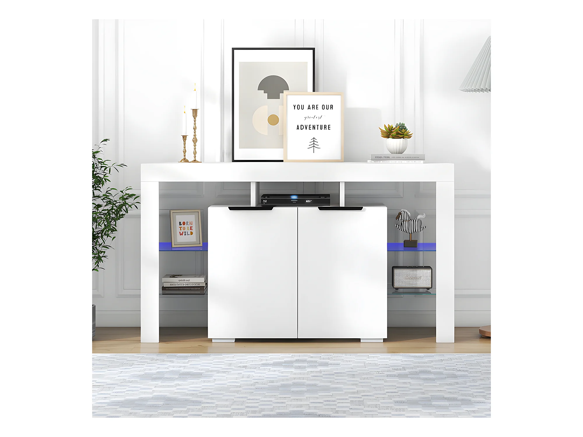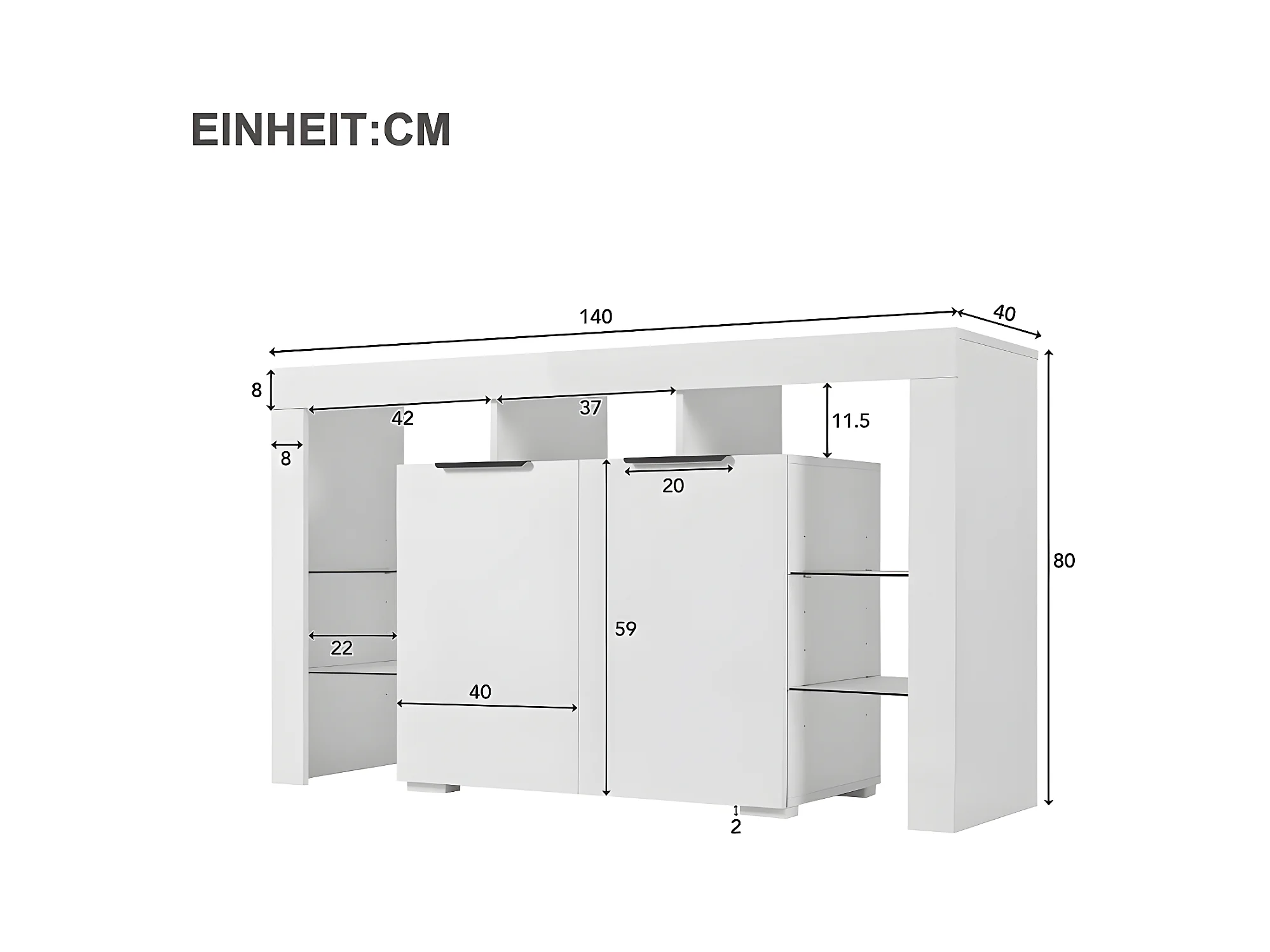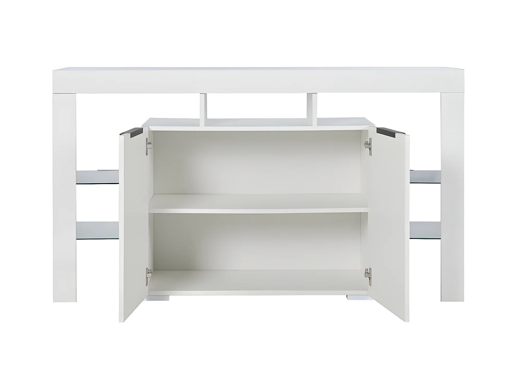 Niedriges Sideboard mit LED-Beleuchtung – 4 Glasböden und 2 Türen – Weiß