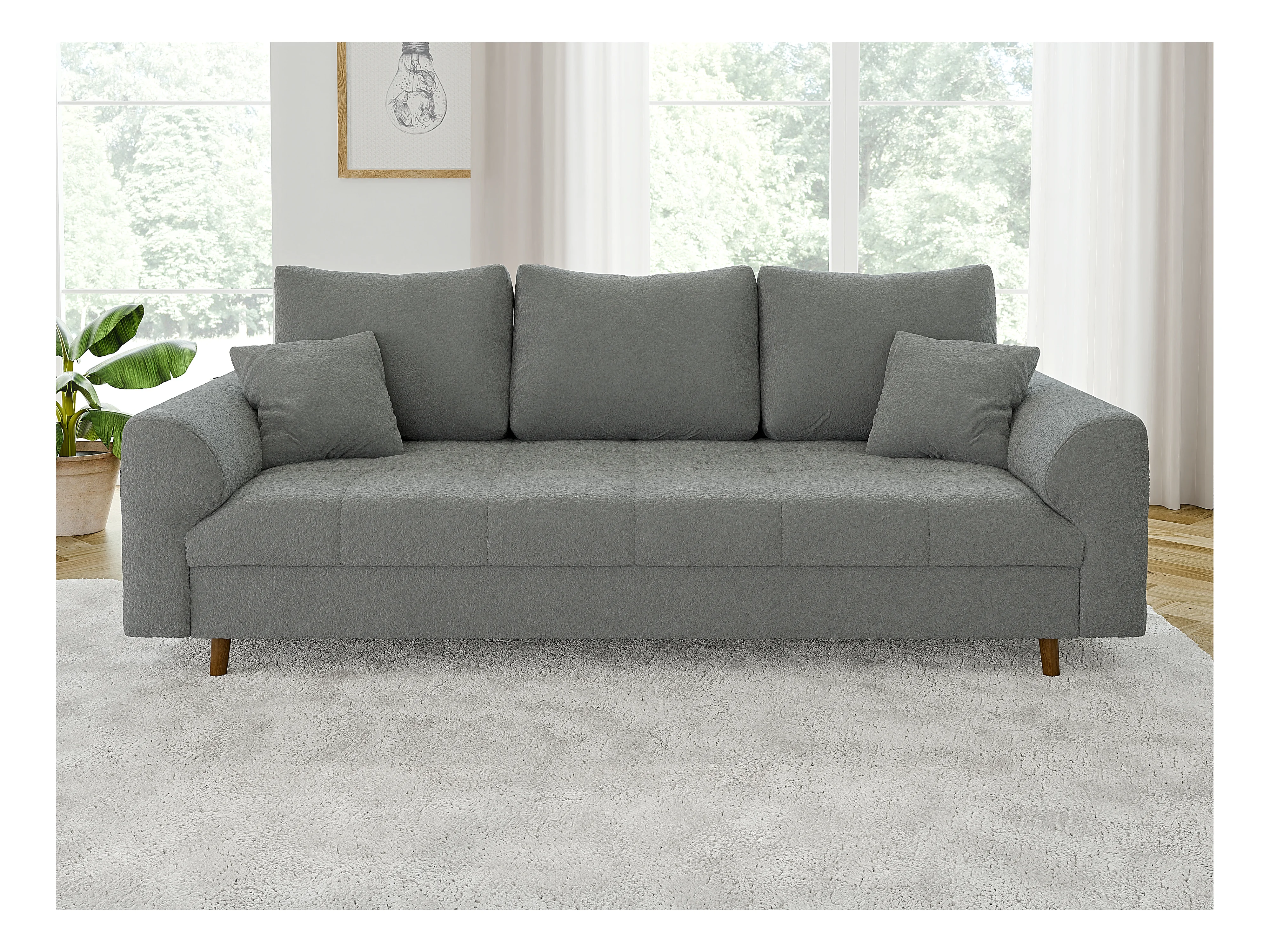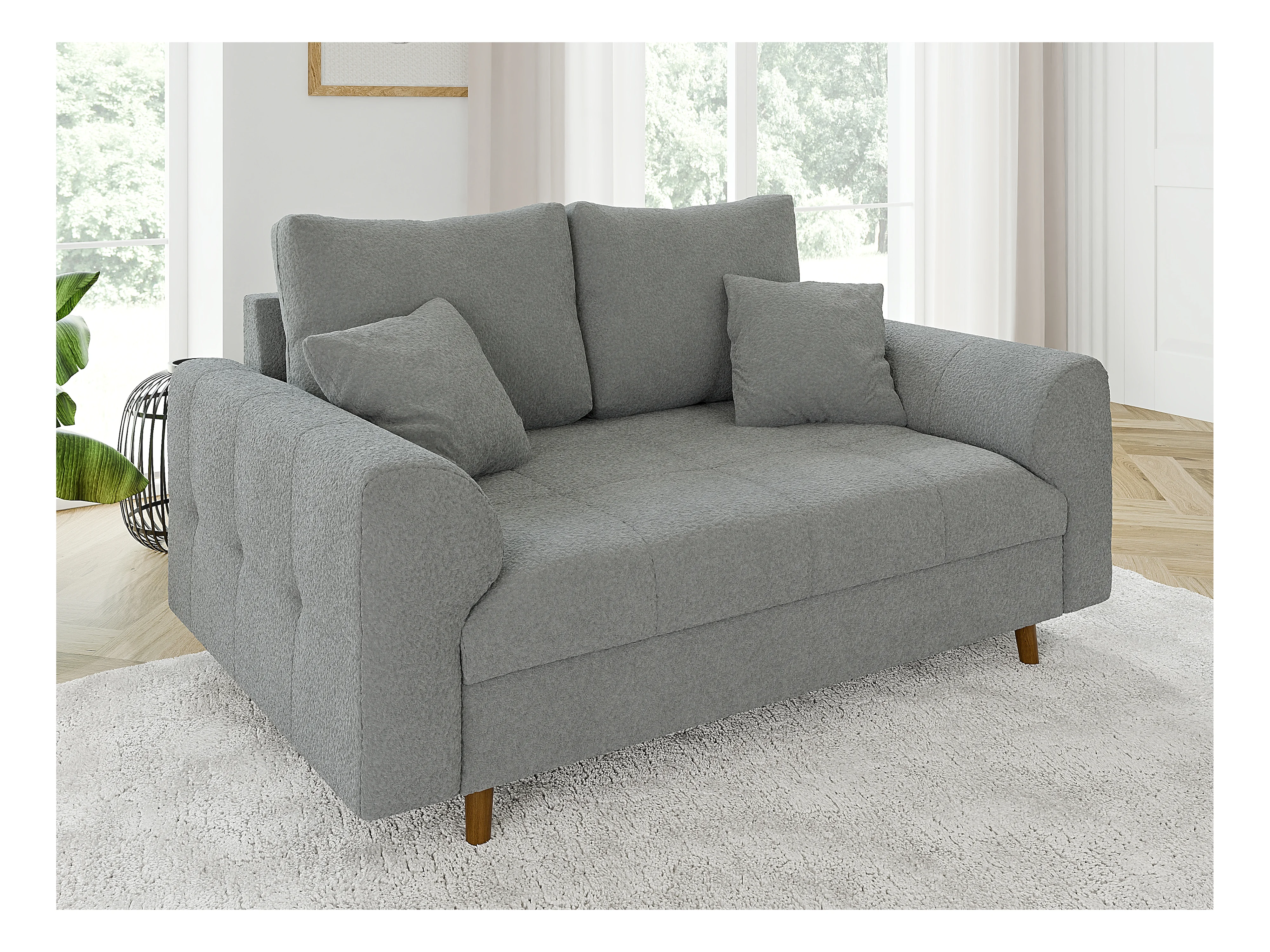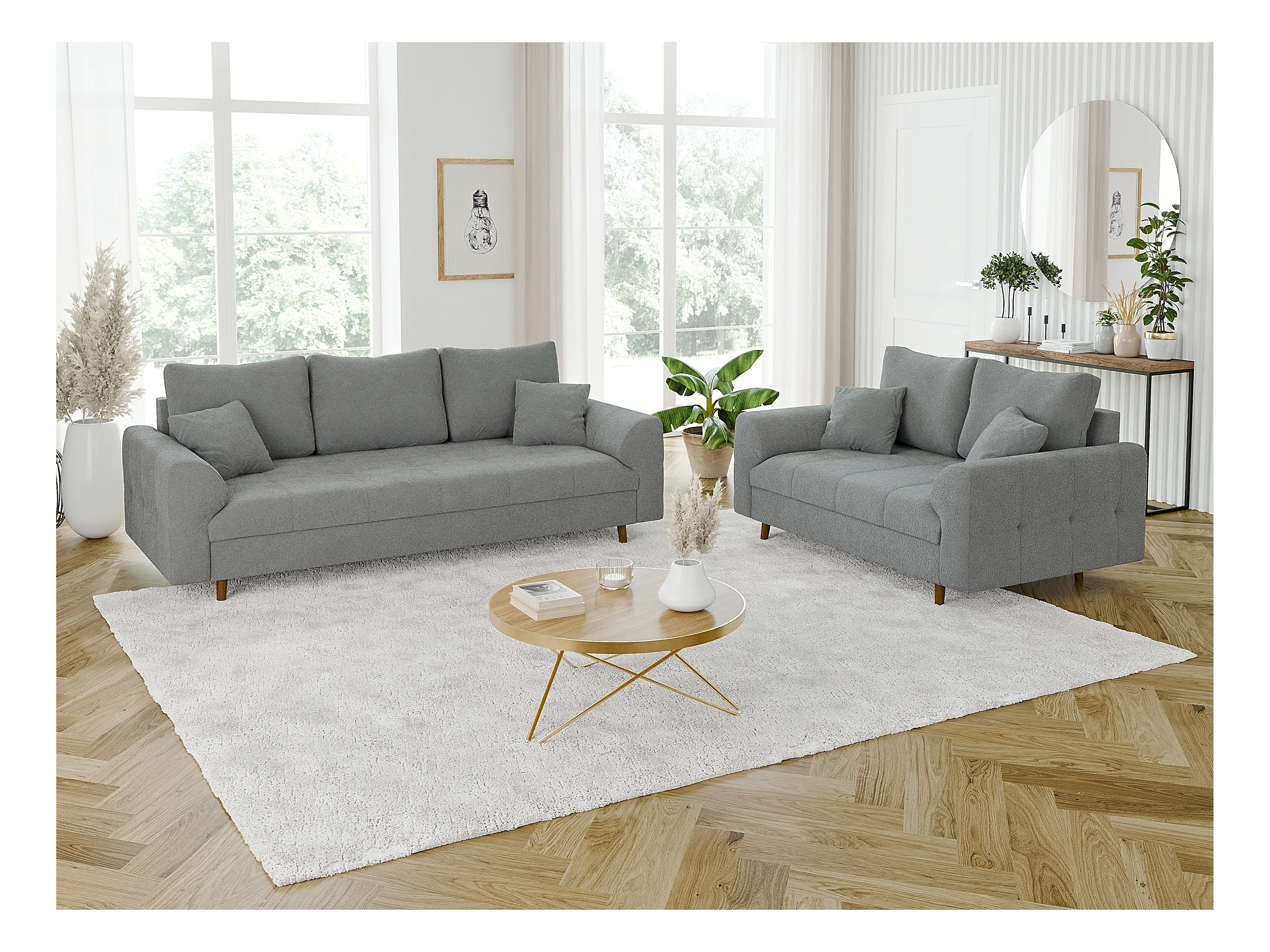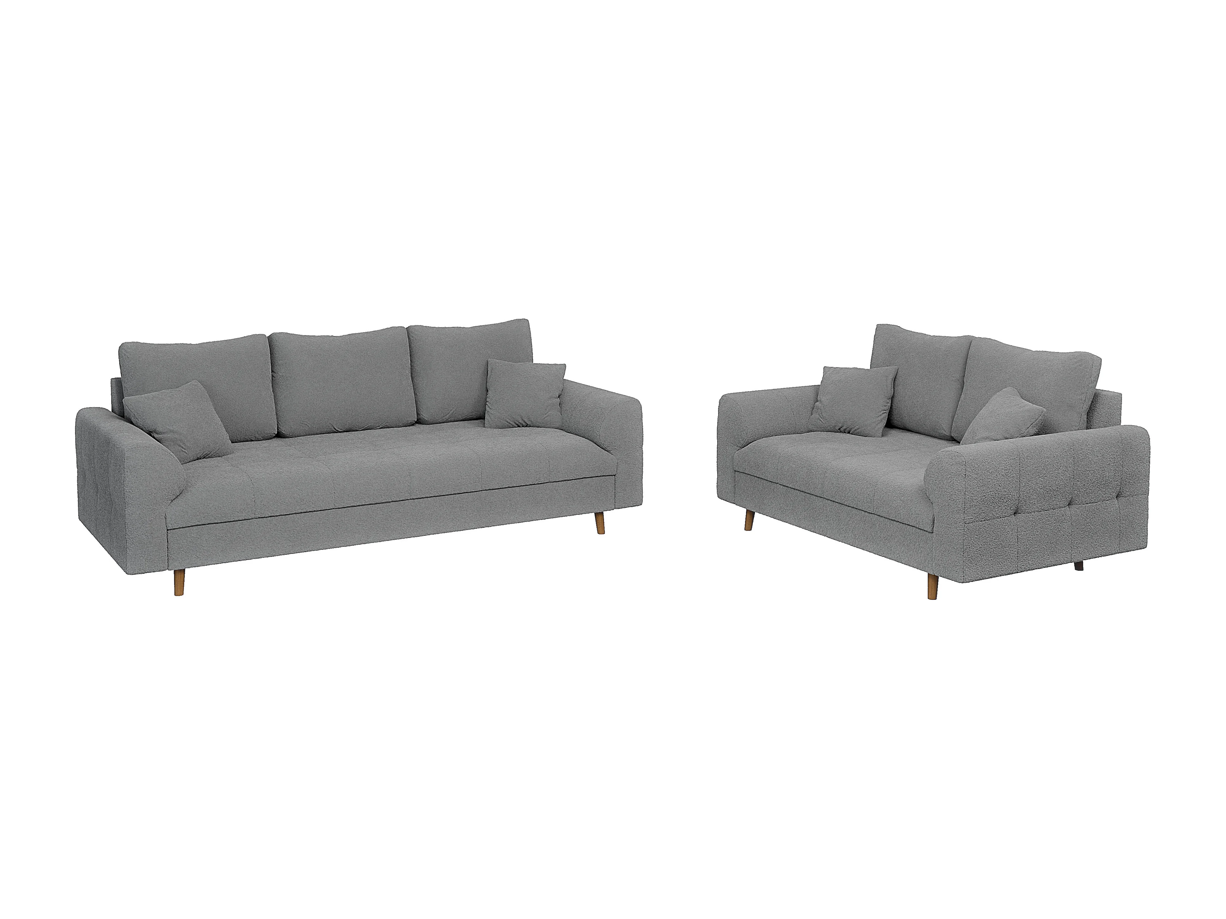 Nils - Polstergarnitur 3+2 mit Braun Holzfüßen im skandinavischen Stil aus Grau Boucle-Stoff