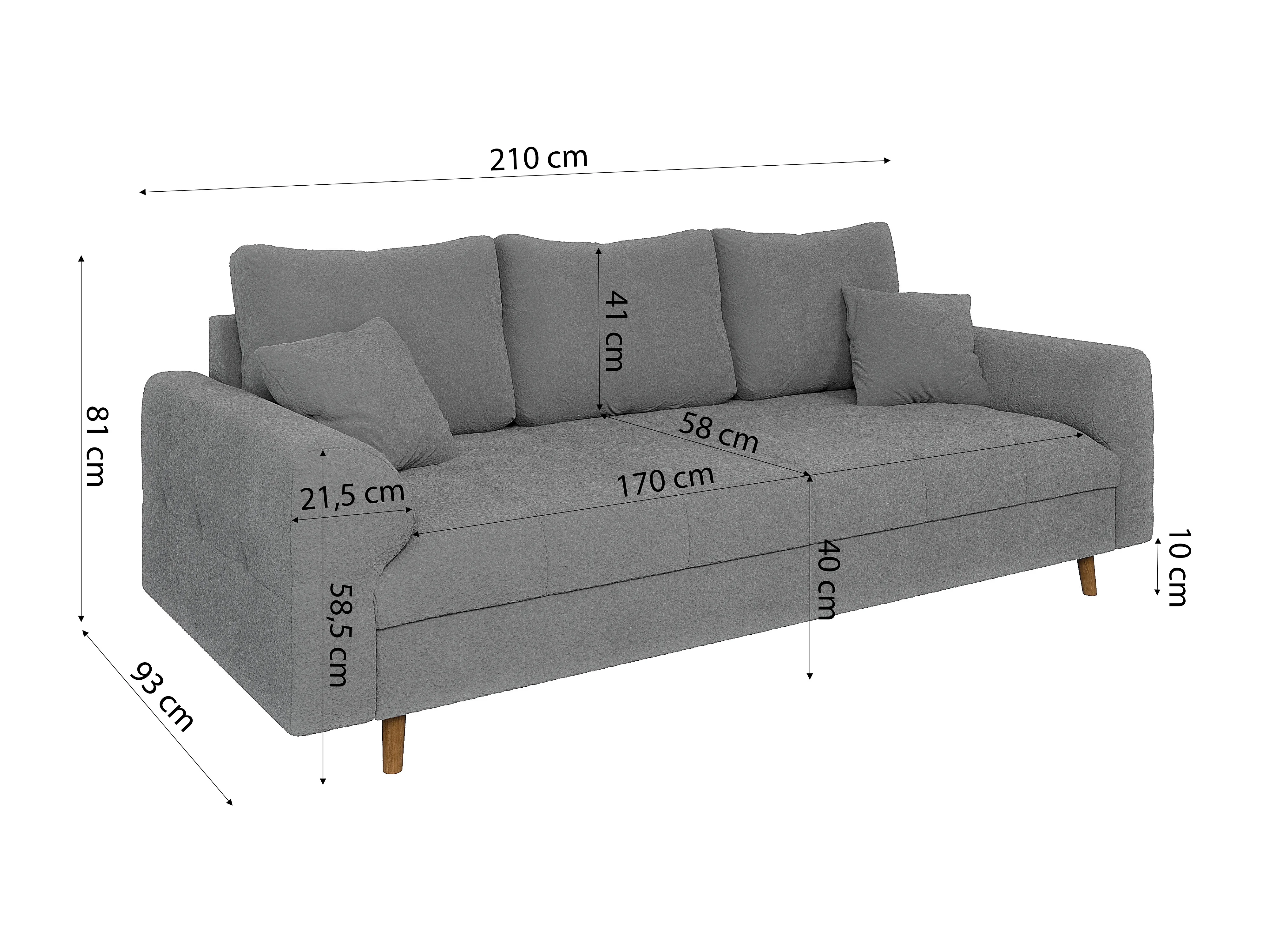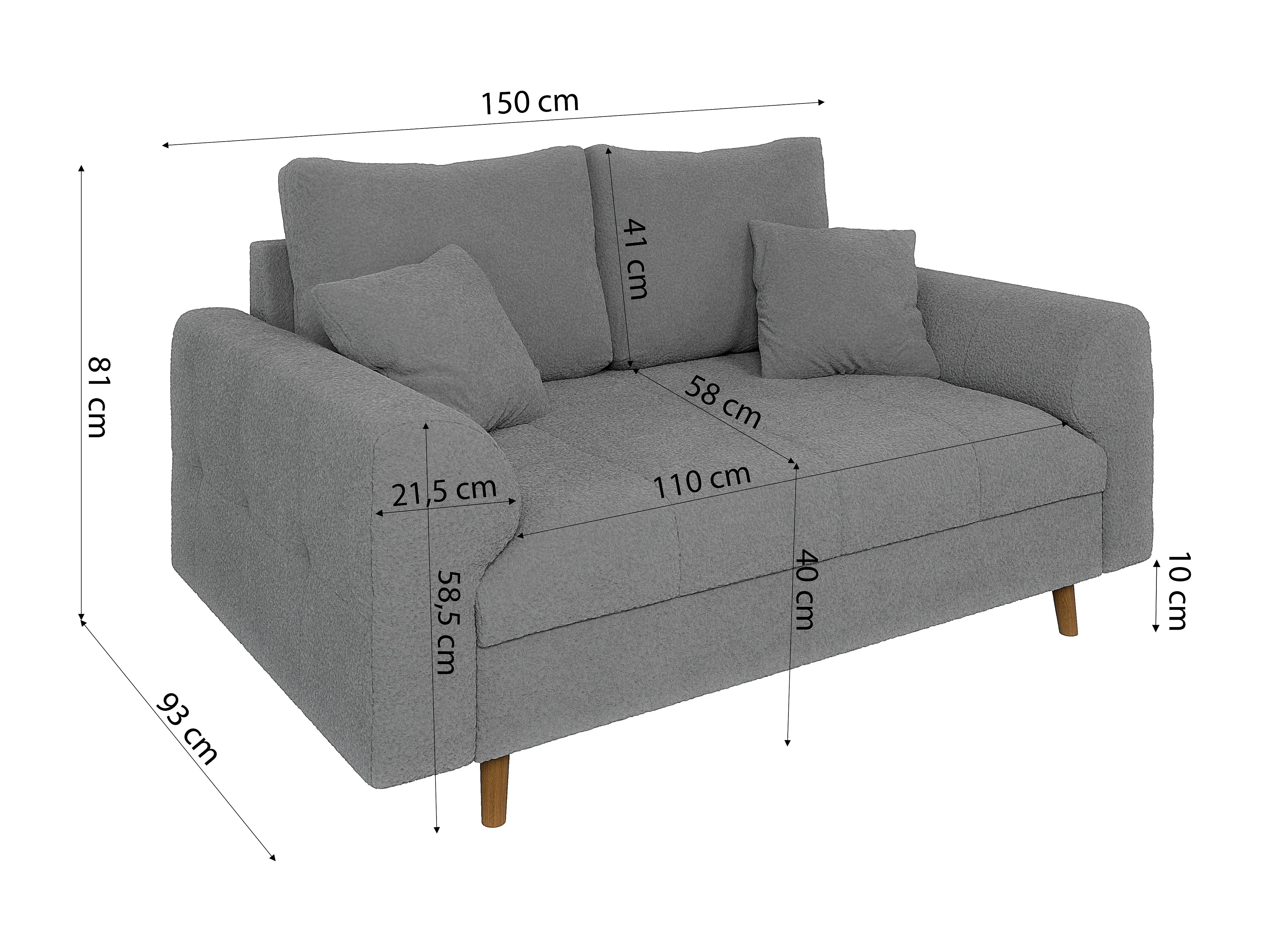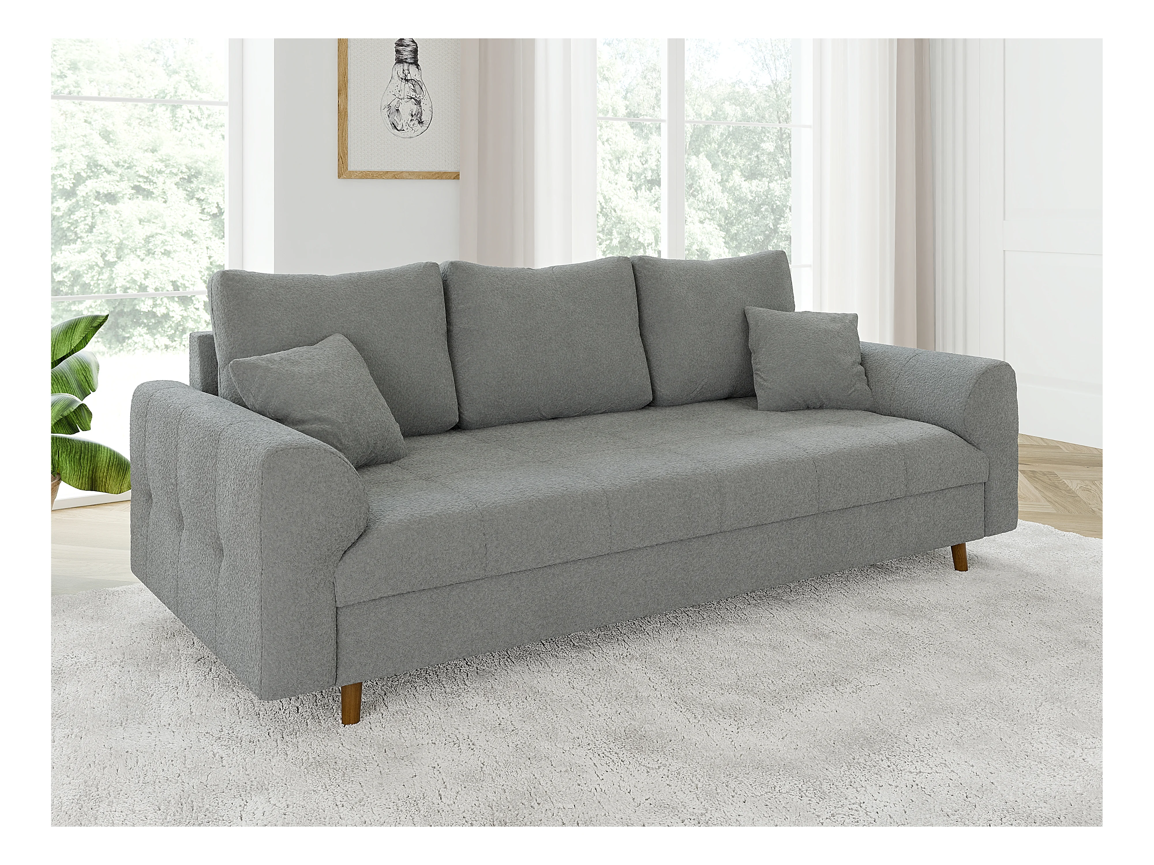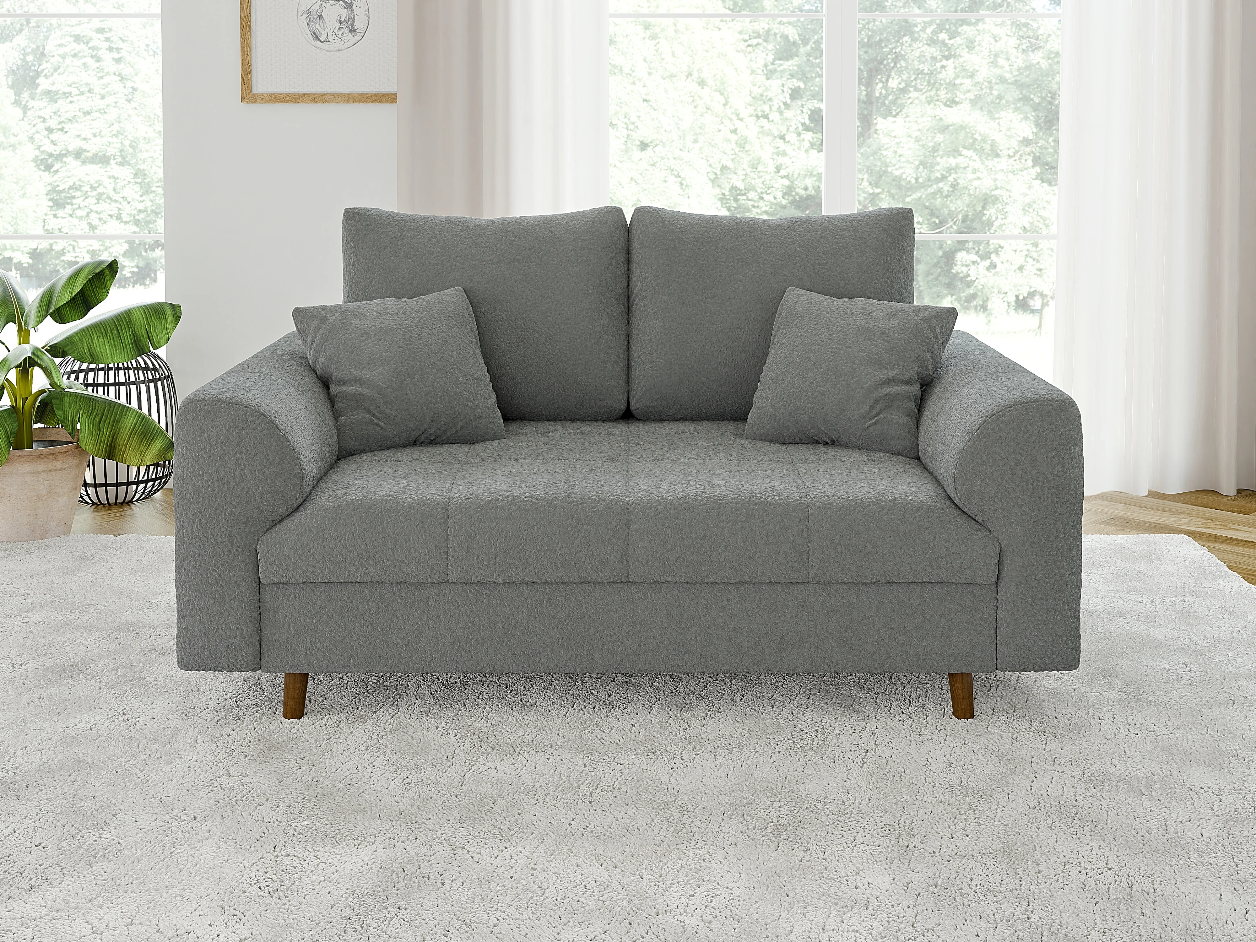 Nils - Polstergarnitur 3+2 mit Braun Holzfüßen im skandinavischen Stil aus Grau Boucle-Stoff