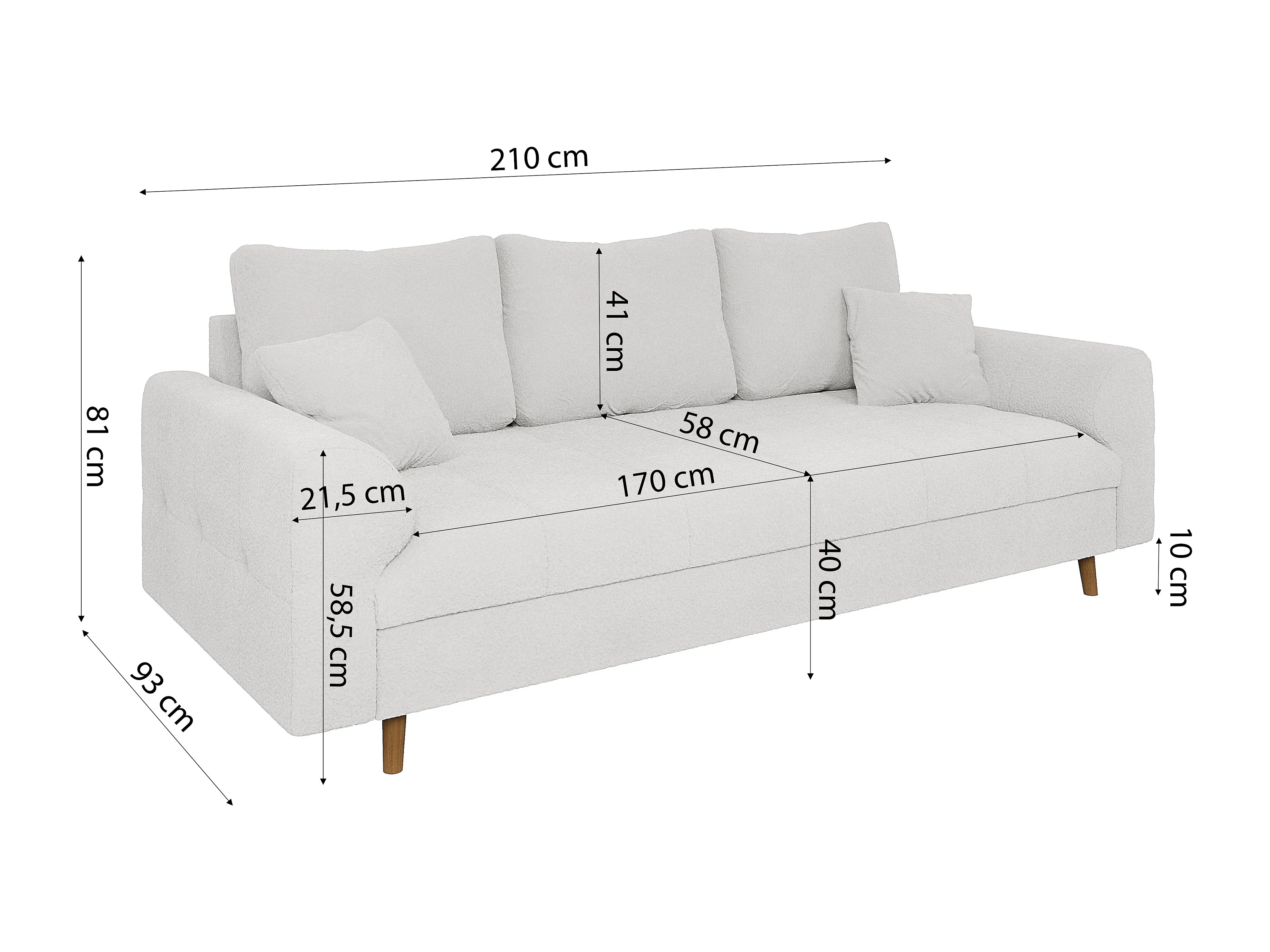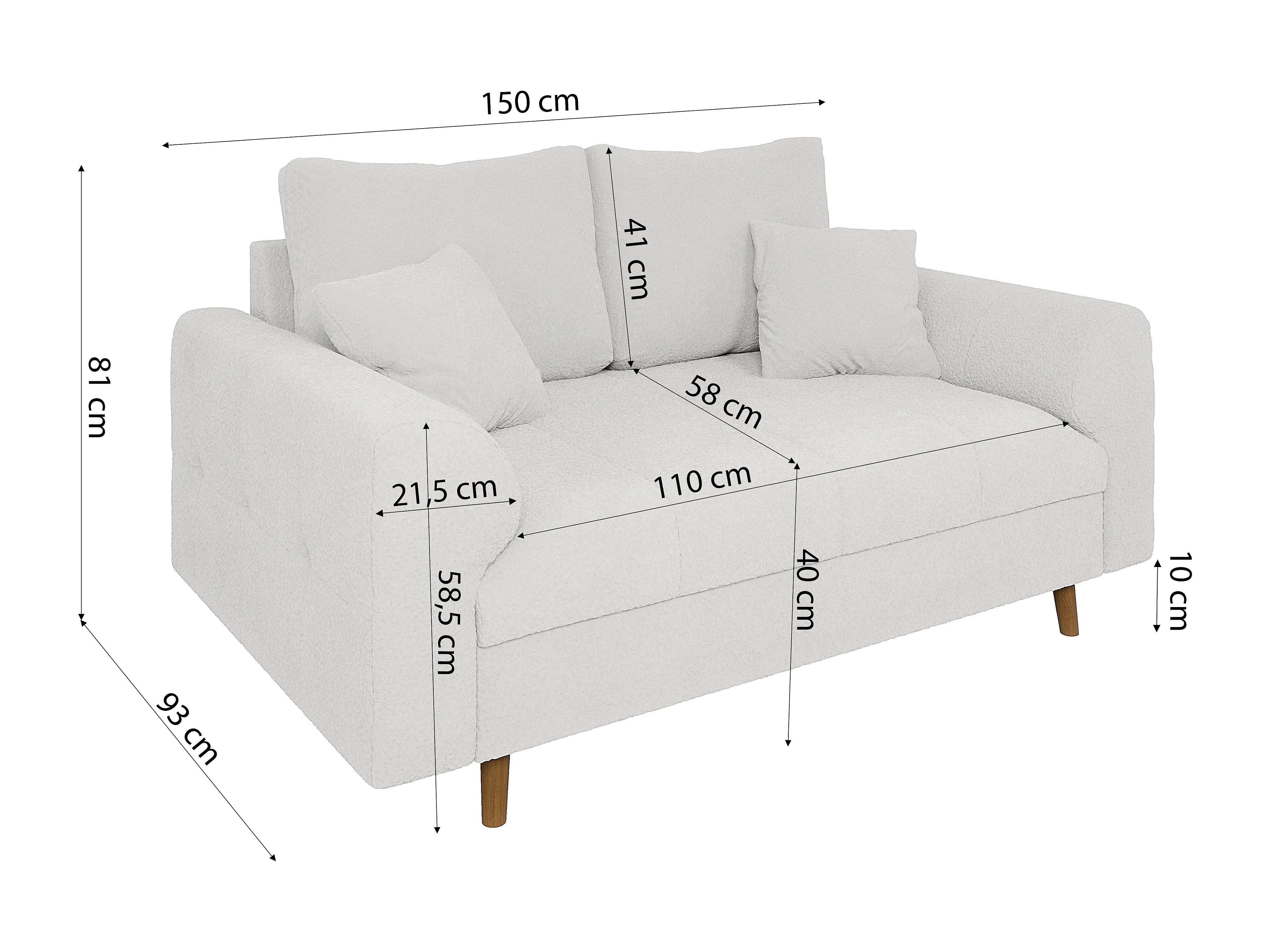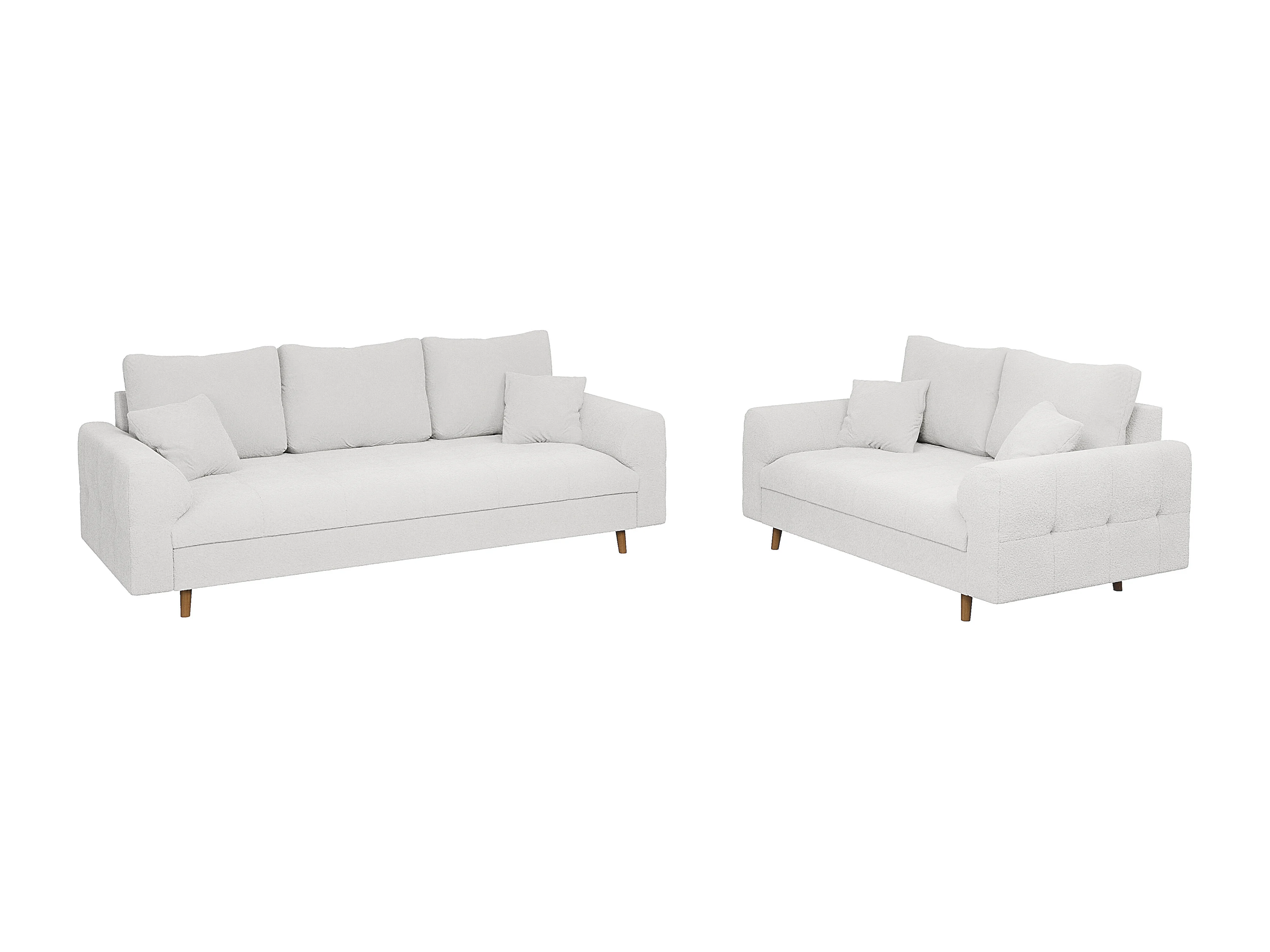 Nils - Polstergarnitur 3+2 mit Braun Holzfüßen im skandinavischen Stil aus Weiß Boucle-Stoff