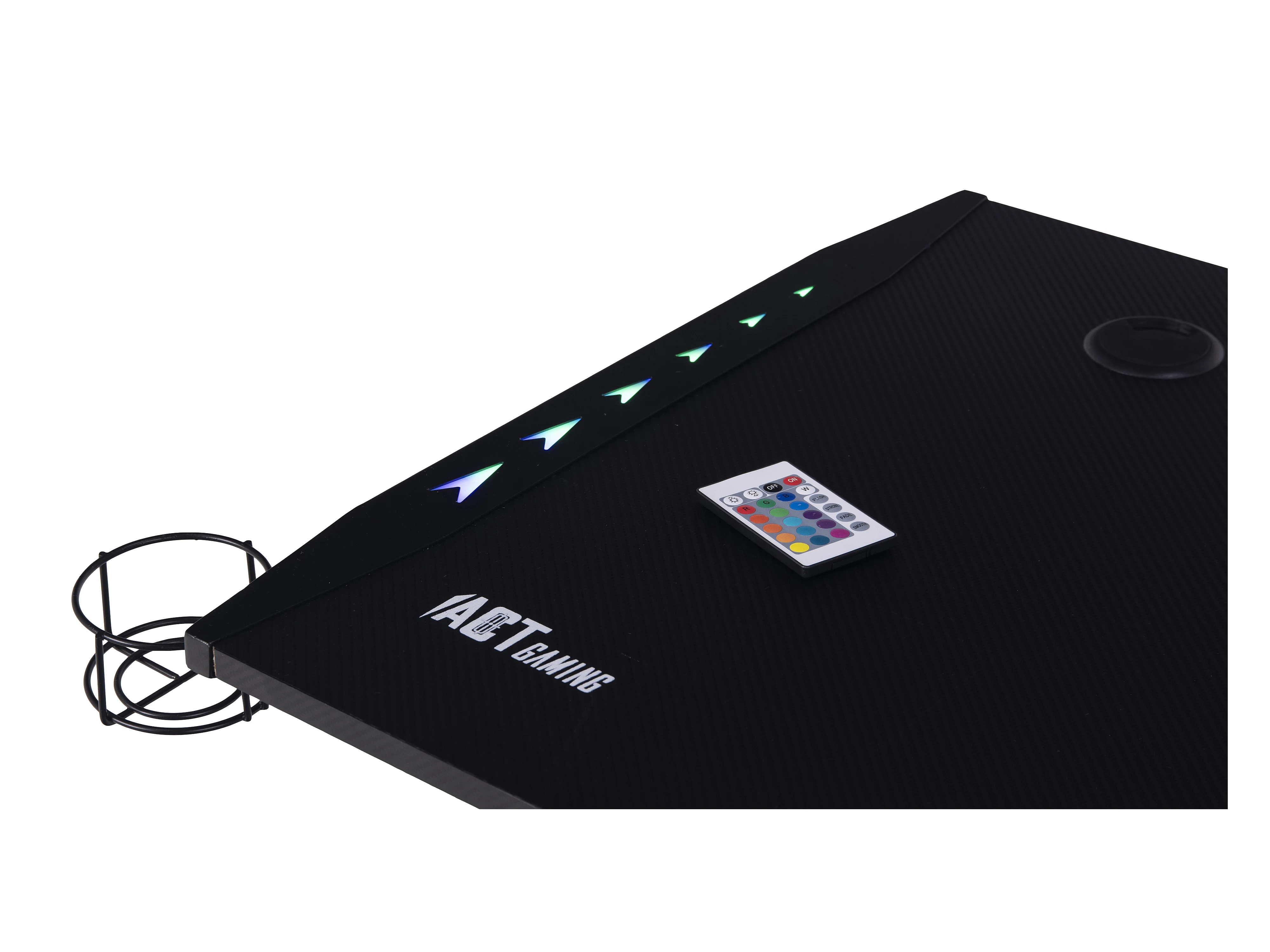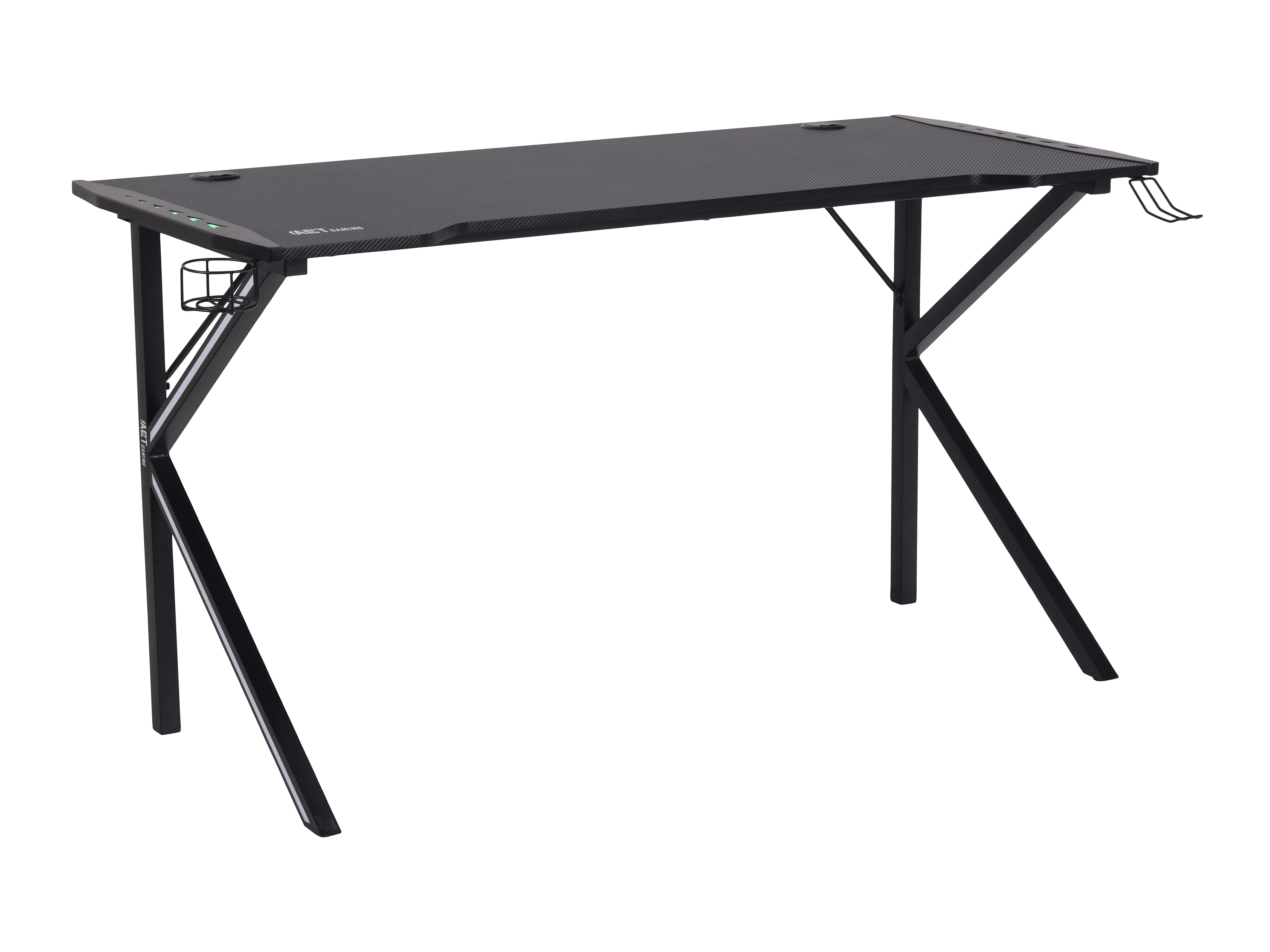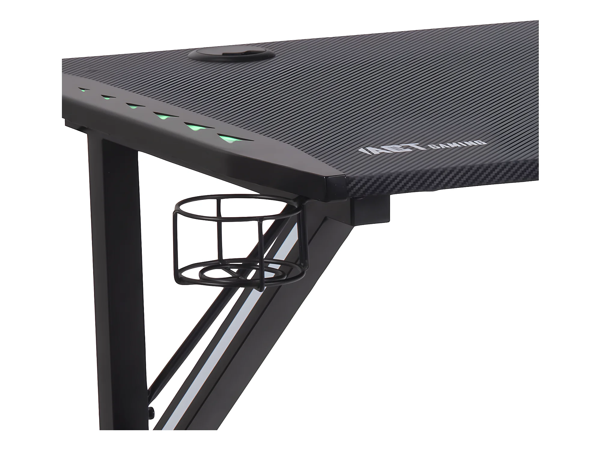 Nimaj Gamertisch mit LED, Headsethalter, Getränkehalter schwarz.