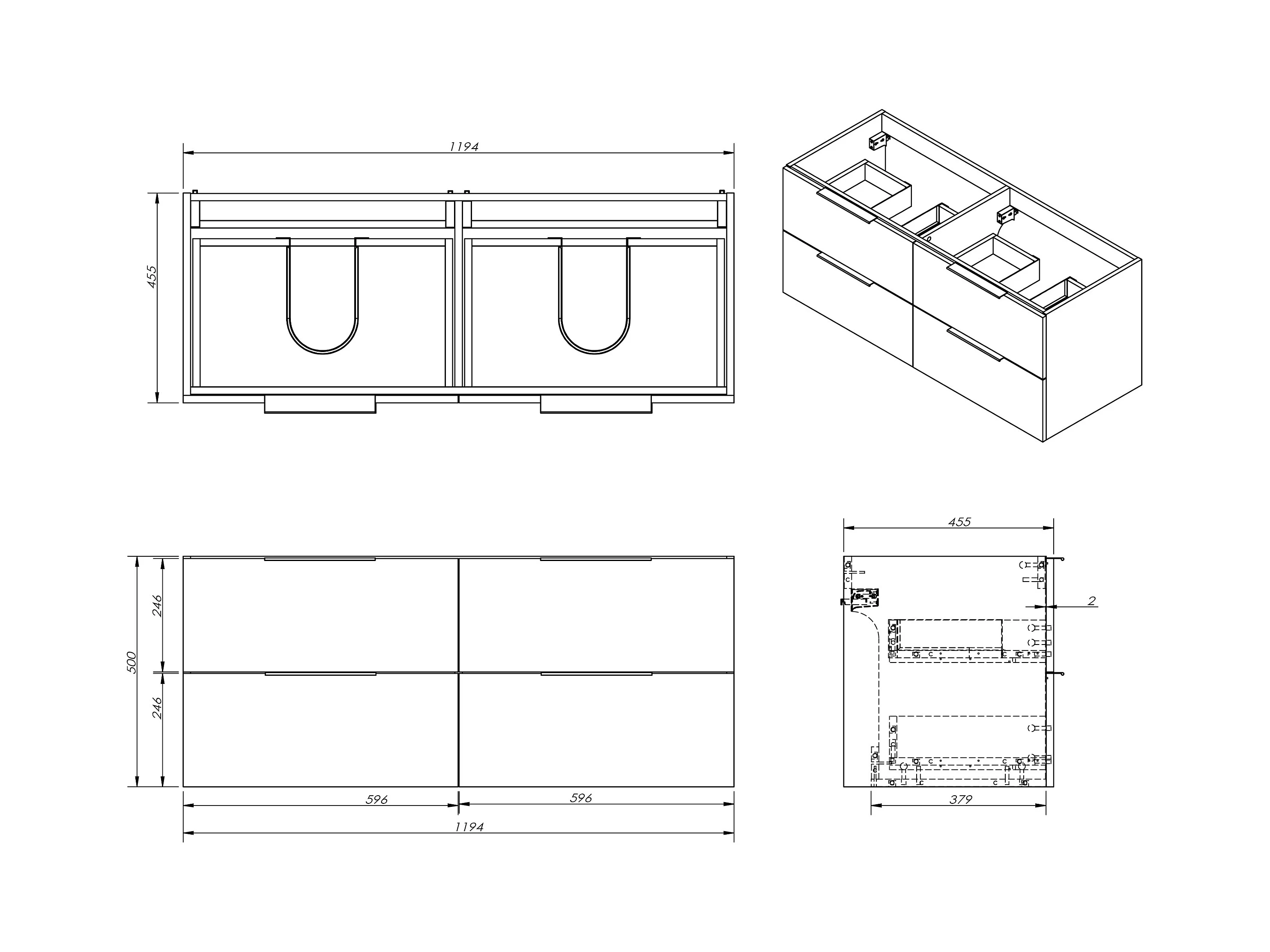 Hängender Badezimmerunterschrank mit Einbauwaschbecken - Heller Naturton - 120 cm - NISAYA