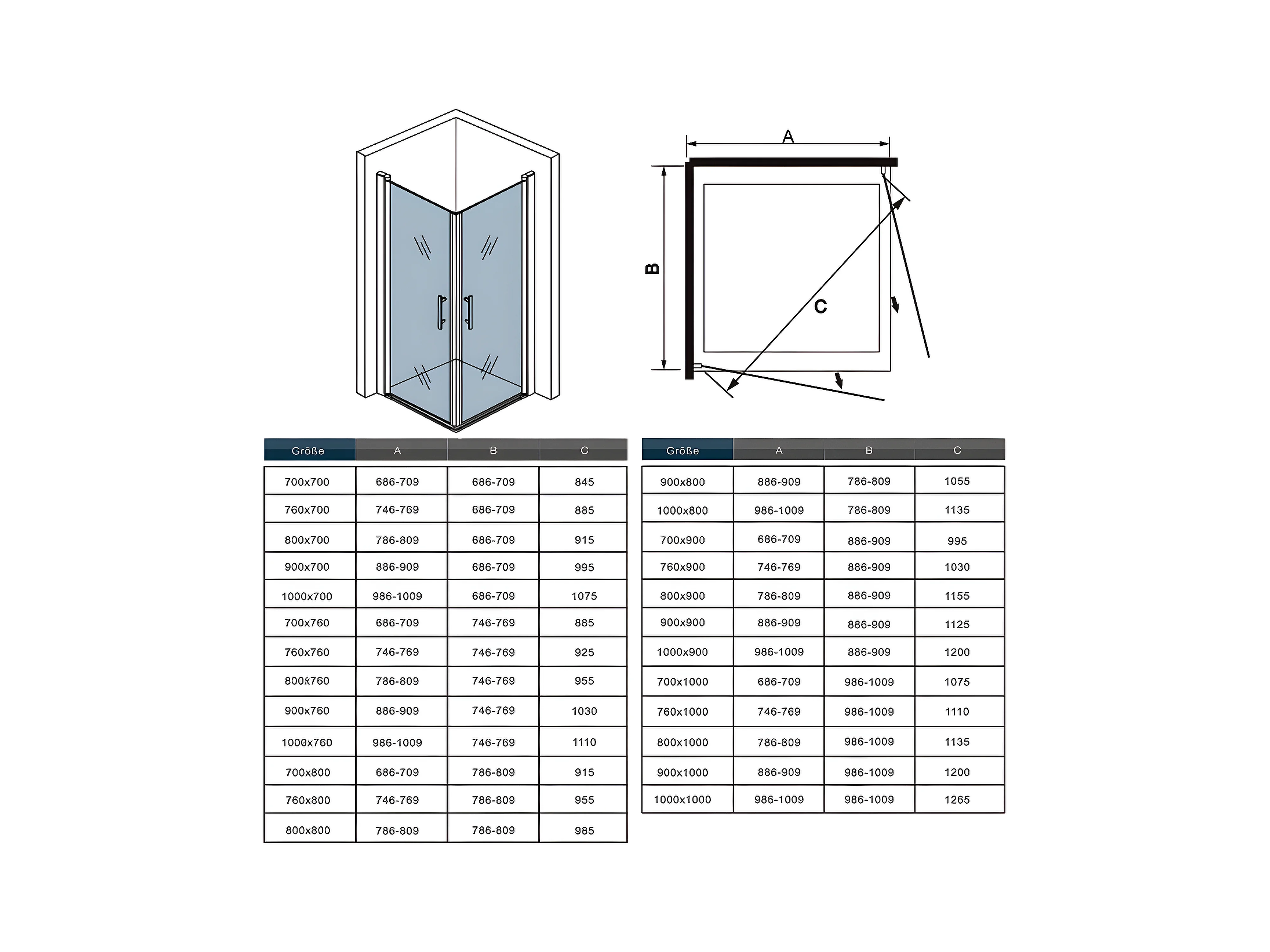 Nische-Duschwand Duschtür Pendeltür ESG-Glas Duschkabinen Höhe 195cm Dusche 76X90cm