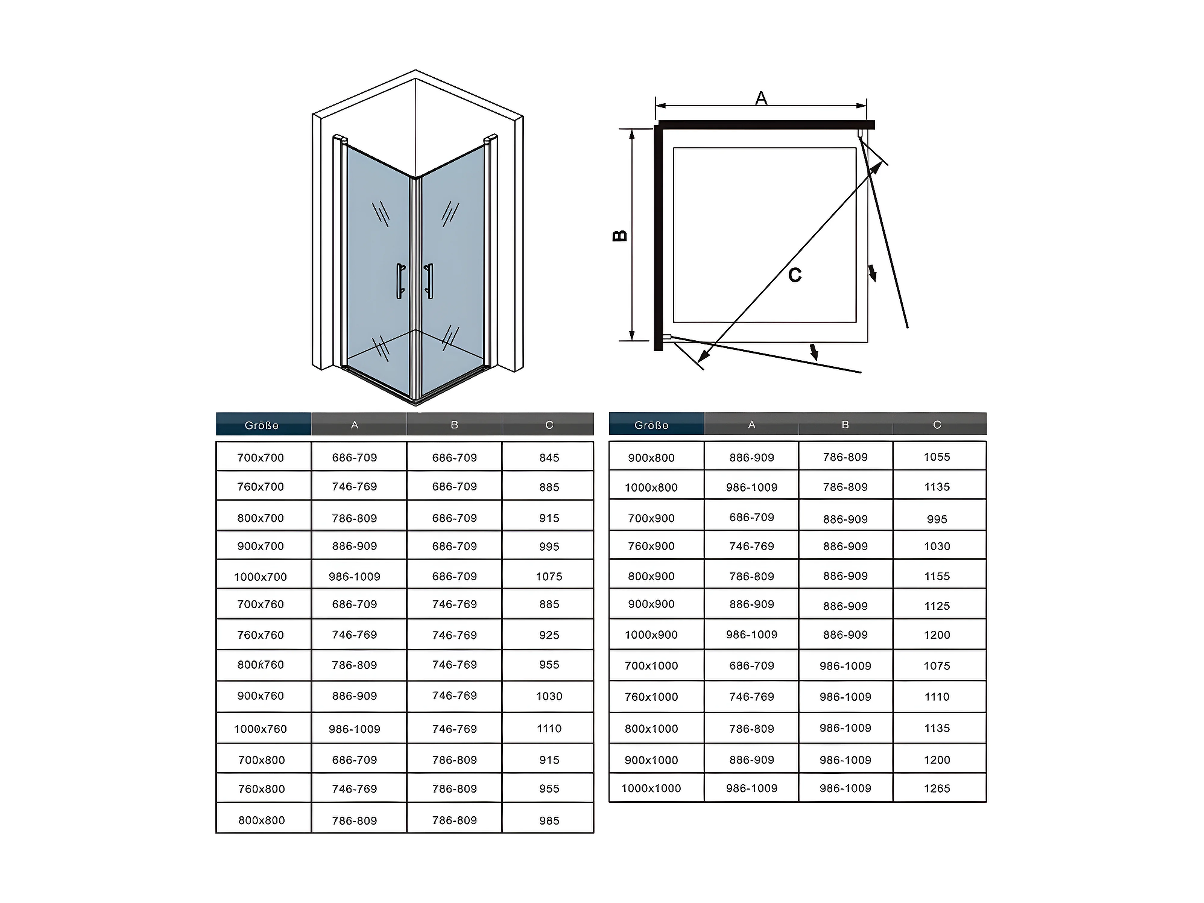 Nische-Duschwand Duschtür Pendeltür ESG-Glas Duschkabinen Höhe 195cm Dusche 80X80cm