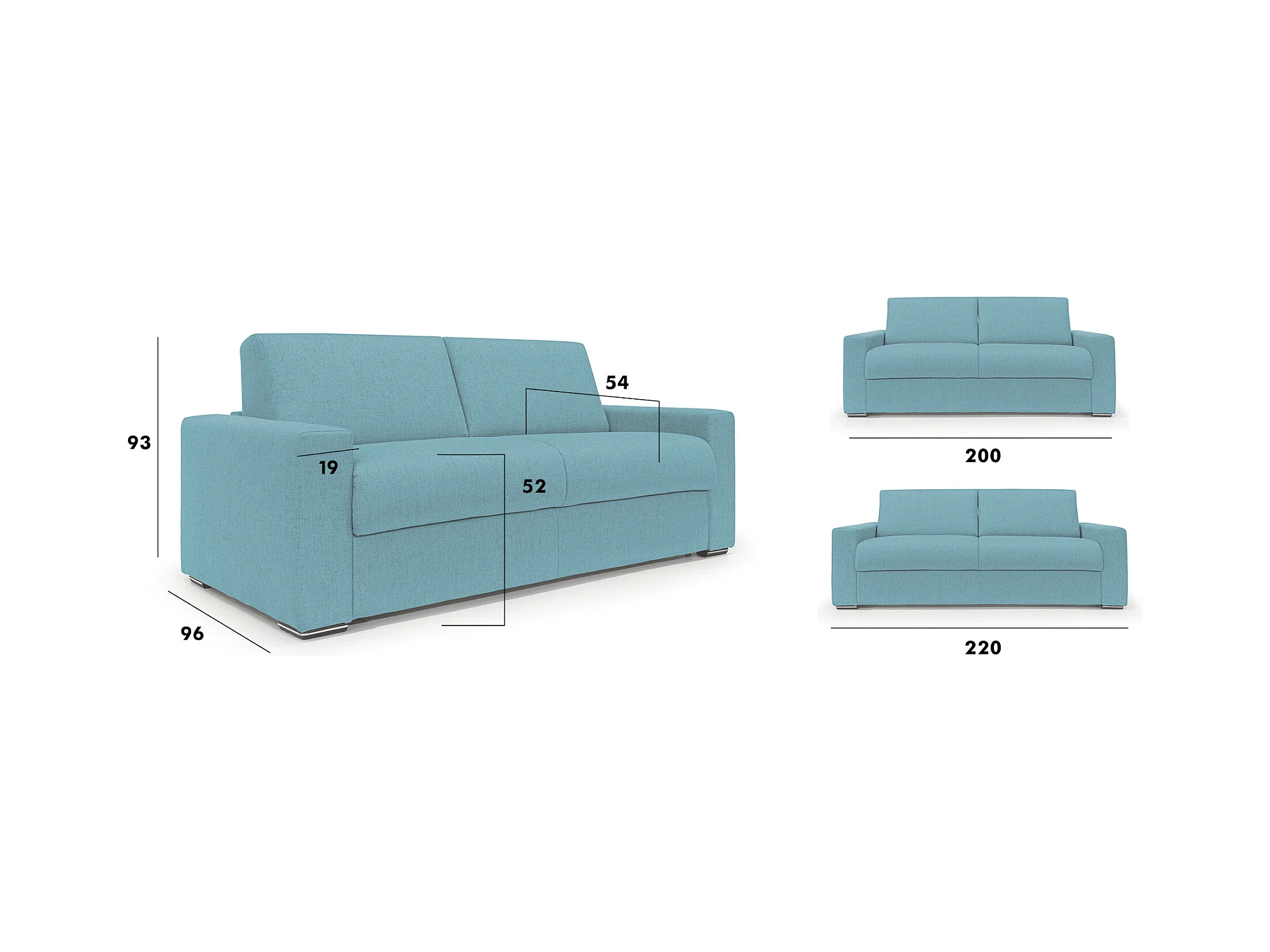 Nixon Schlafsofa mit 20 cm Matratze aus wasserfestem Stoff T03 220 cm (mat. 160x197) Blau