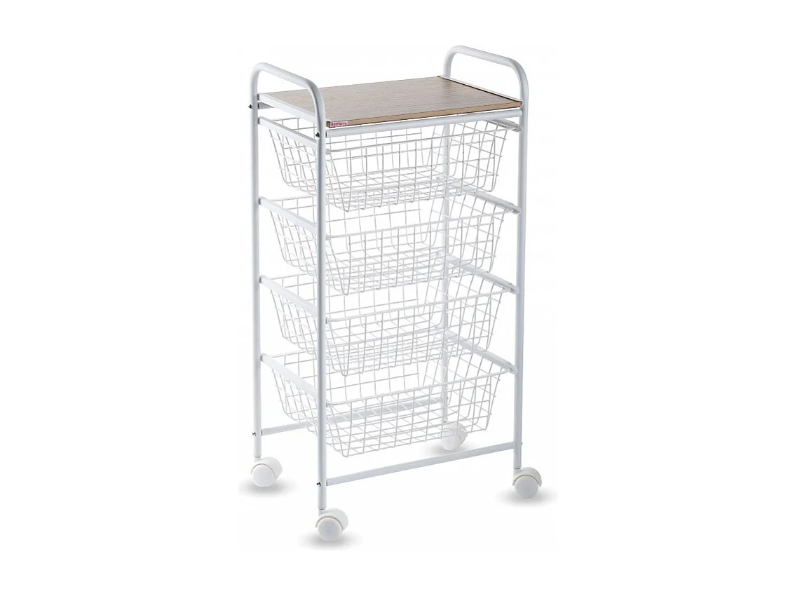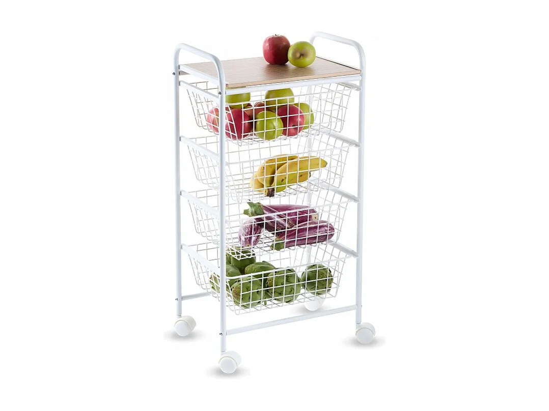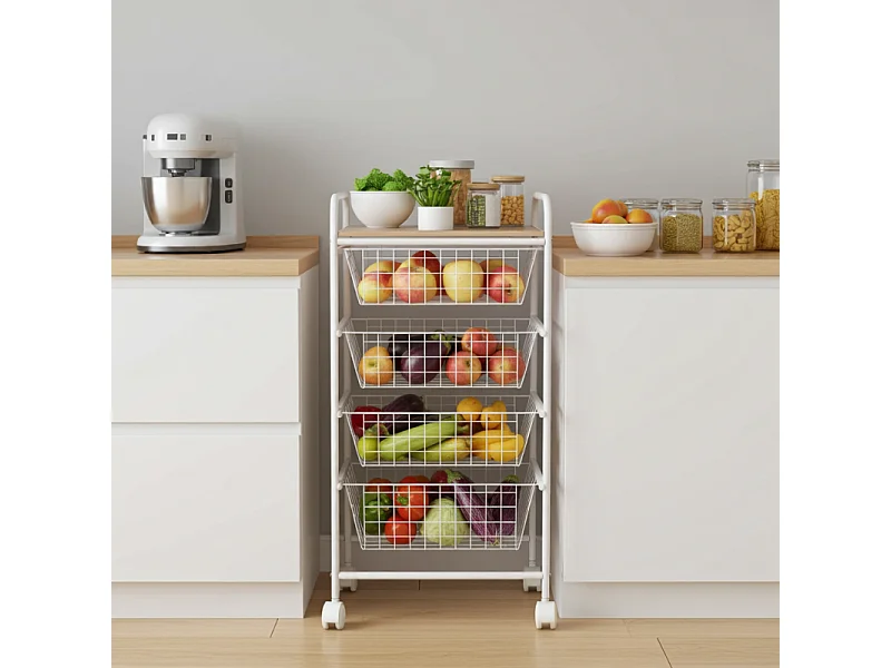 NORA Küchenwagen, 4 Körbe mit großem Fassungsvermögen, birkenfarbige Arbeitsplatte mit Lattenrost-Effekt
