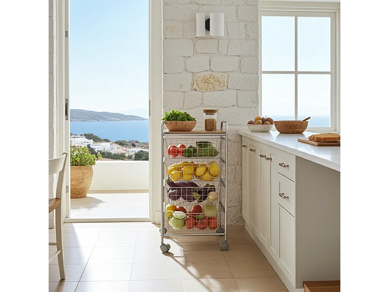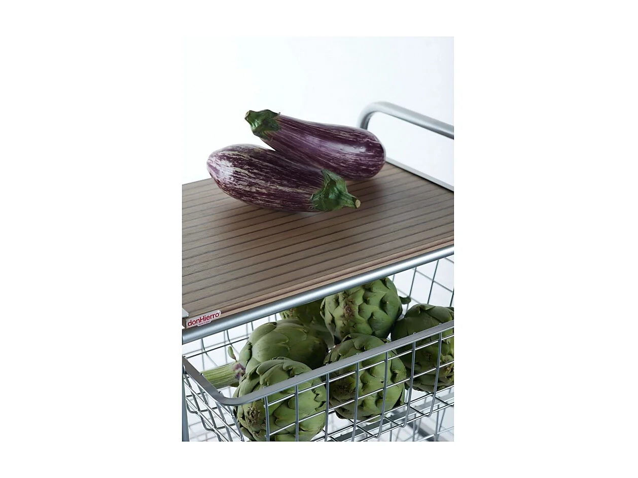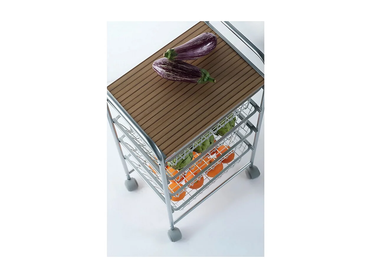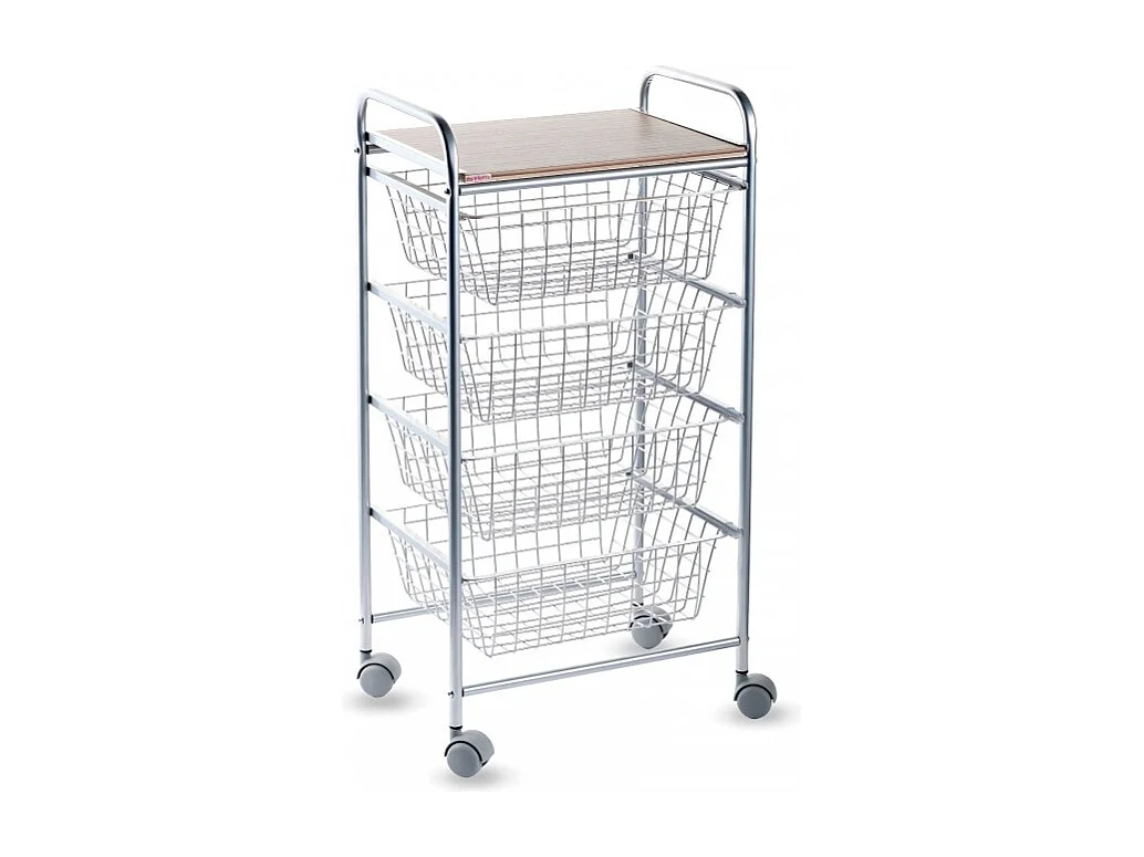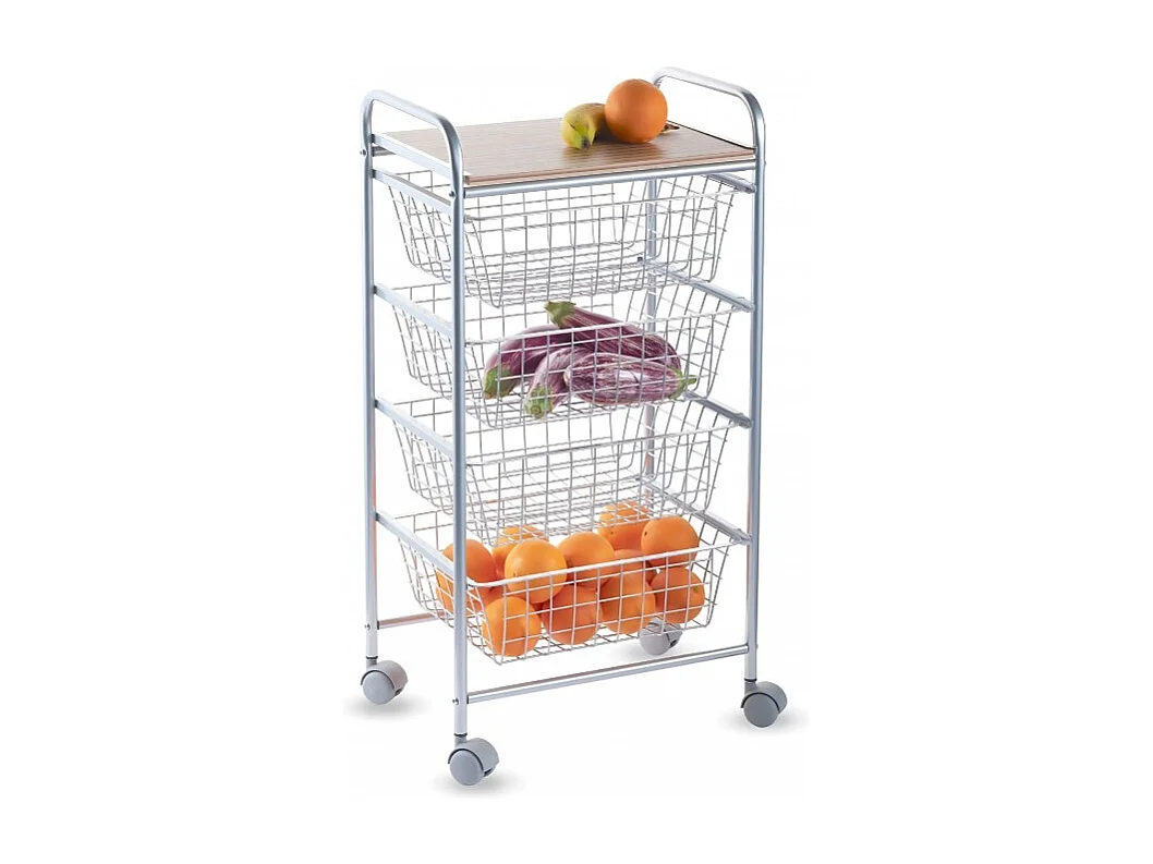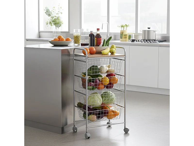 NORA Küchenwagen, 4 Körbe mit großem Fassungsvermögen, birkenfarbige Arbeitsplatte mit Lattenrost-Effekt