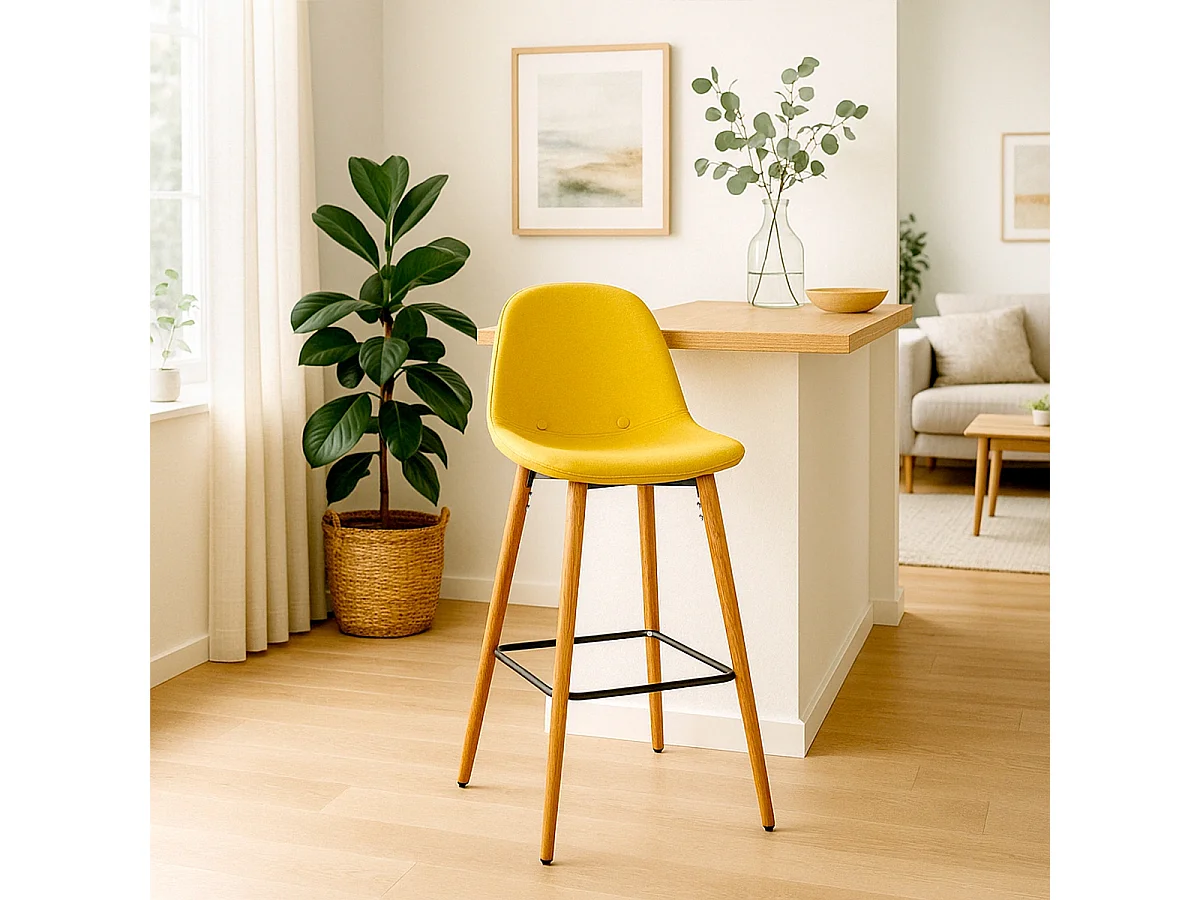 Nordischer Barhocker aus Stoff mit Rückenlehne Shona für Küche - Gelb
