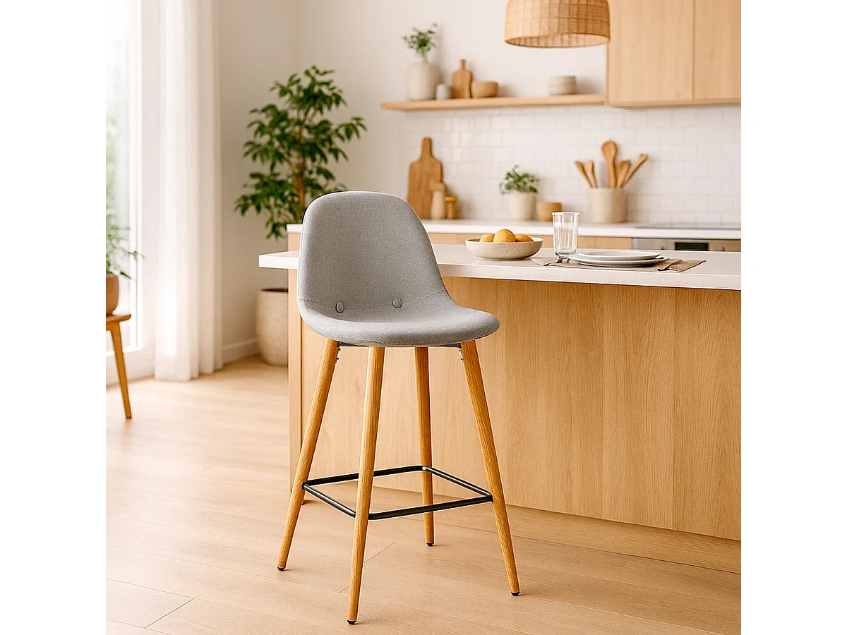 Nordischer Barhocker aus Stoff mit Rückenlehne Shona für Küche - Hellgrau