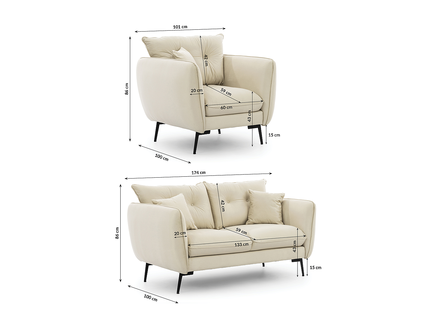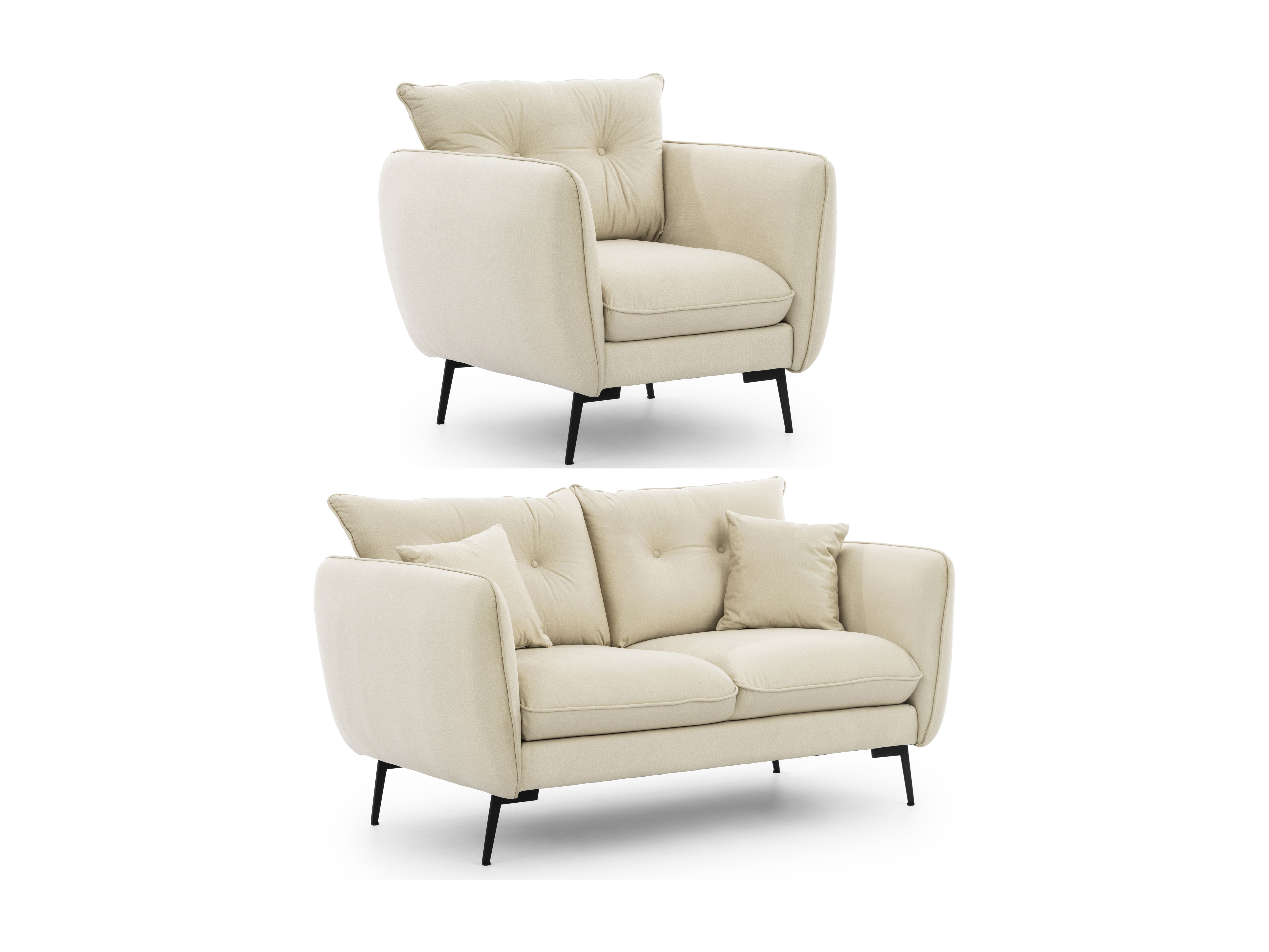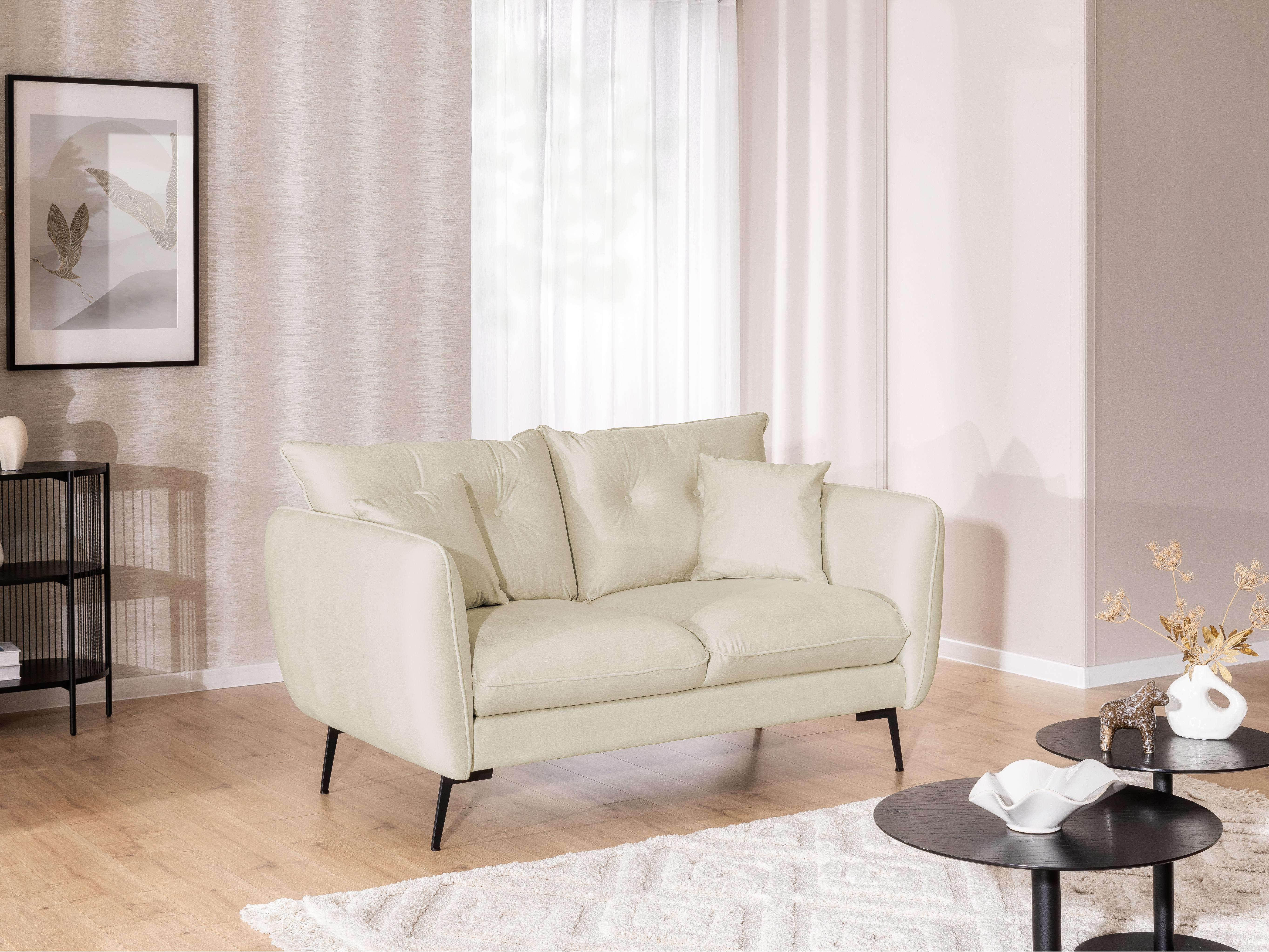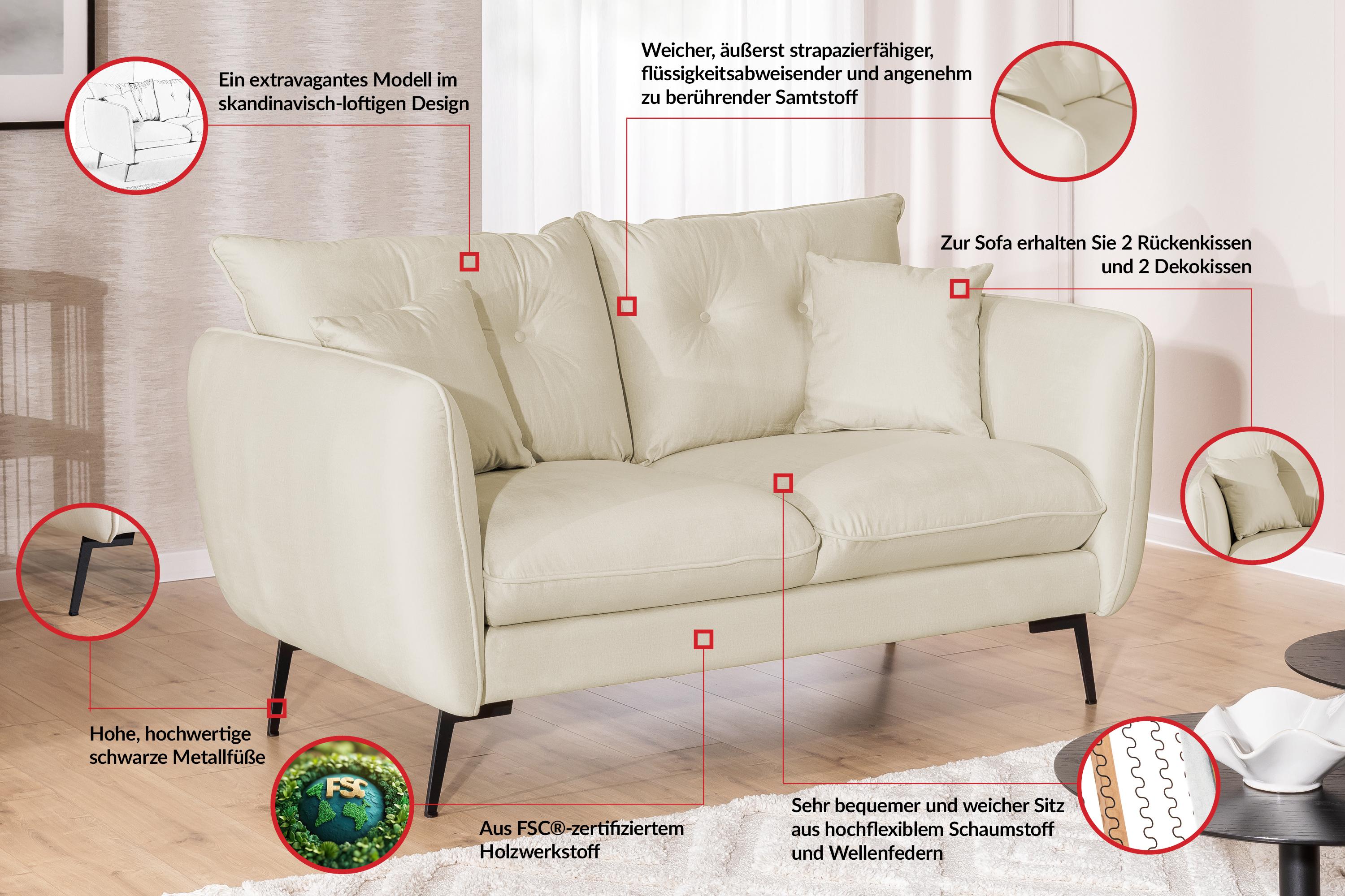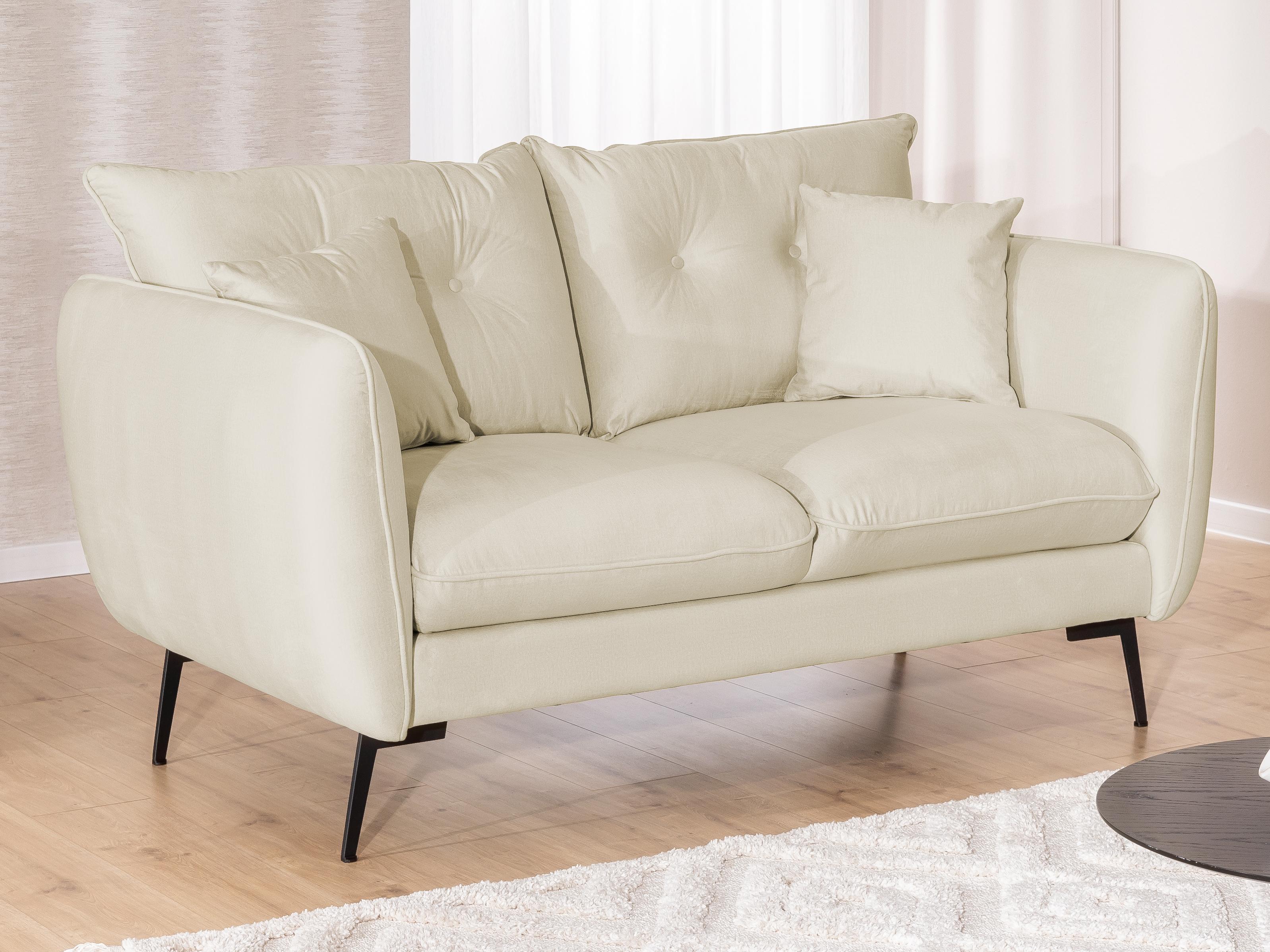 Nordloft - Modernes Polstergarnitur 2+1 aus Beige Samt-Stoff mit Hohen Schwarzen Metallfüßen und schöner Sitzkomfort