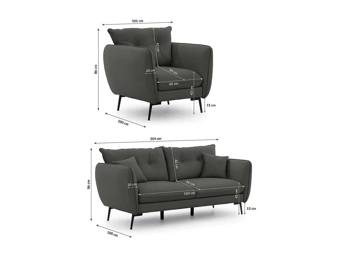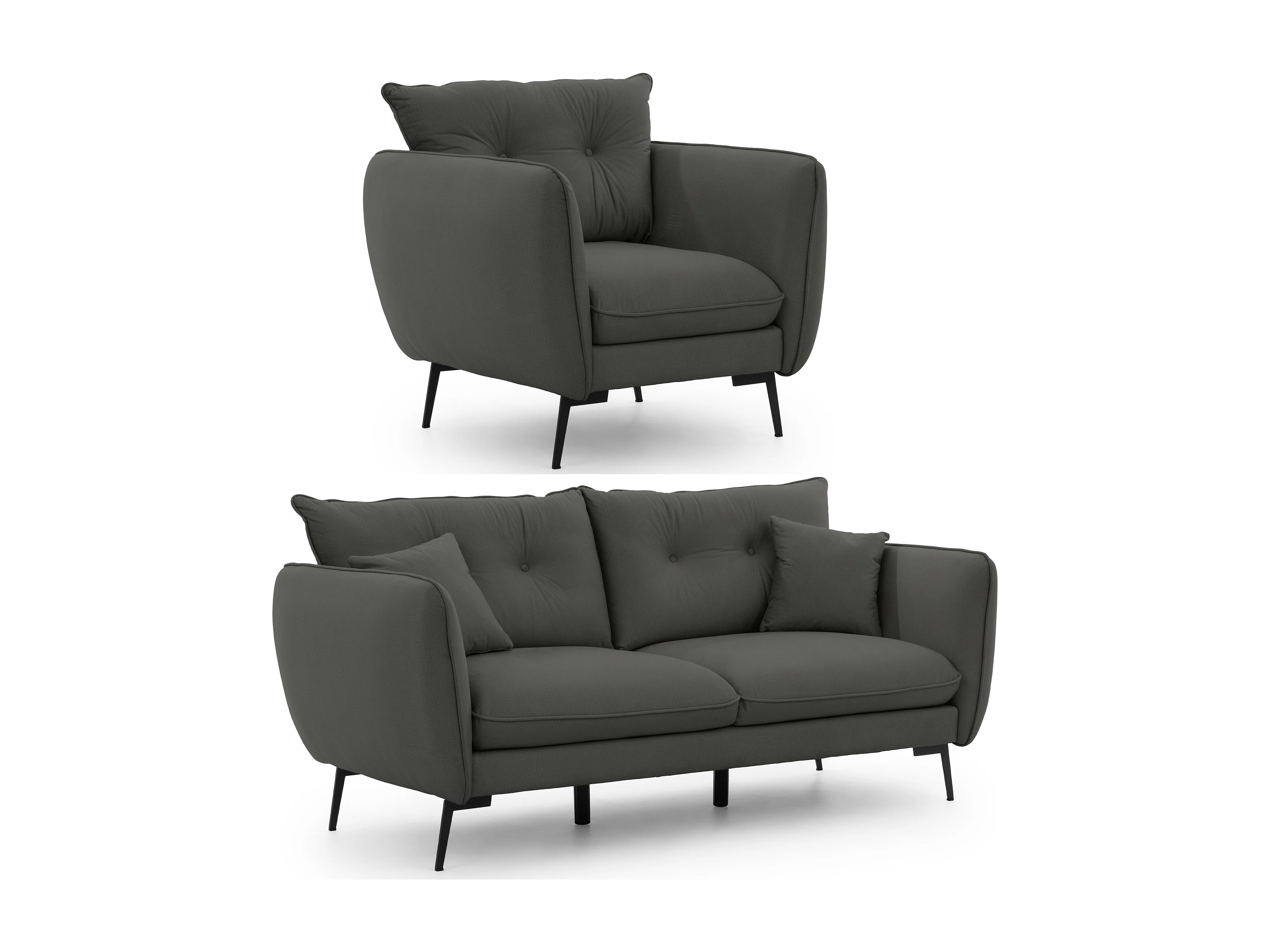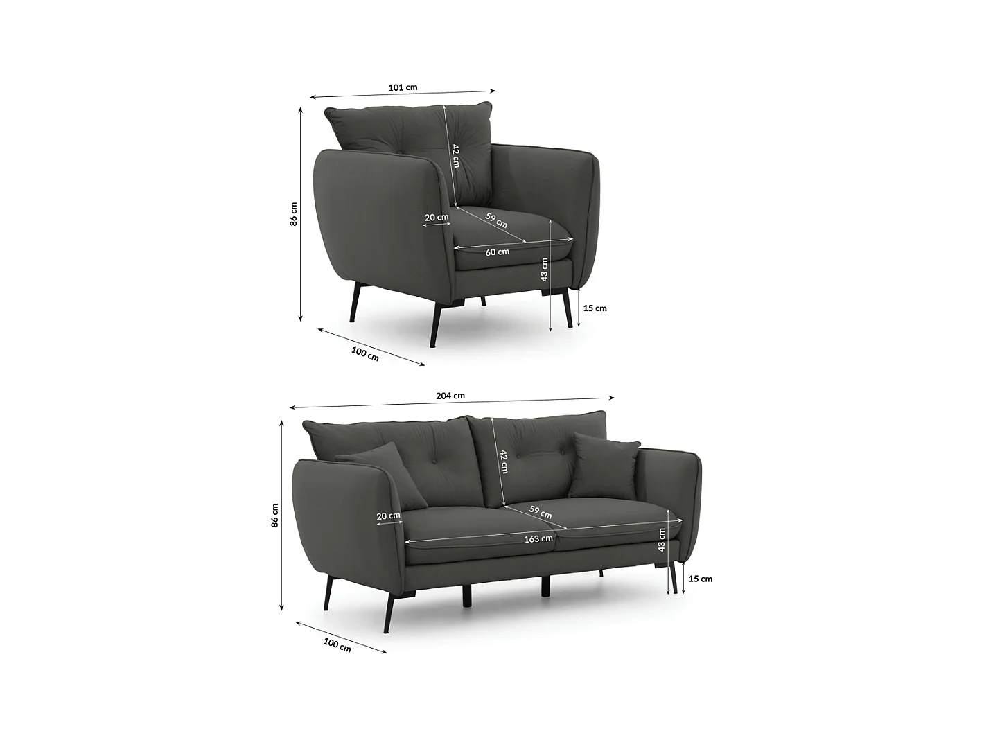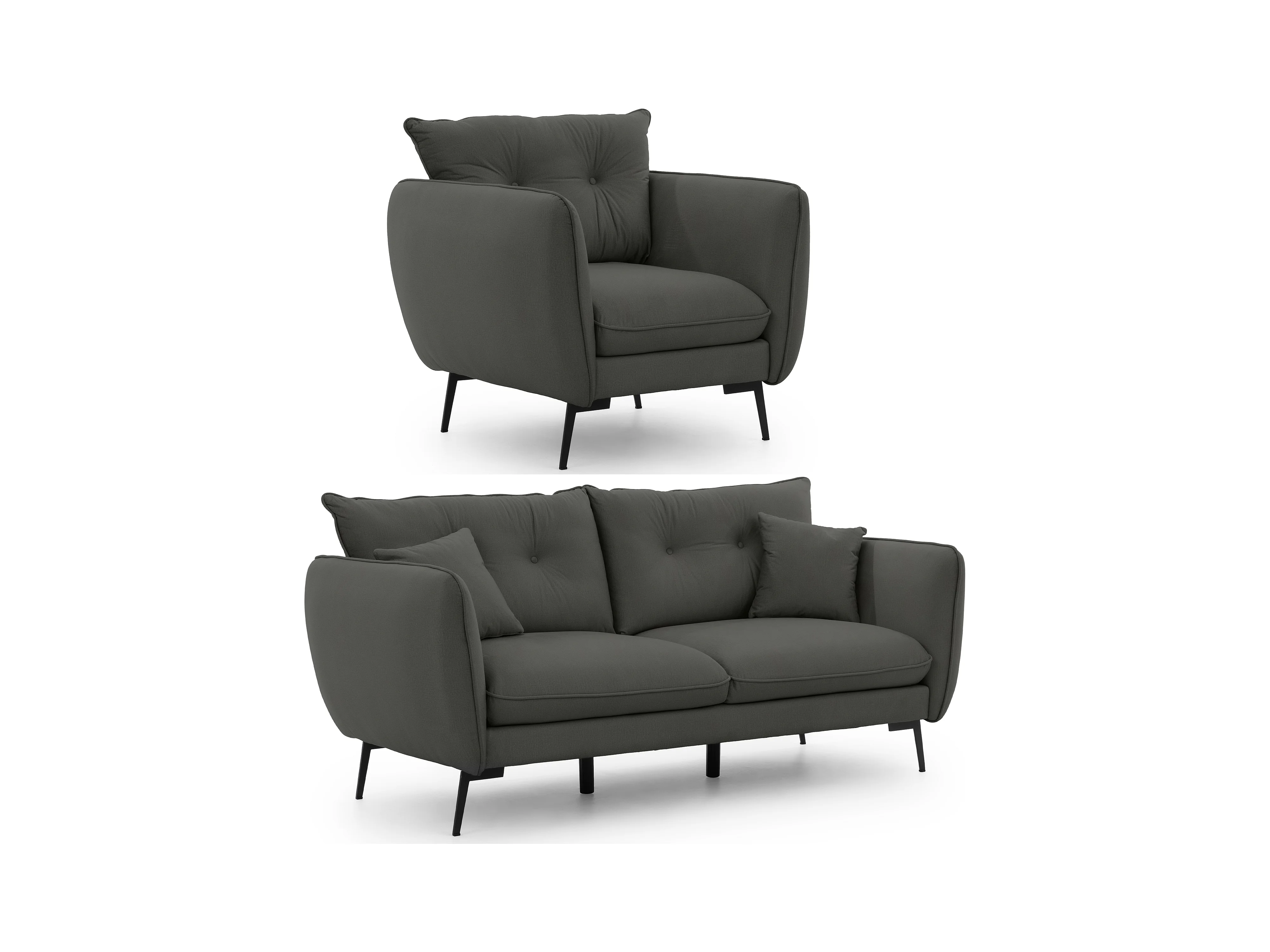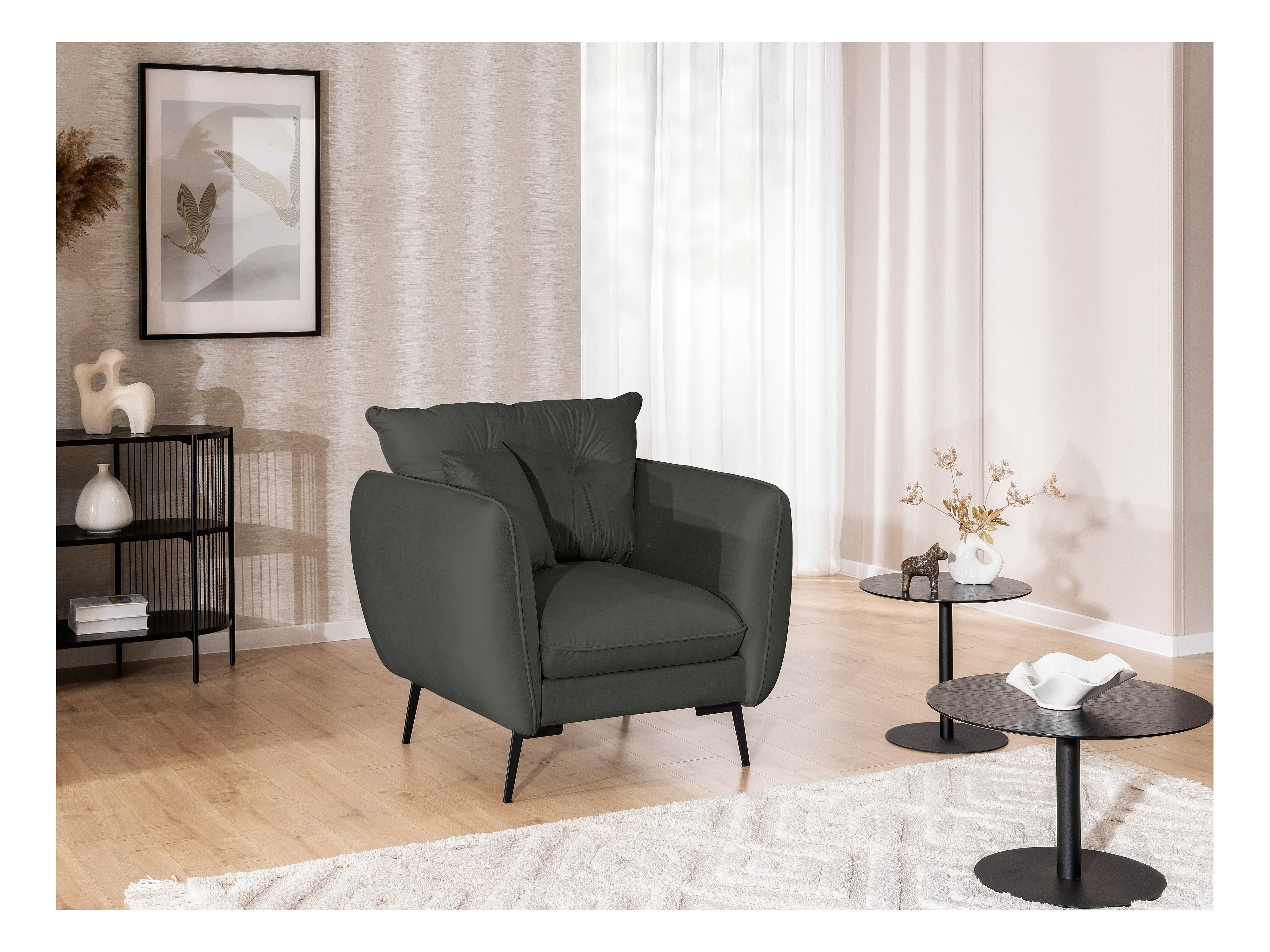 Nordloft - Modernes Polstergarnitur 3+1 aus Dunkelgrau Samt-Stoff mit Hohen Schwarzen Metallfüßen und schöner Sitzkomfort