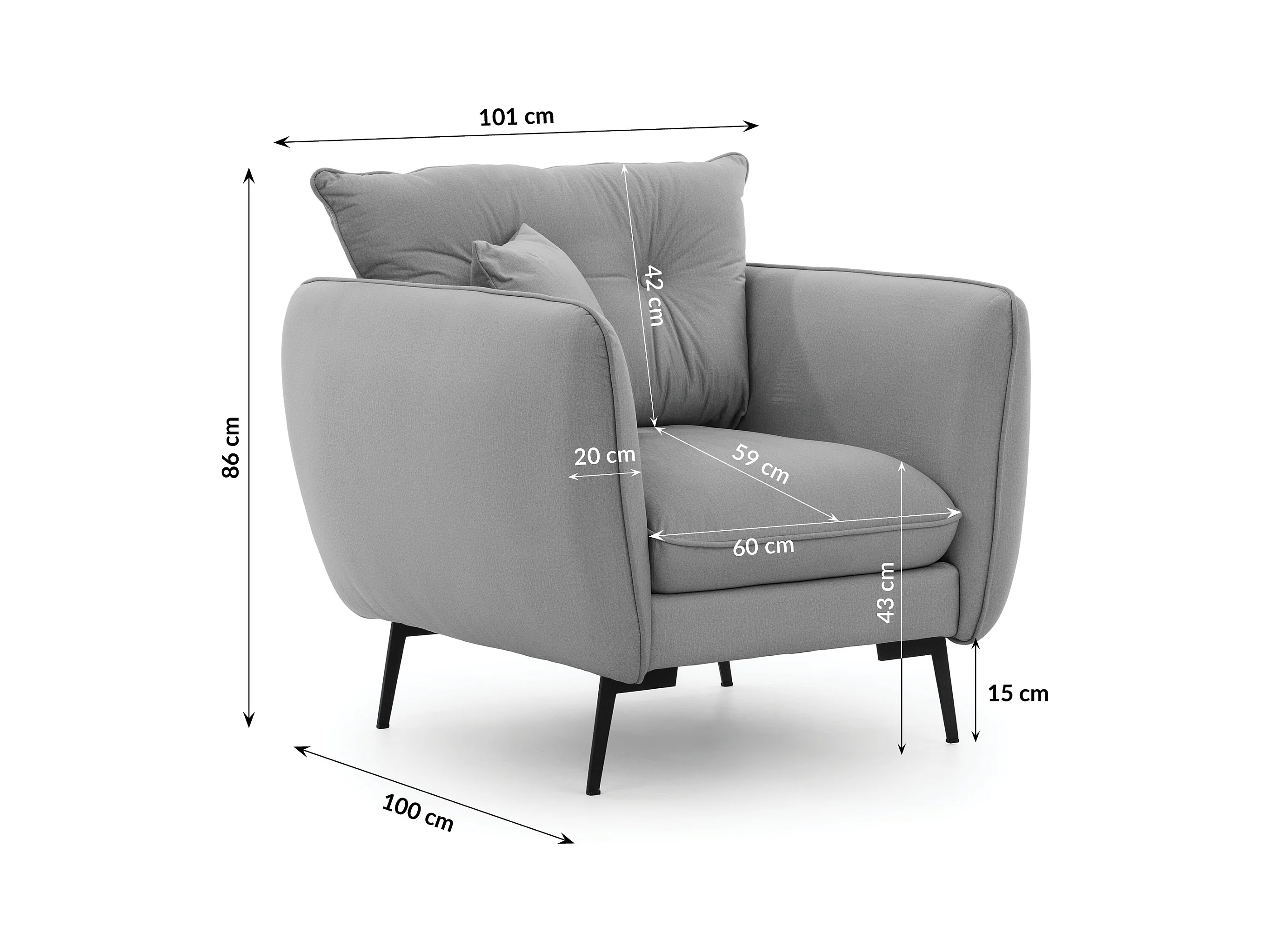 Nordloft - Modernes Sessel aus Hellgrau Samt-Stoff mit Hohen Schwarzen Metallfüßen und schöner Sitzkomfort