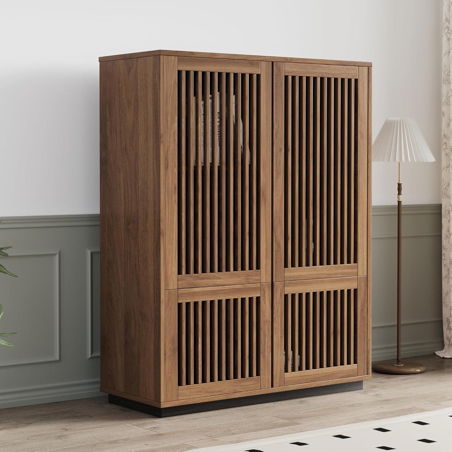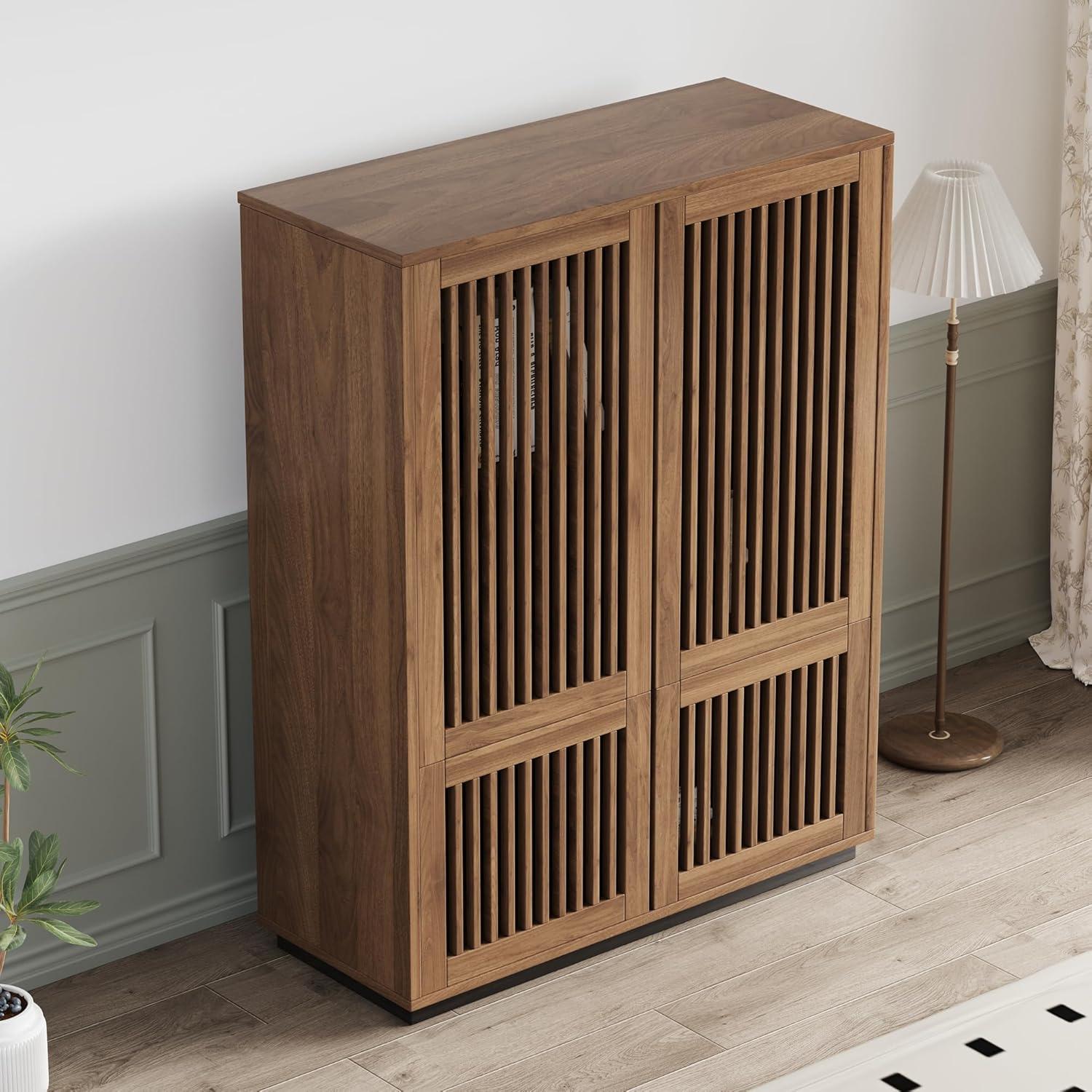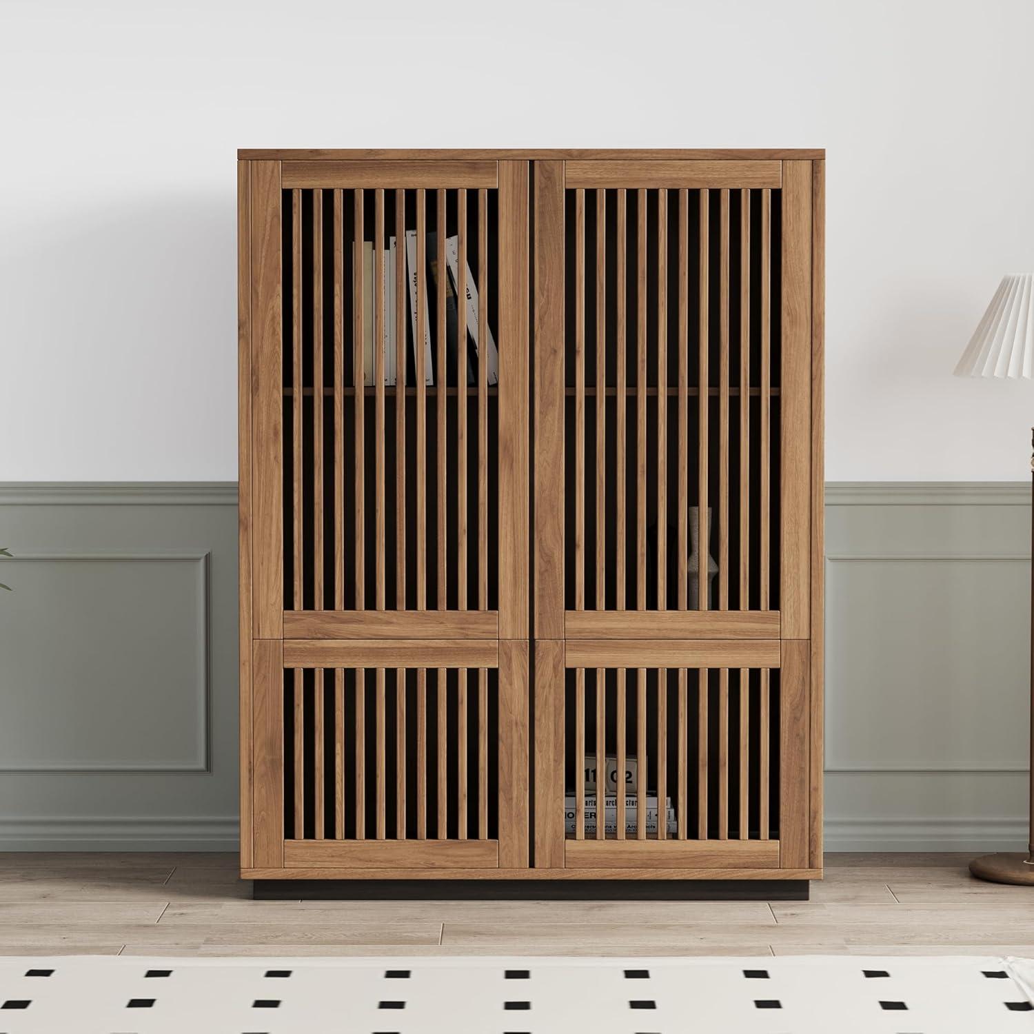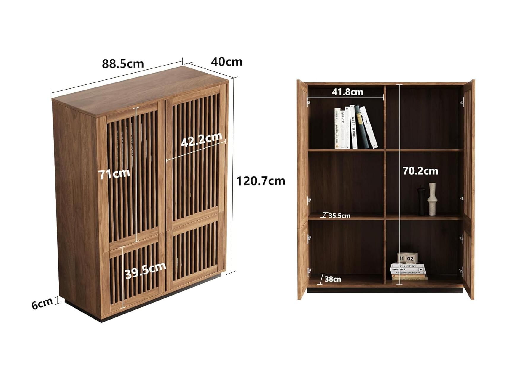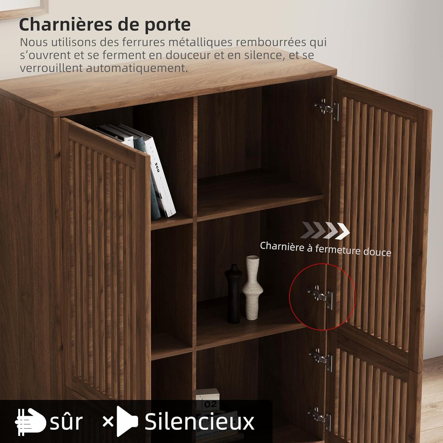 【Ästhetisches Design & Vintage-Stil】 Dieser Schrank vereint rustikale Eleganz mit einem Vintage-Look. Seine Türen mit vertikalen Lamellen schaffen ein zeitloses und minimalistisches Design, das Ihrem Wohnzimmer oder Schlafzimmer eine moderne und gemütliche Note verleiht. 【Hochwertiges Material & Langlebigkeit】 Hergestellt aus robustem Holz mit einer edlen Nussbaum-Optik, bietet diese Sideboard eine noble Erscheinung und außergewöhnliche Stabilität. Feuchtigkeits- und schimmelresistent sowie pflegeleicht ist es für den dauerhaften täglichen Gebrauch konzipiert. 【Großer Stauraum】 Mit seinen 4 Türen und seinem gut organisierten Innenraum bietet dieser Schrank reichlich Platz für Bücher, Geschirr, Kleidung oder Alltagsgegenstände. Schubladen und Regale ermöglichen eine effiziente und ordentliche Organisation. 【Vielseitigkeit & Mehrfachnutzung】 Ob als Bücherregal im Büro, Sideboard im Wohnzimmer oder Flurschrank – dieses Möbelstück passt sich allen Bedürfnissen an. Selbst in kleinen Räumen optimiert es Lagerung und Ästhetik. 【Einfache Montage & Kundenservice】 Dank klarer Anweisungen ist der Aufbau einfach und schnell. Unser zuverlässiger Kundenservice begleitet Sie für ein sorgenfreies Erlebnis mit Ihrem neuen, eleganten und funktionalen Schrank.
