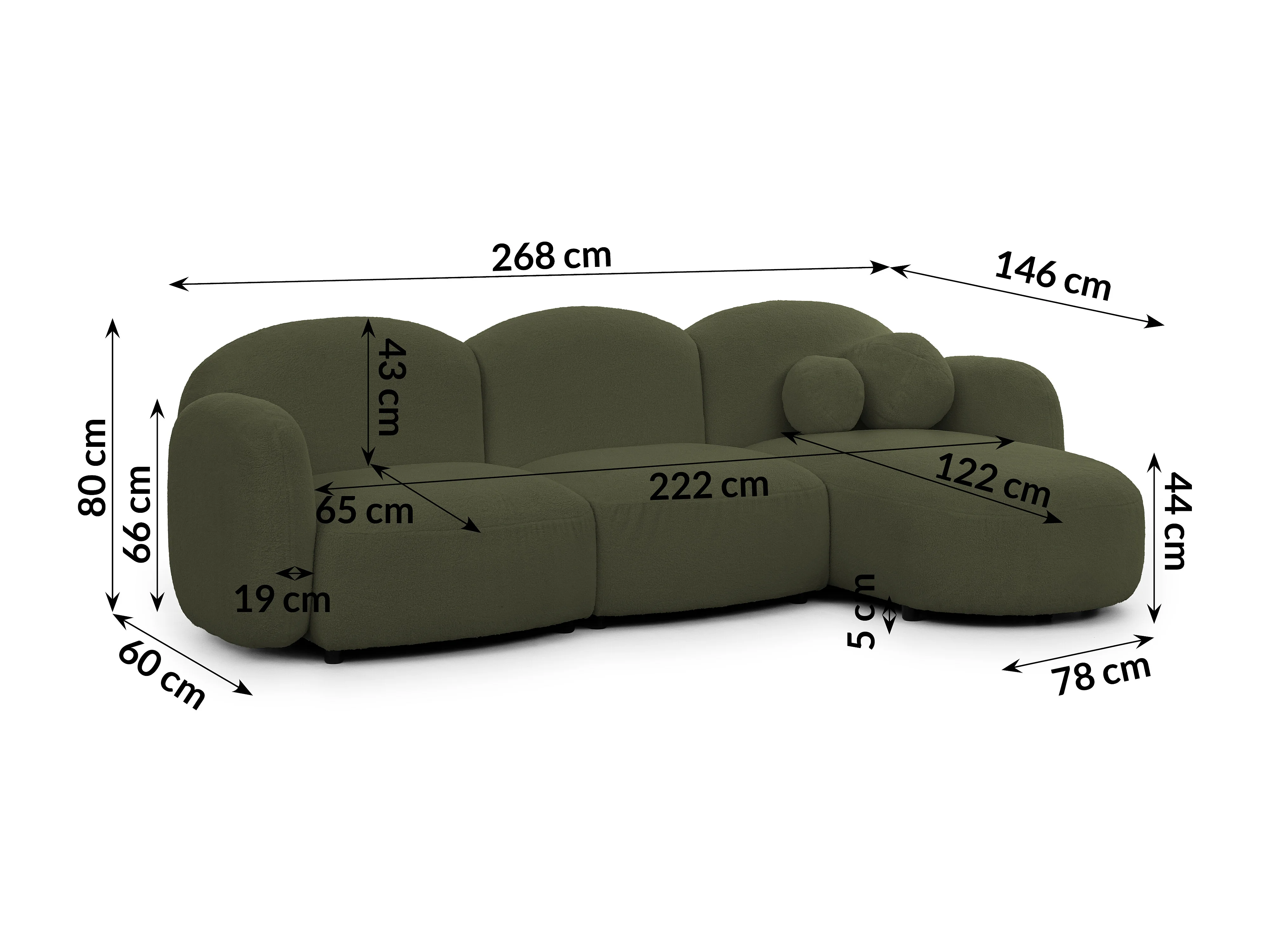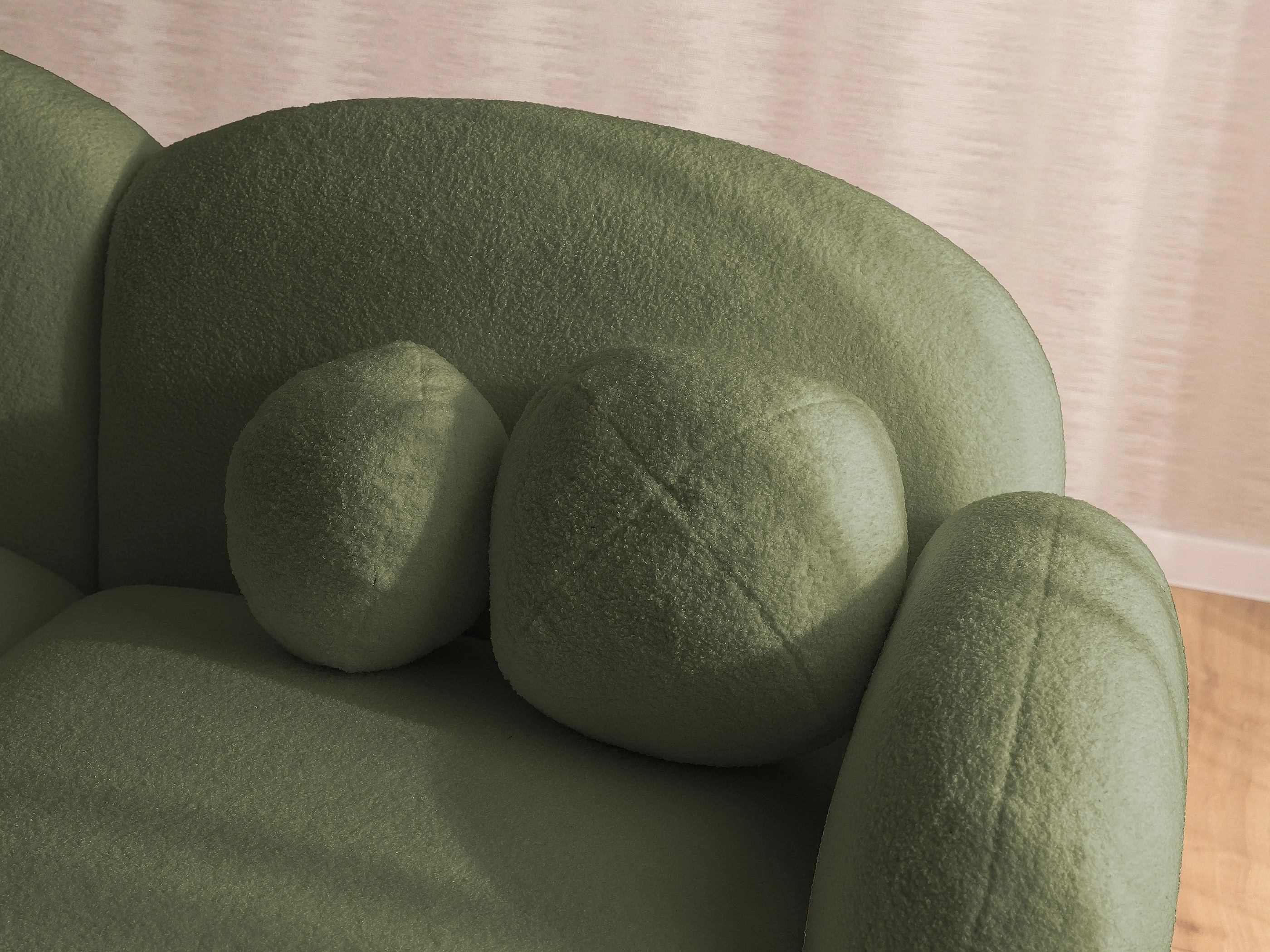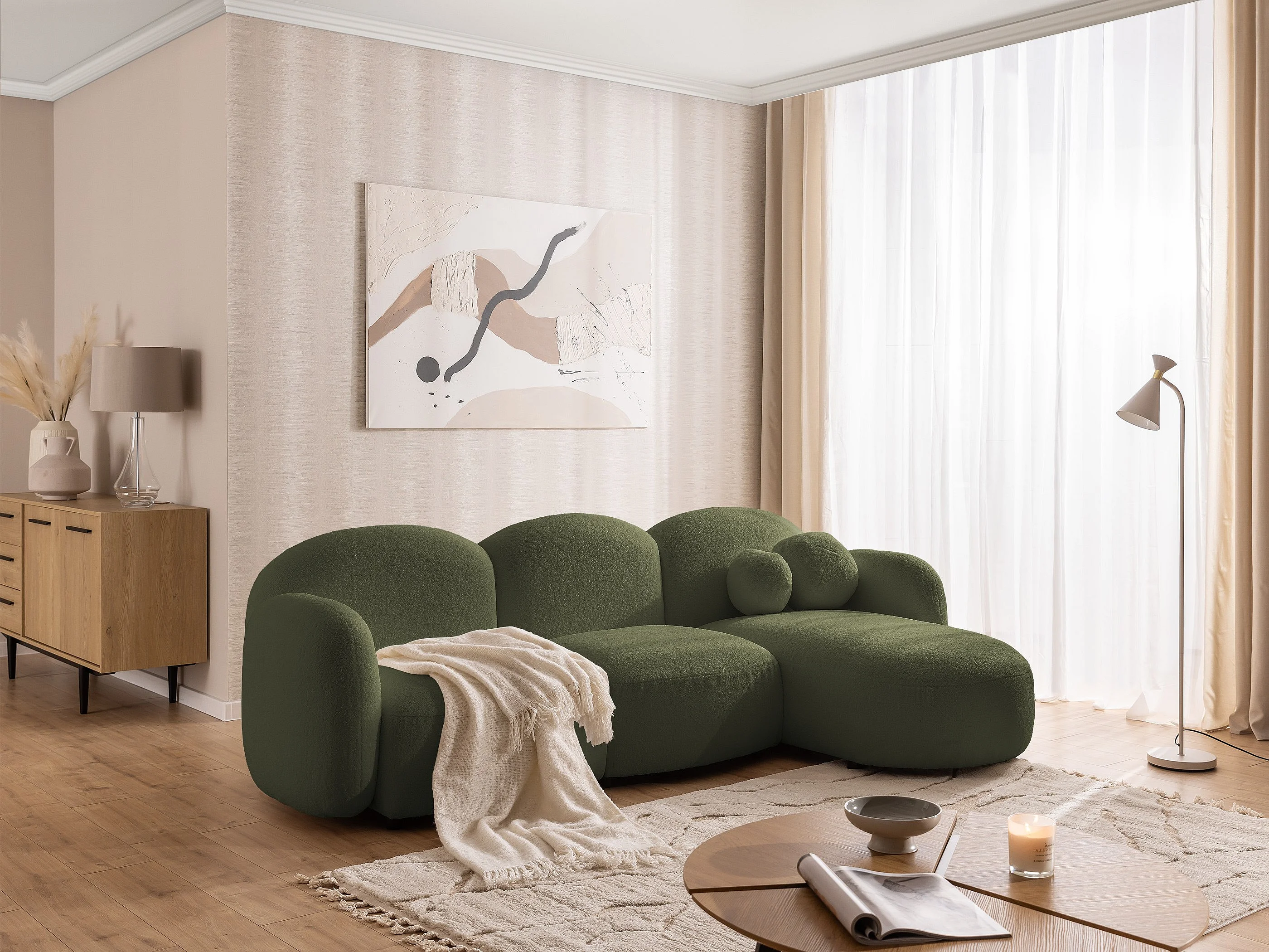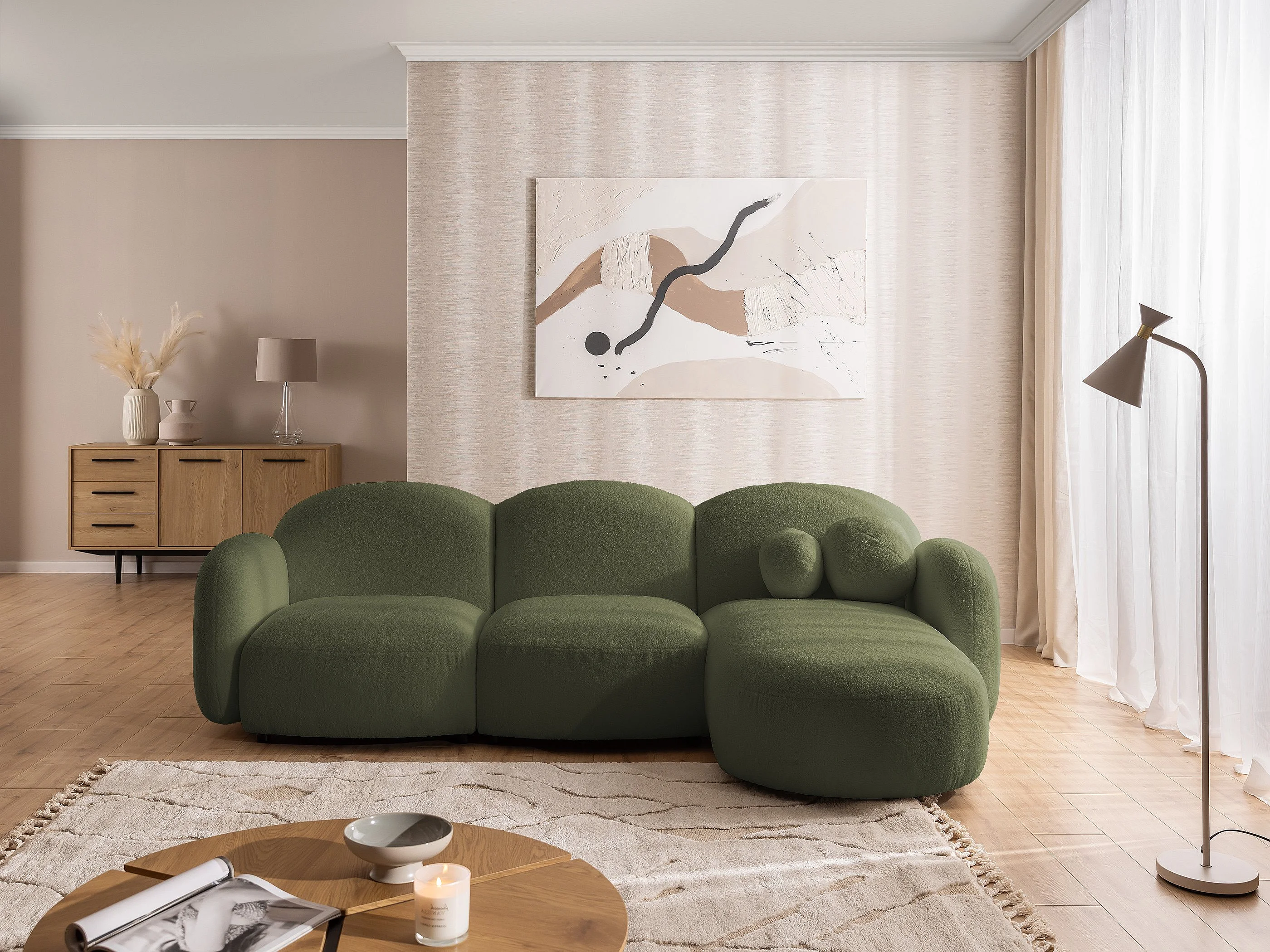 Nuvola - Moderne Ecksofa L-Form aus Grün Bouclé-Stoff mit abgerundetem Design und hohem Sitzkomfort