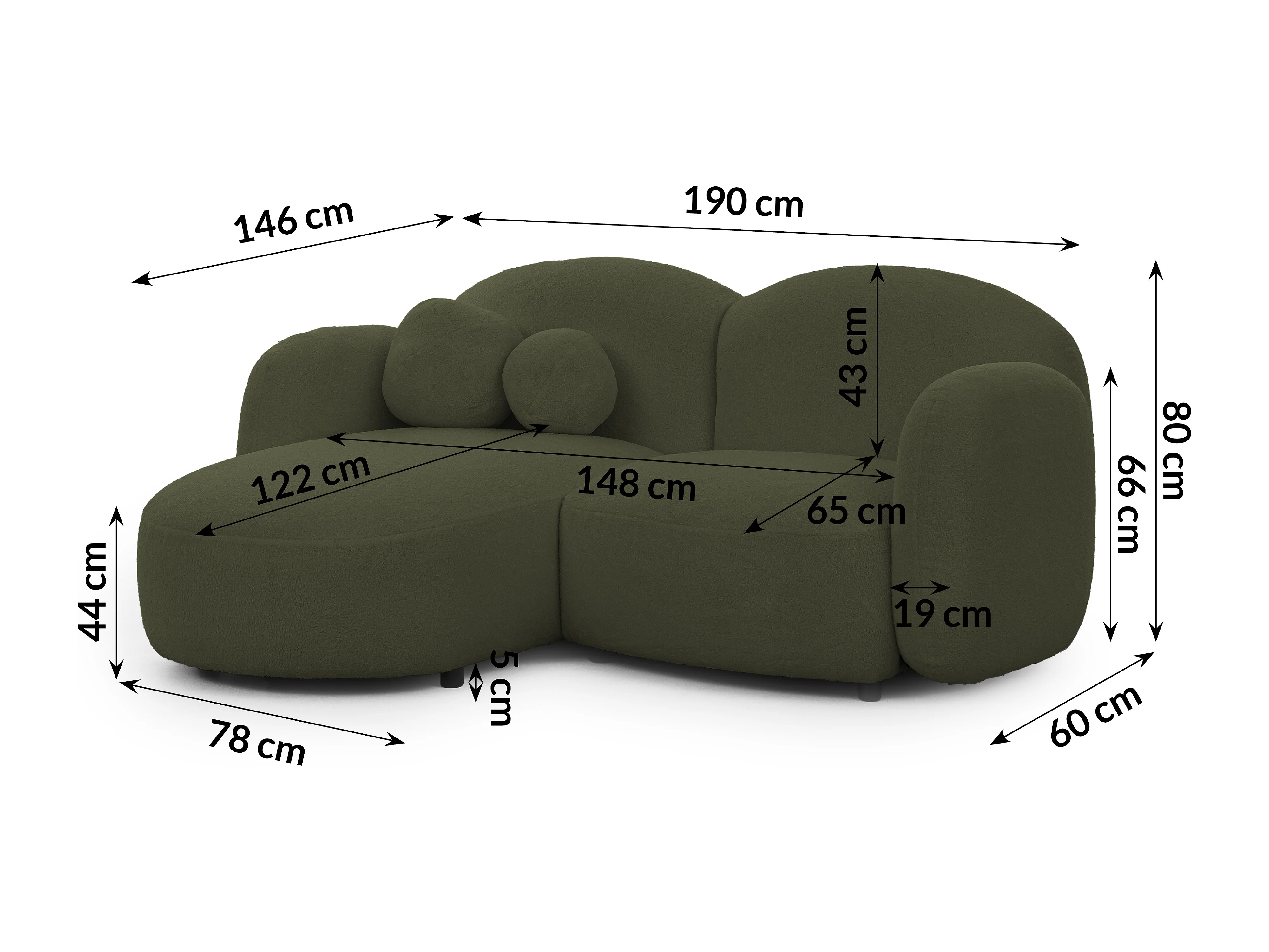 Nuvola - Moderne Ecksofa L-Form aus Grün Bouclé-Stoff mit abgerundetem Design und hohem Sitzkomfort