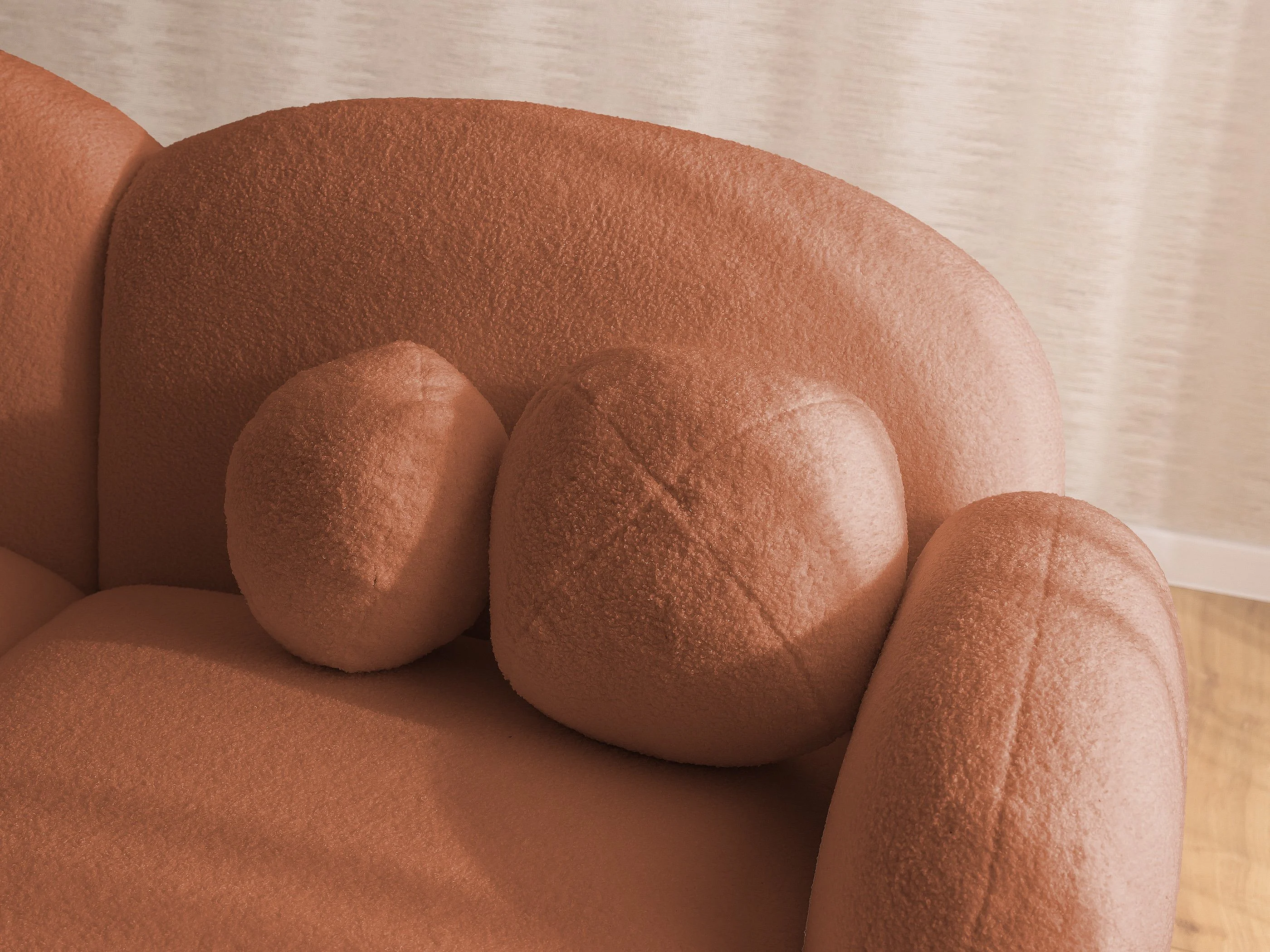 Nuvola - Moderne Ecksofa L-Form aus Terracotta Bouclé-Stoff mit abgerundetem Design und hohem Sitzkomfort