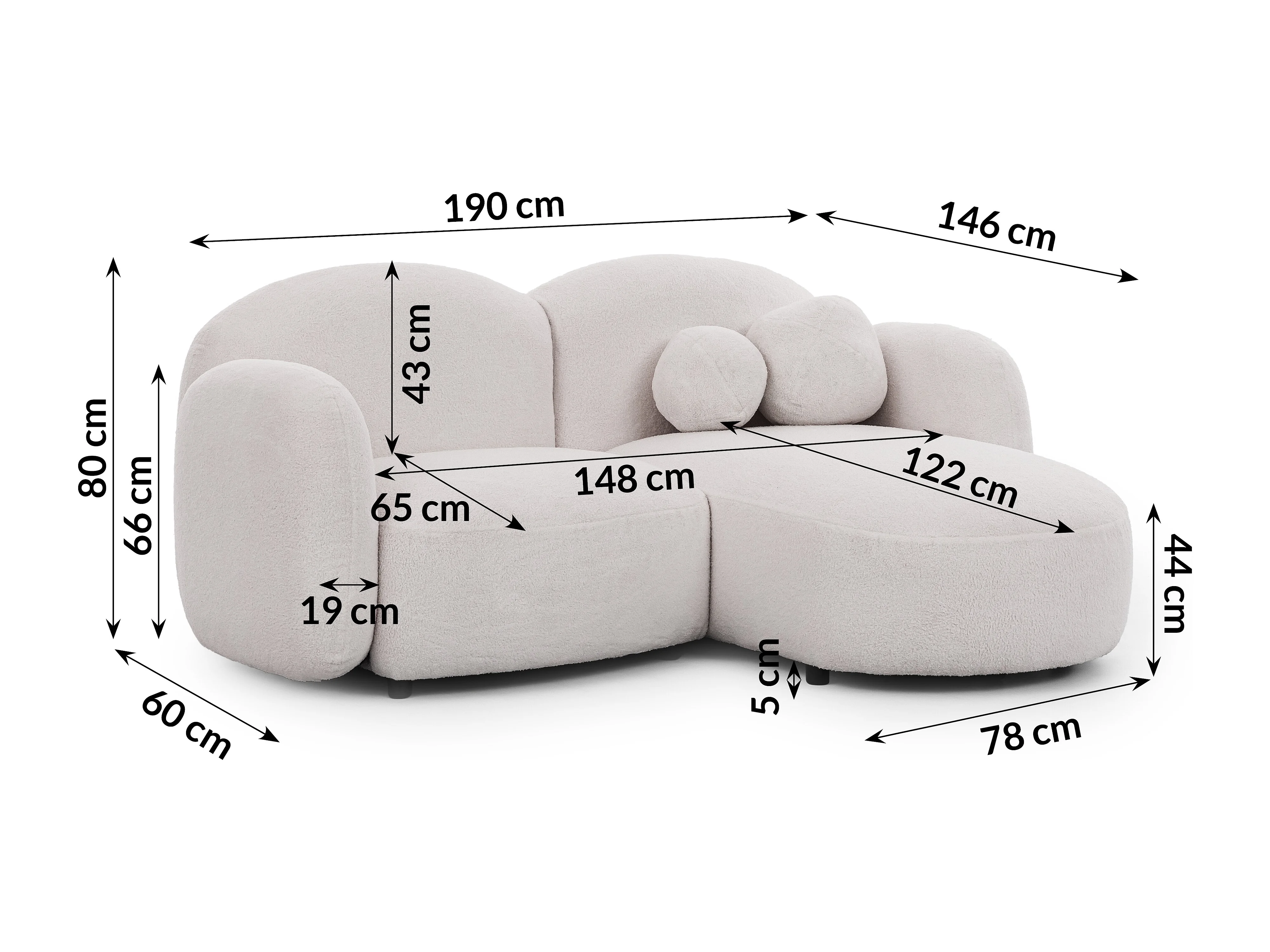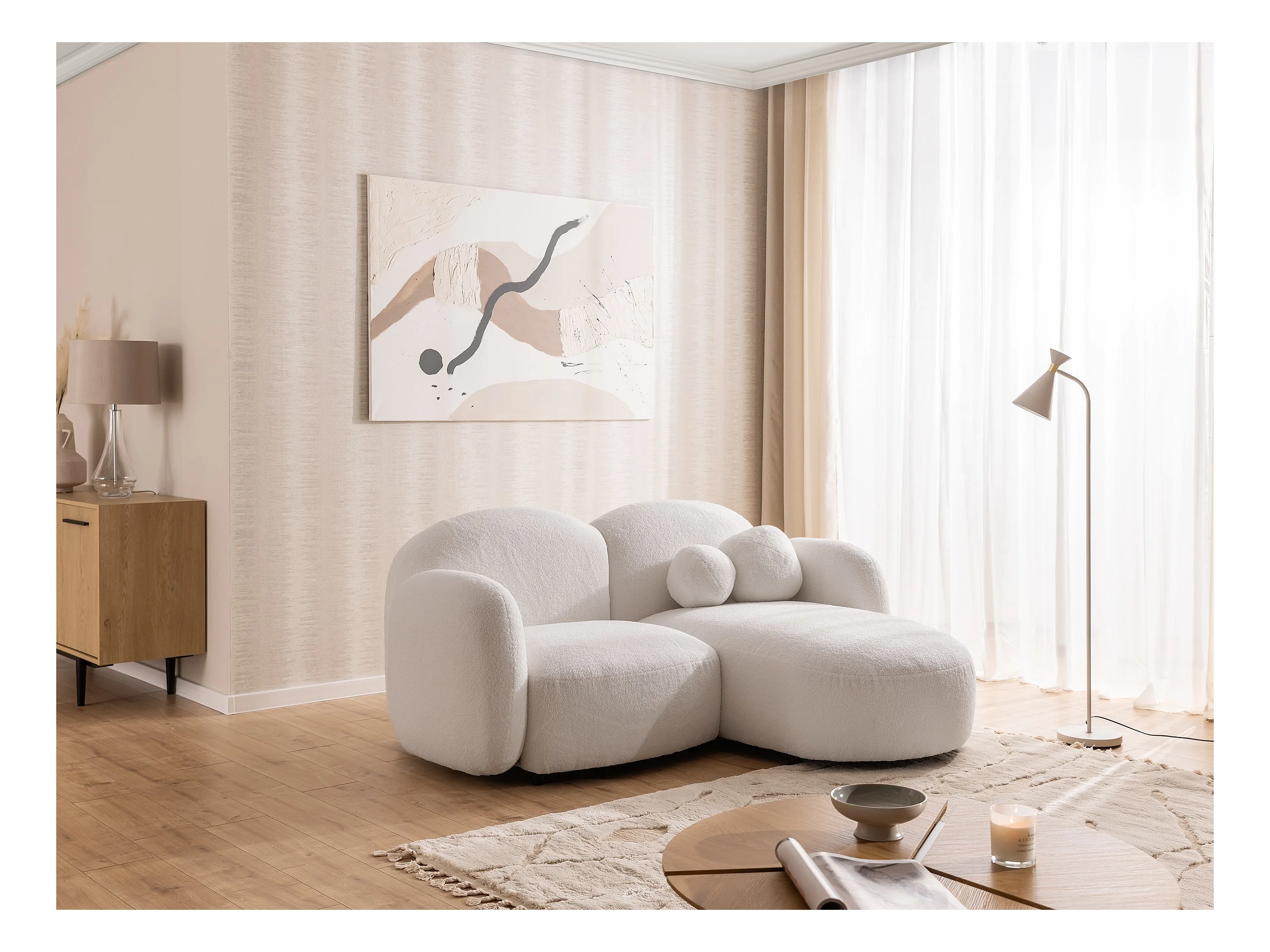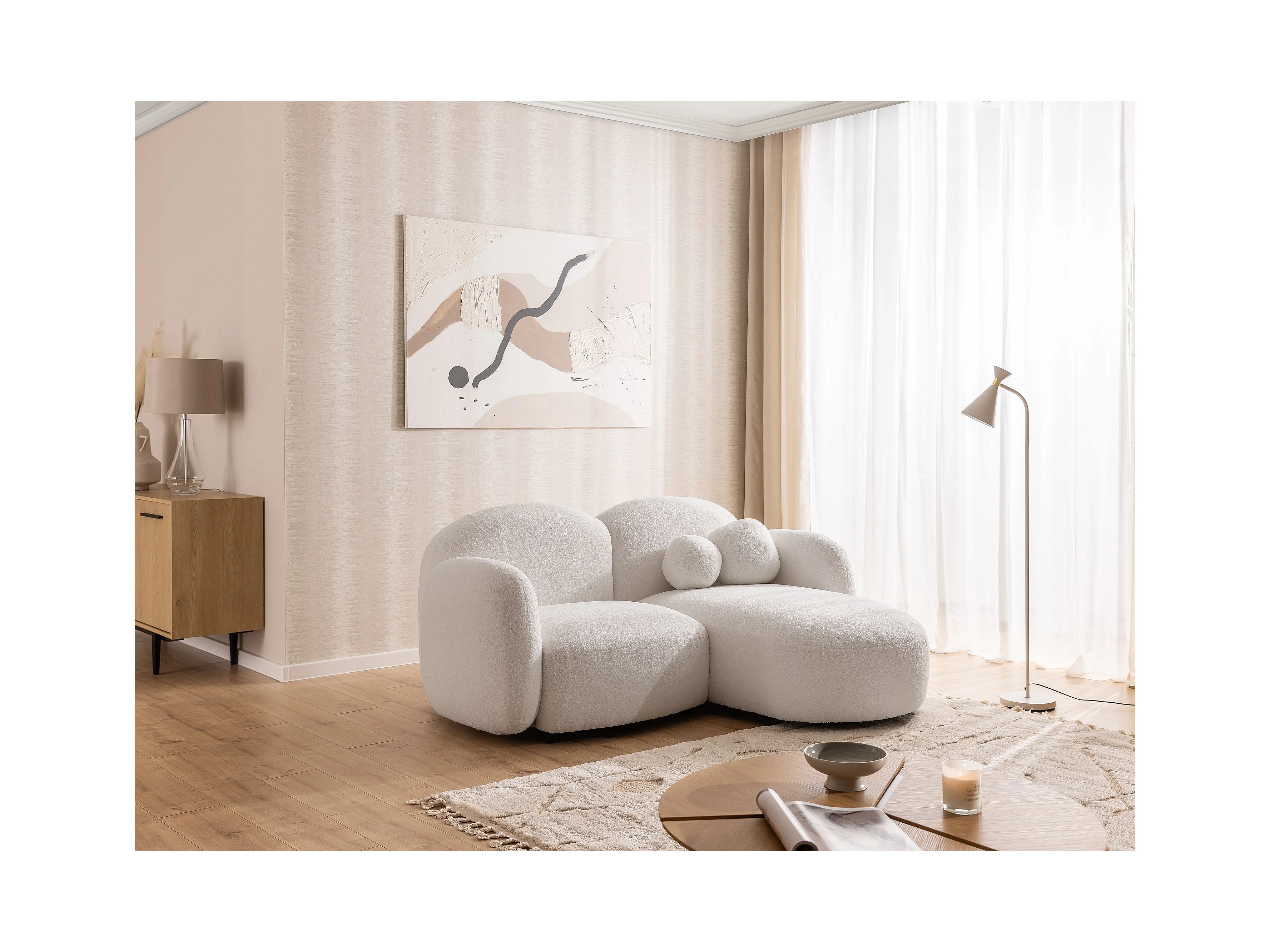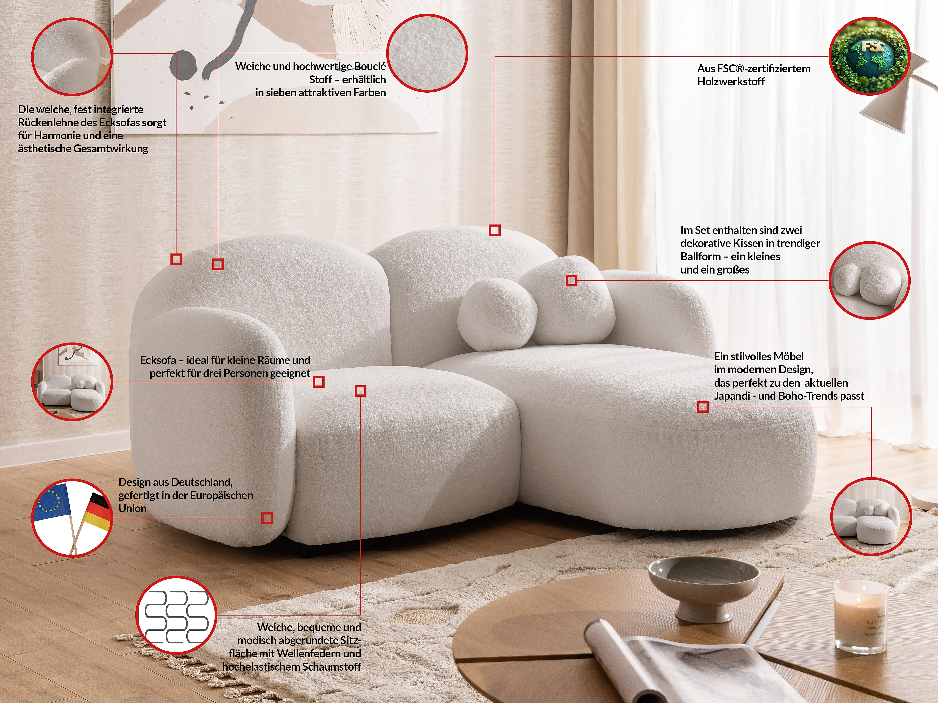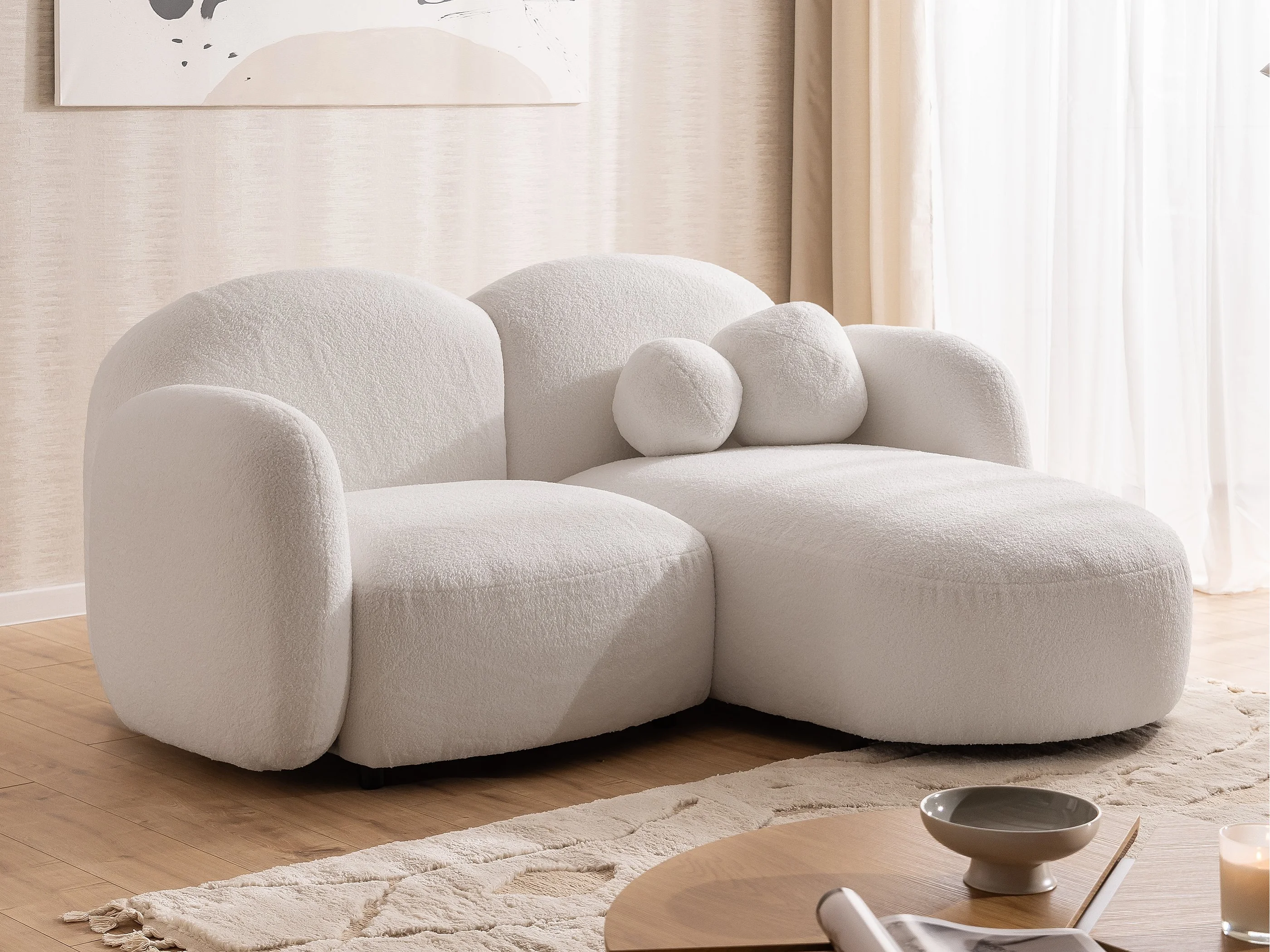 Nuvola - Moderne Ecksofa L-Form aus Weiß Bouclé-Stoff mit abgerundetem Design und hohem Sitzkomfort