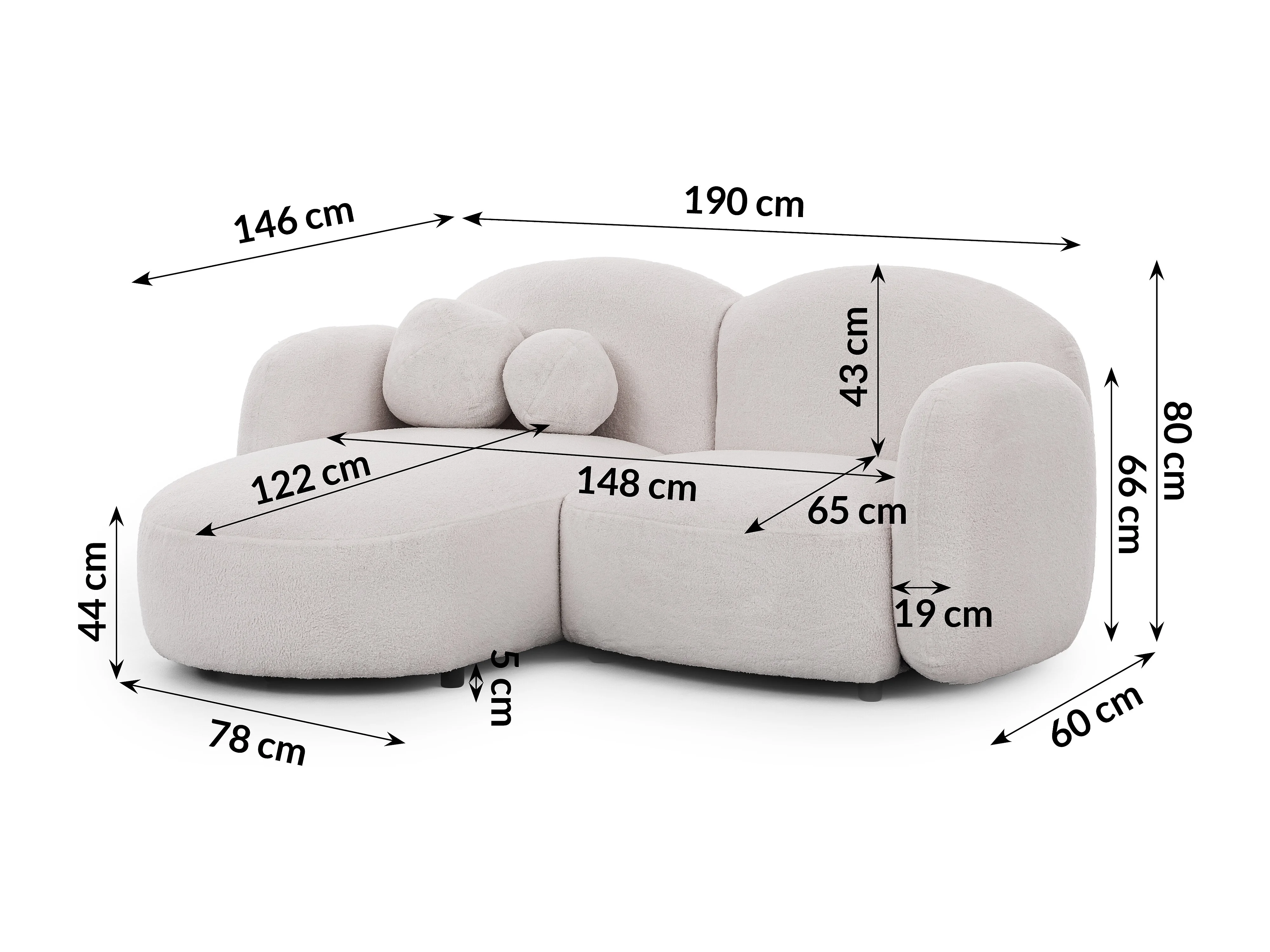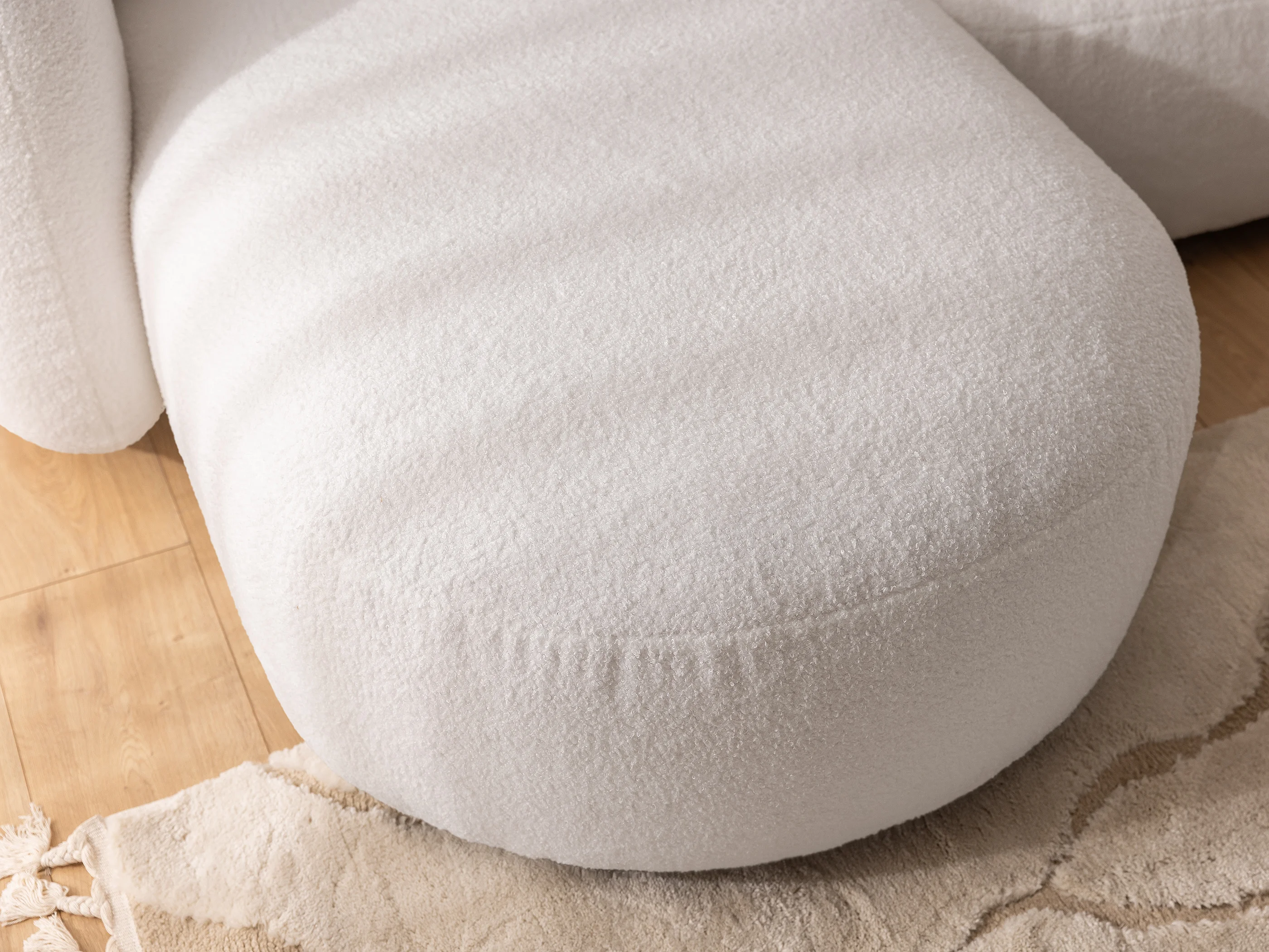 Nuvola - Moderne Ecksofa L-Form aus Weiß Bouclé-Stoff mit abgerundetem Design und hohem Sitzkomfort