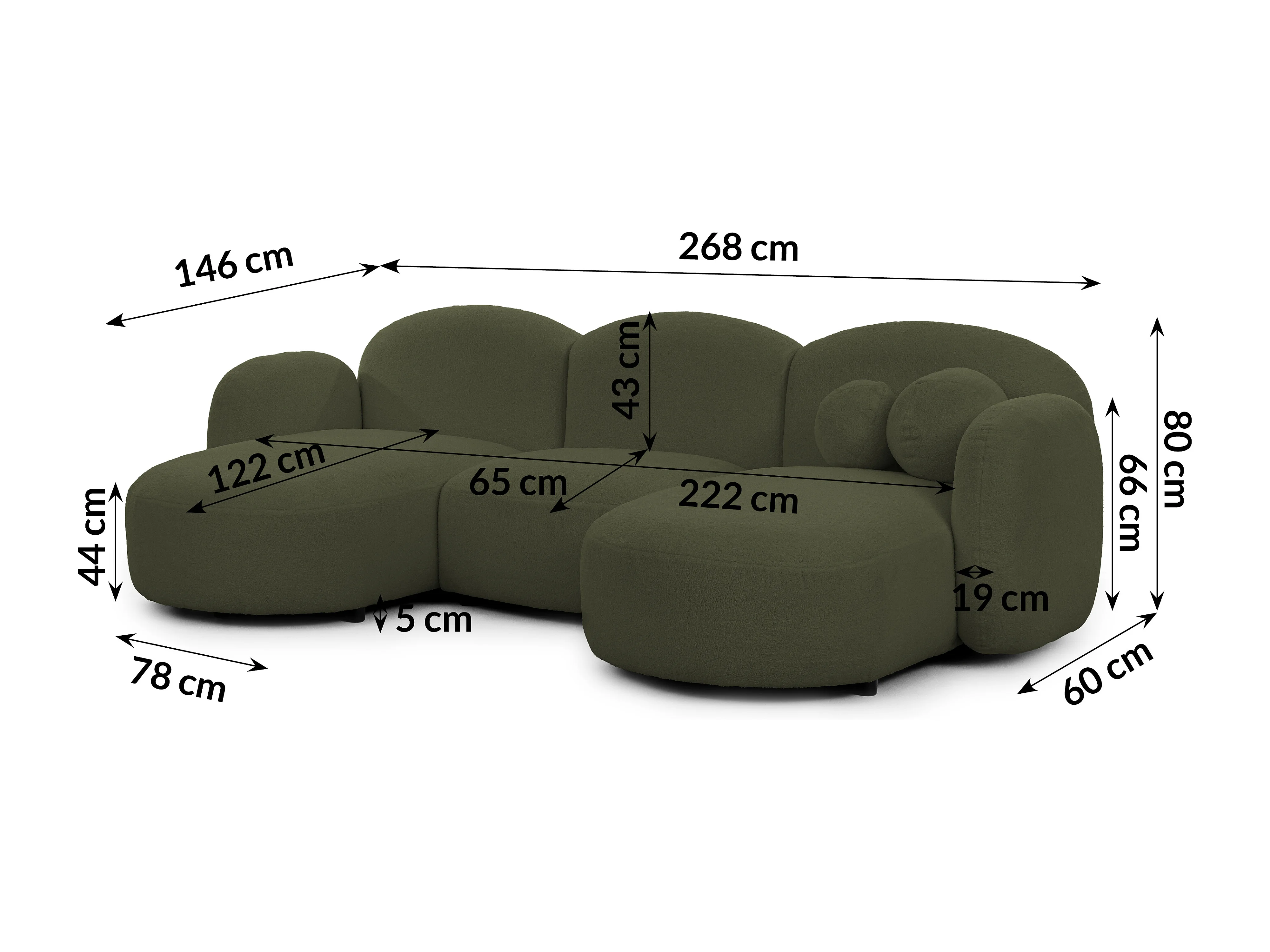 Nuvola - Moderne Wohnlandschaft aus Grün Bouclé mit abgerundetem Design und hohem Sitzkomfort