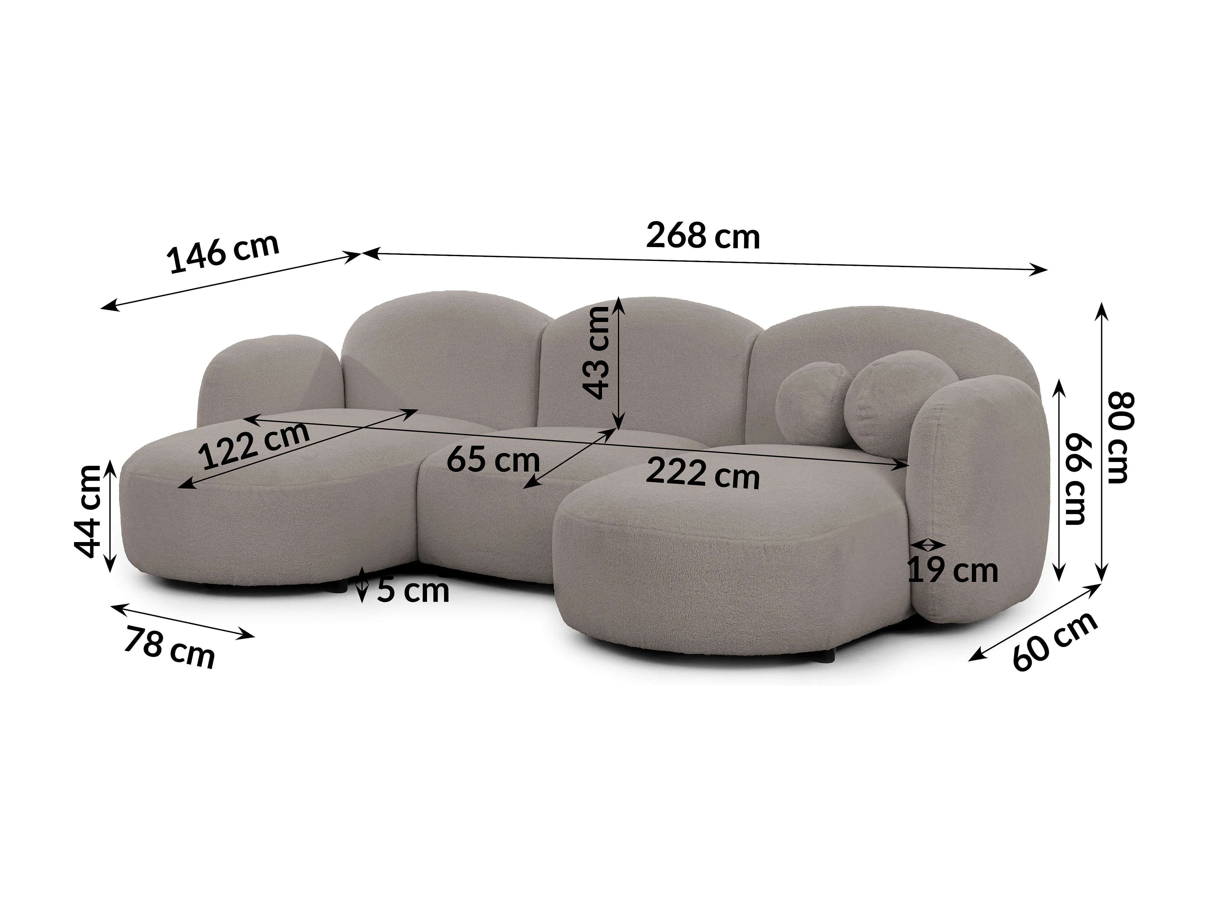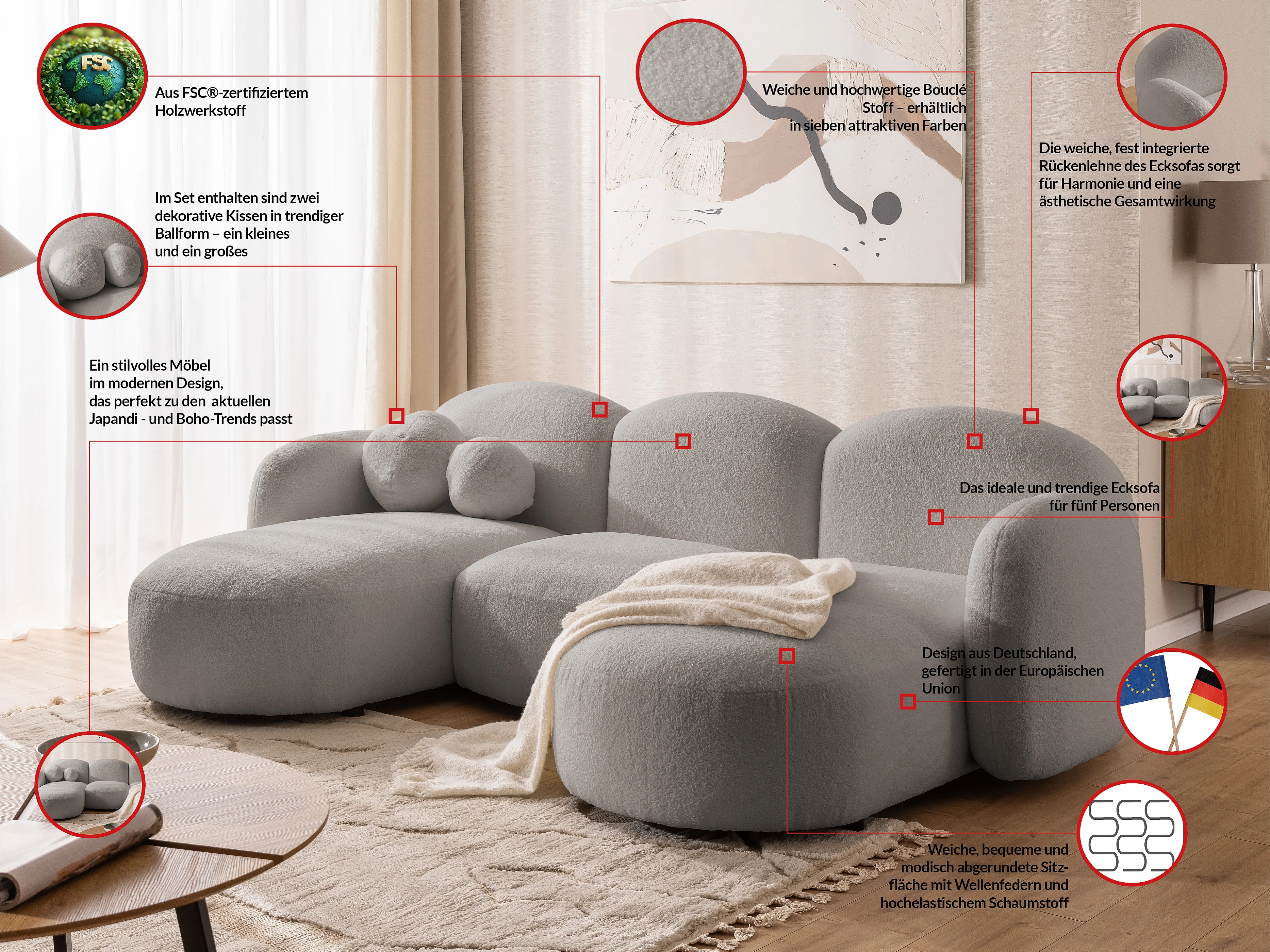 Nuvola - Moderne Wohnlandschaft aus Hellgrau Bouclé mit abgerundetem Design und hohem Sitzkomfort