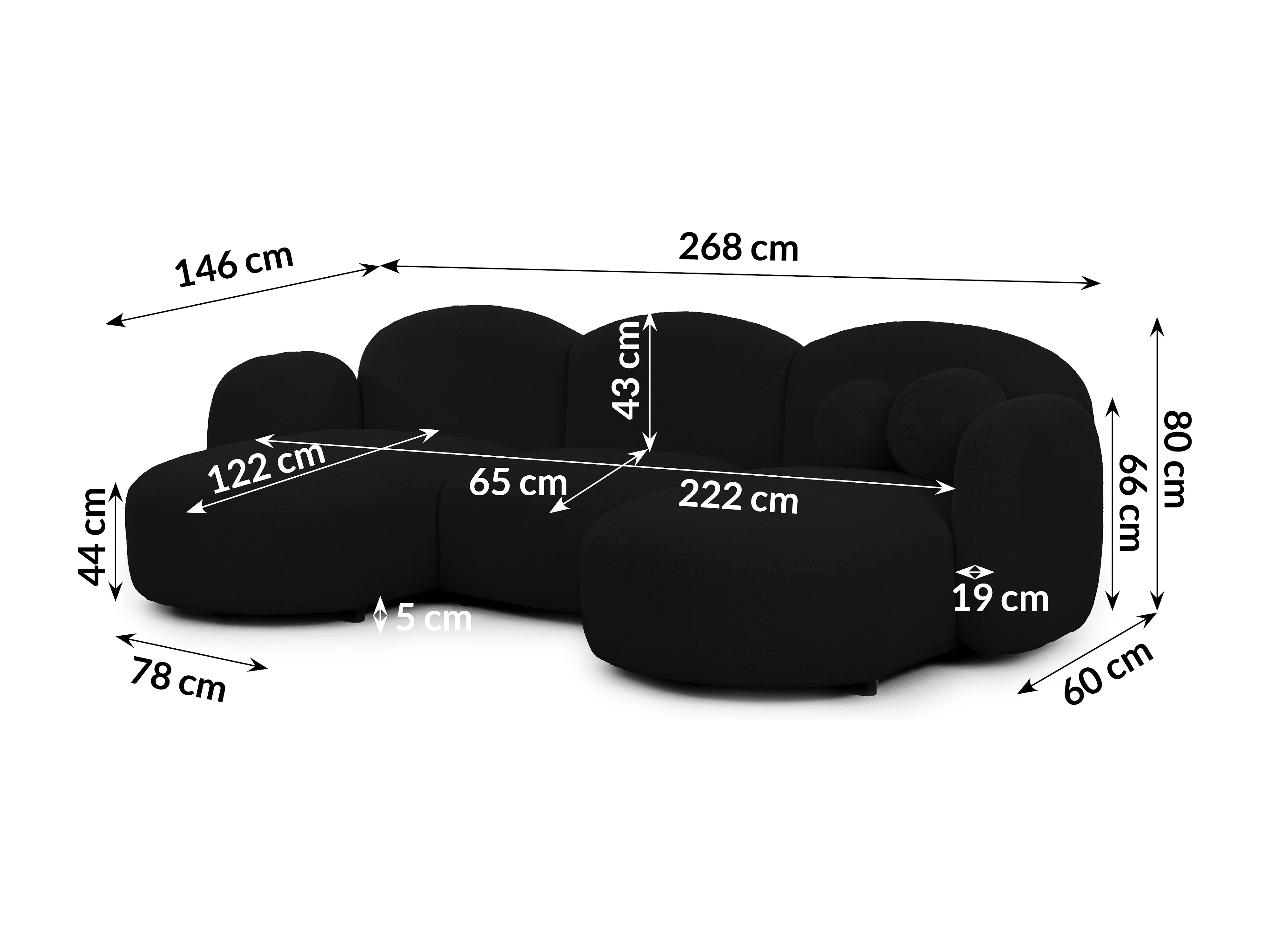 Nuvola - Moderne Wohnlandschaft aus Schwarz Bouclé mit abgerundetem Design und hohem Sitzkomfort