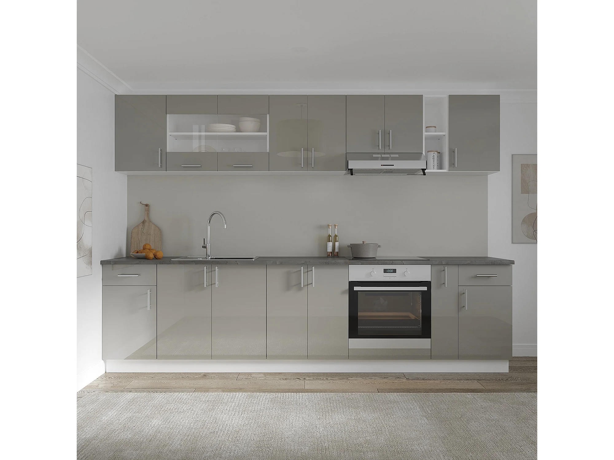 Oberschrank Karo, 2 Türen, Hochglanz Grau/Weiß, MDF, 60 x 30 x 60 cm