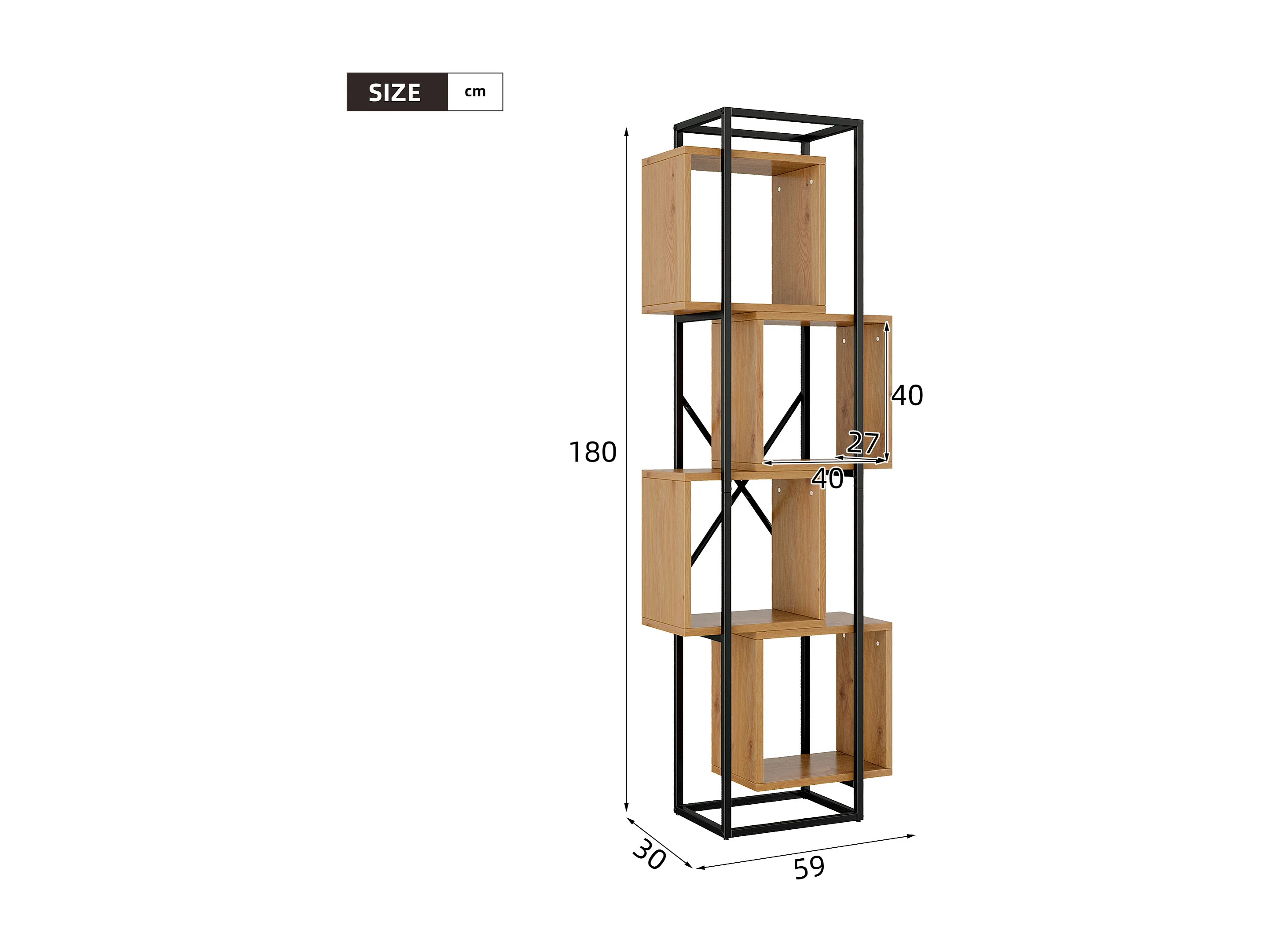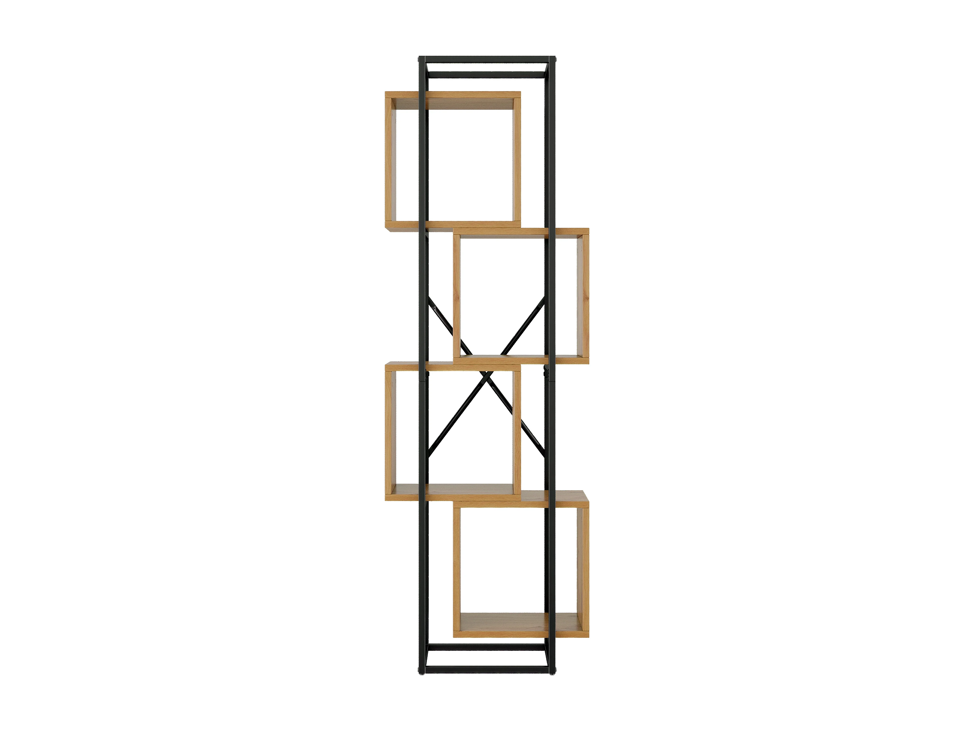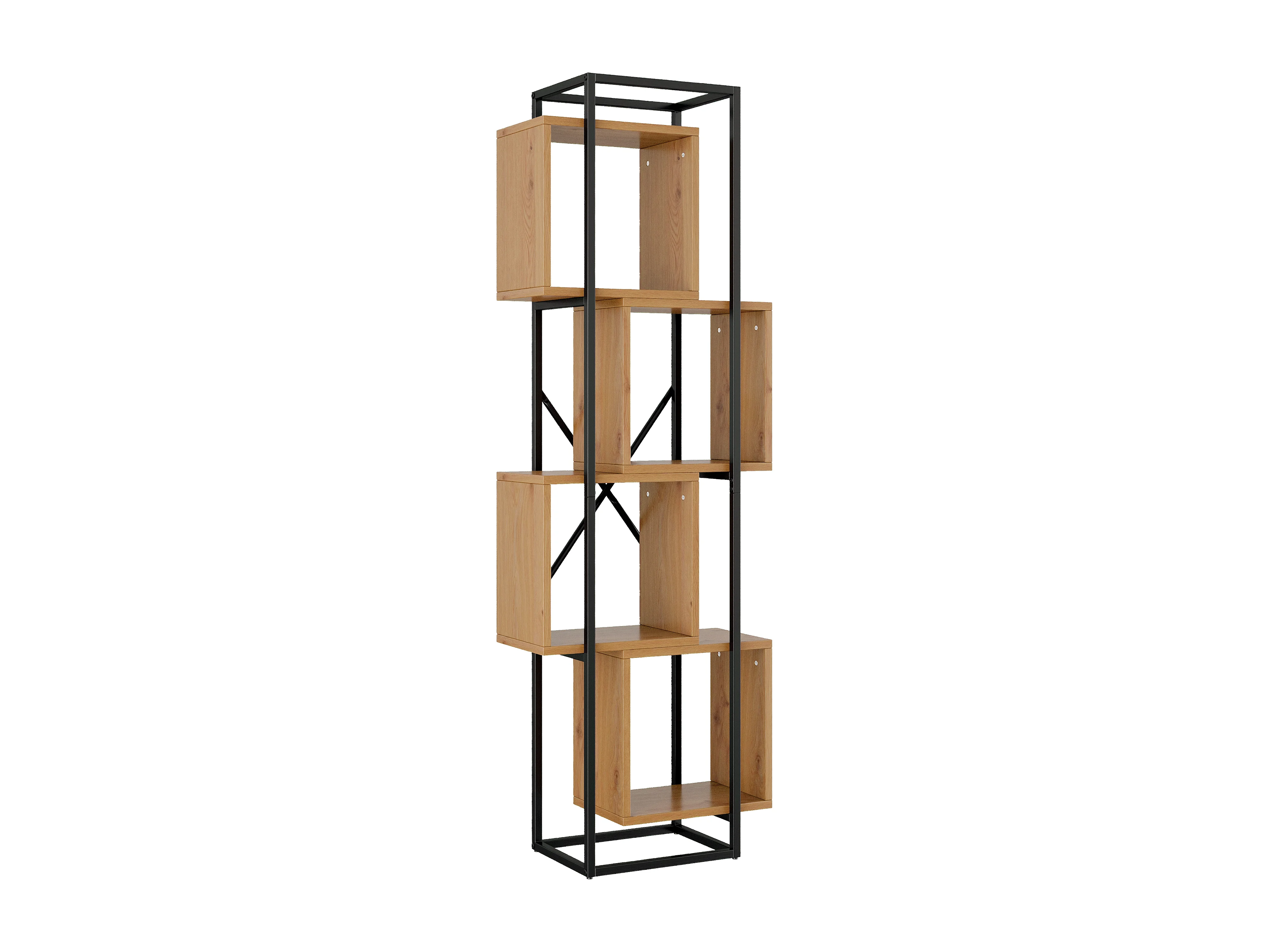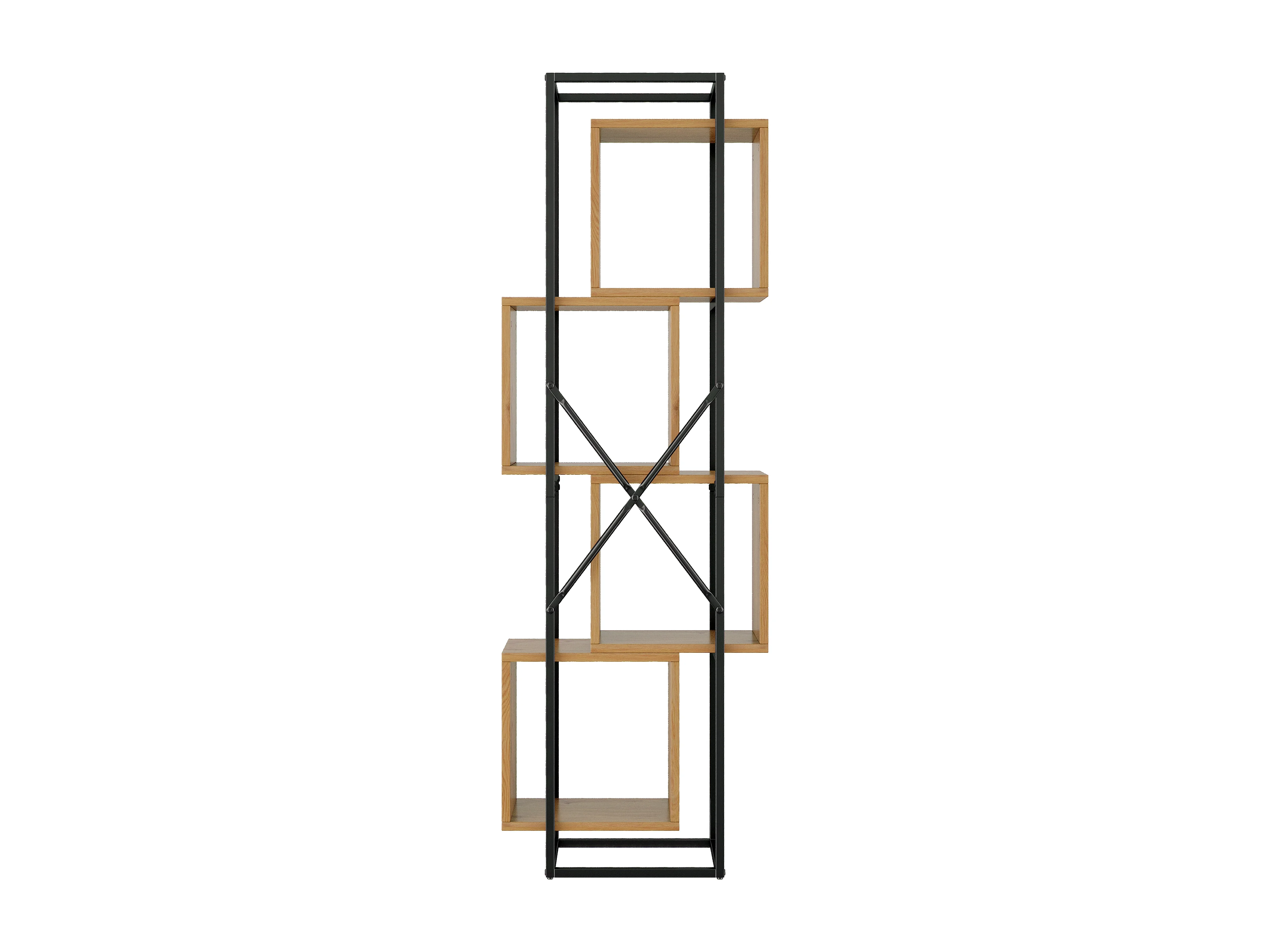 Offenes Standregal 59x30x180 cm - 4 Regale - Gestell aus schwarzem Metall - Bücherregal, Vitrine - MDF-Platten - Natur+Schwarz