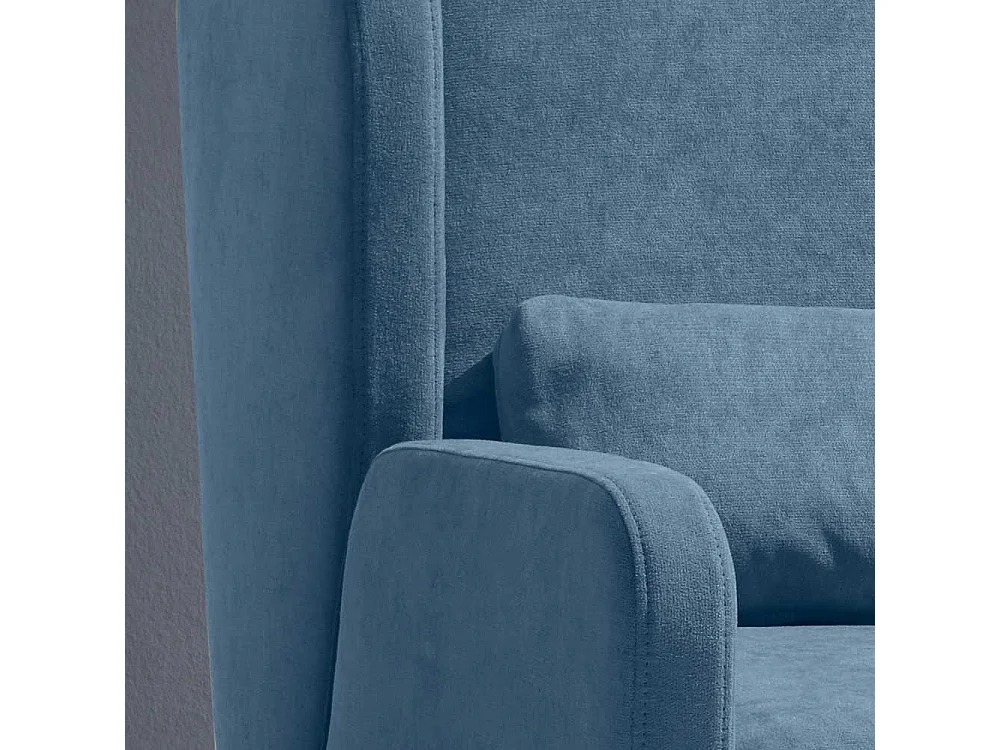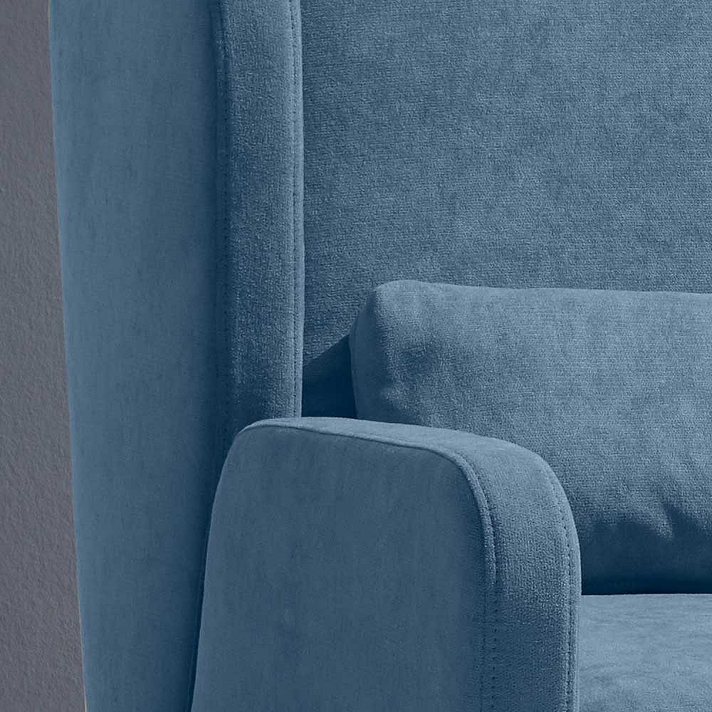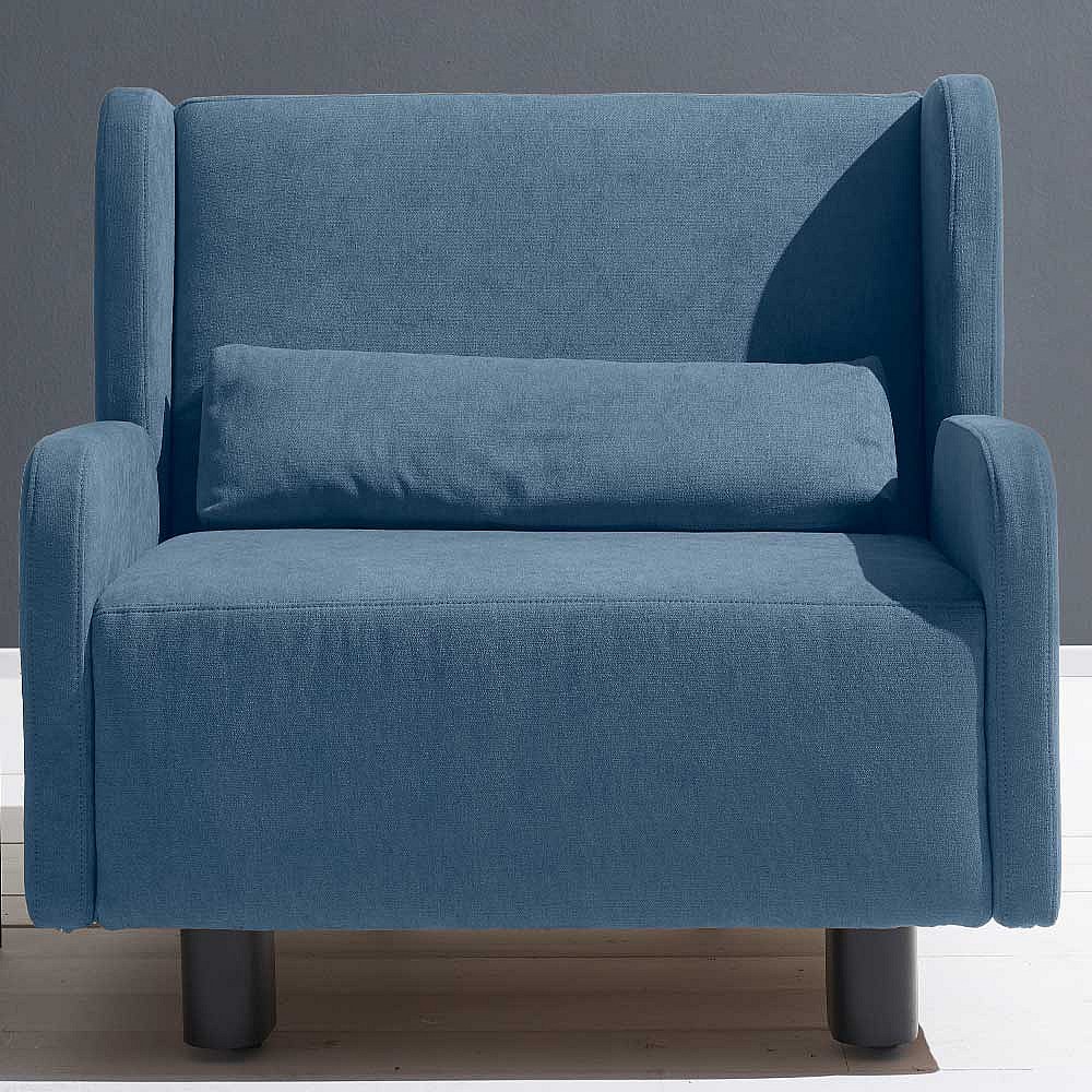 Ohrenbackensessel in Blau Microvelour Schlaffunktion