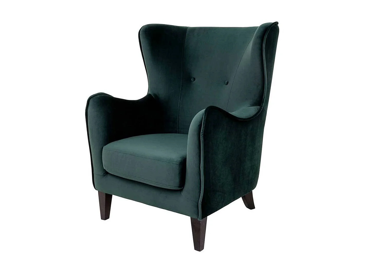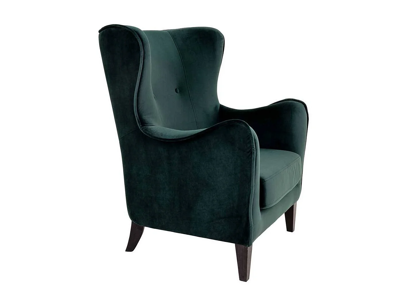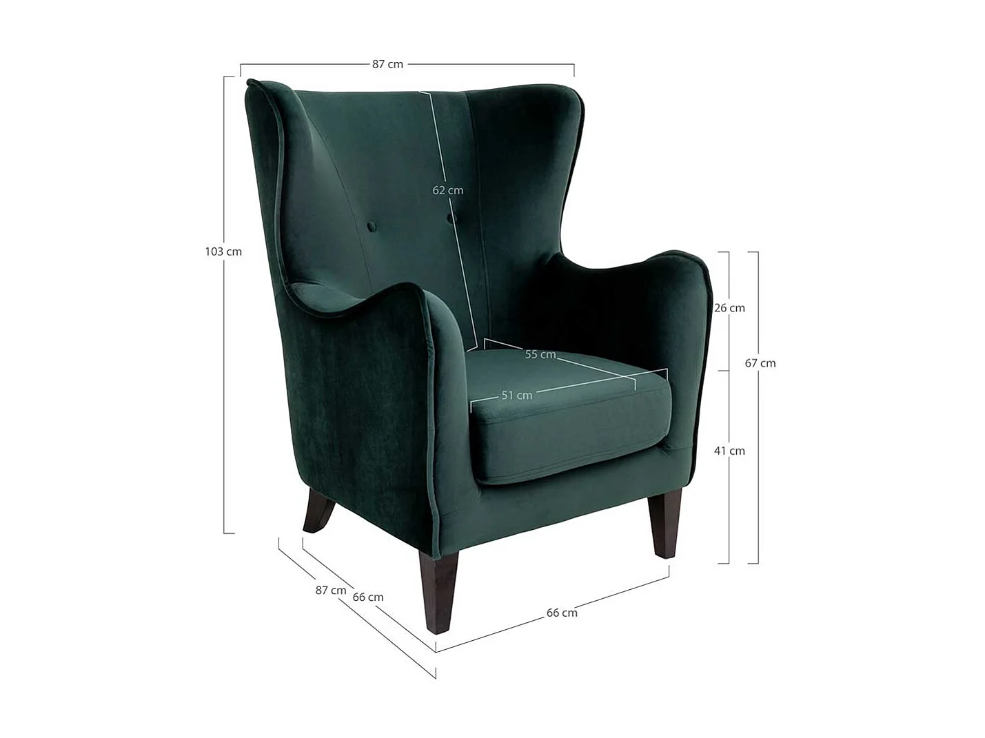 Ohrenbackensessel in Dunkelgrün Samt 55 cm Sitztiefe
