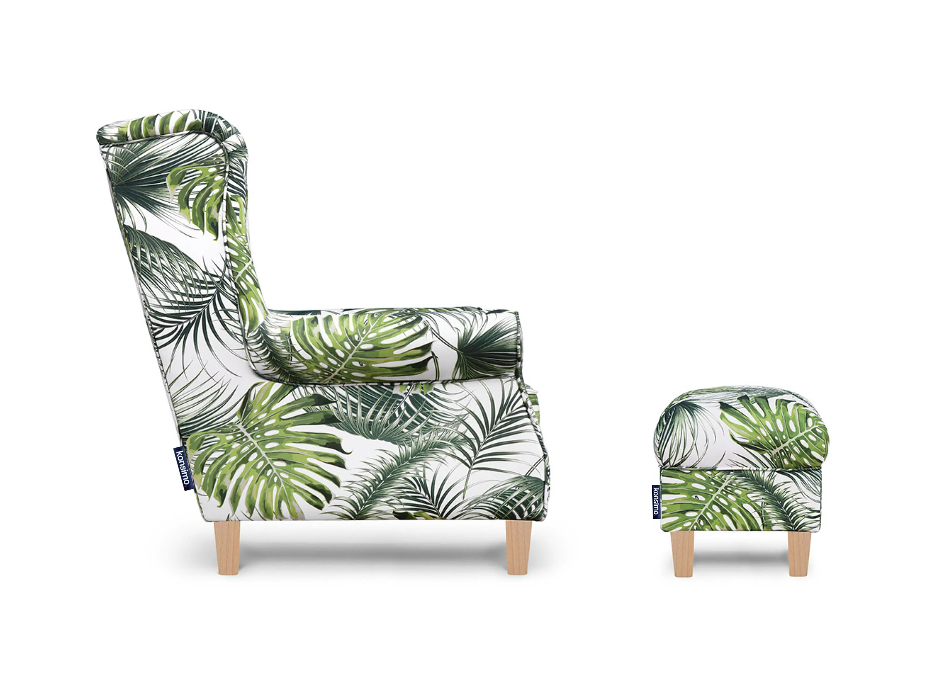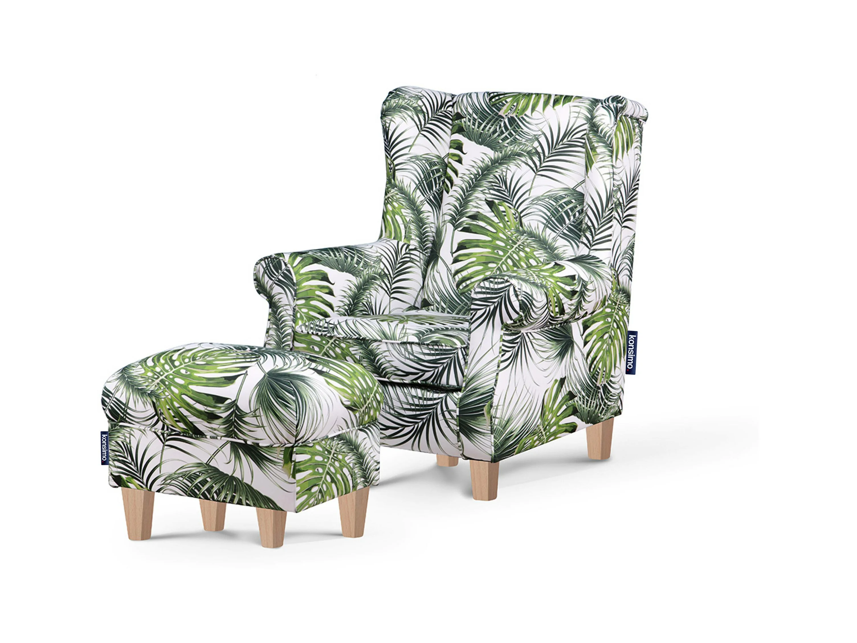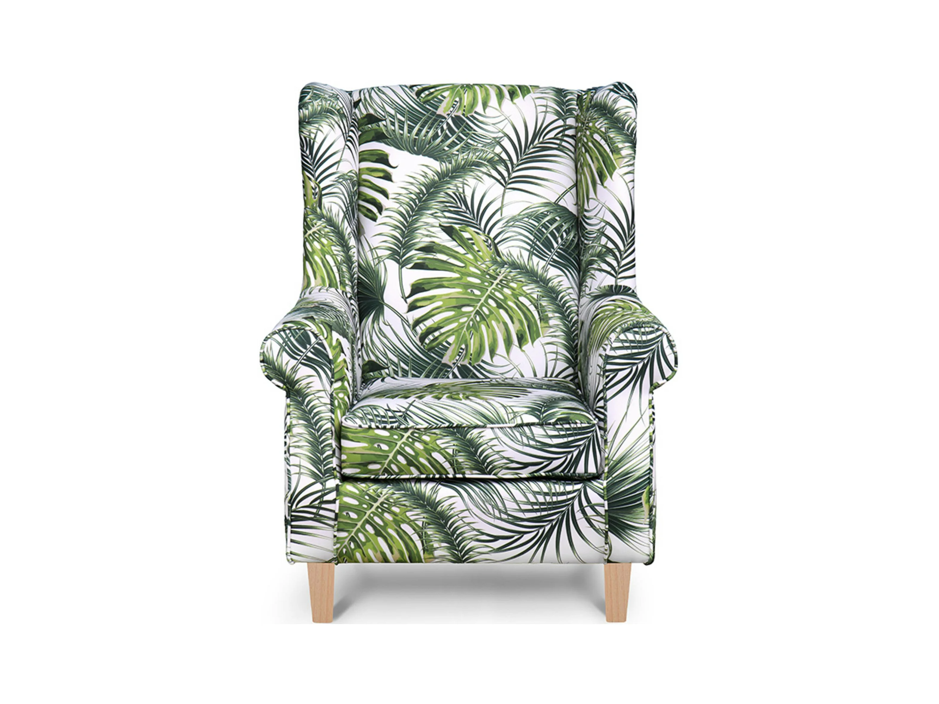 Ohrensessel Massivholzbeine - weiß-grün - MILES