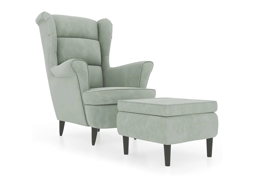Ohrensessel mit Hocker Hellgrau Samt