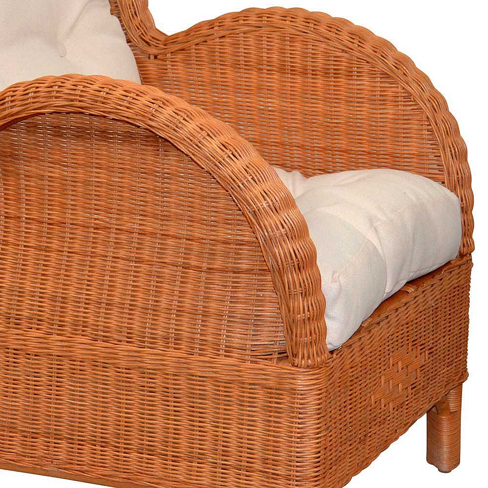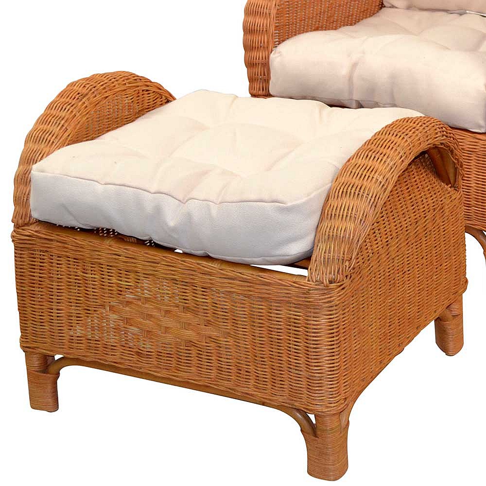 Ohrensessel Rattan mit Hocker im Landhausstil Honigfarben (zweiteilig)