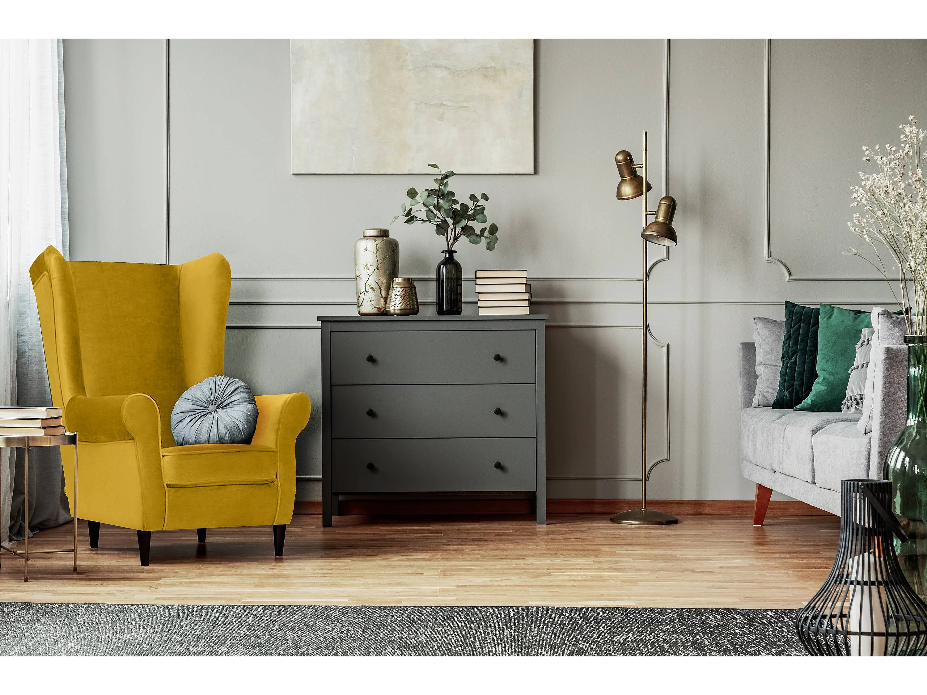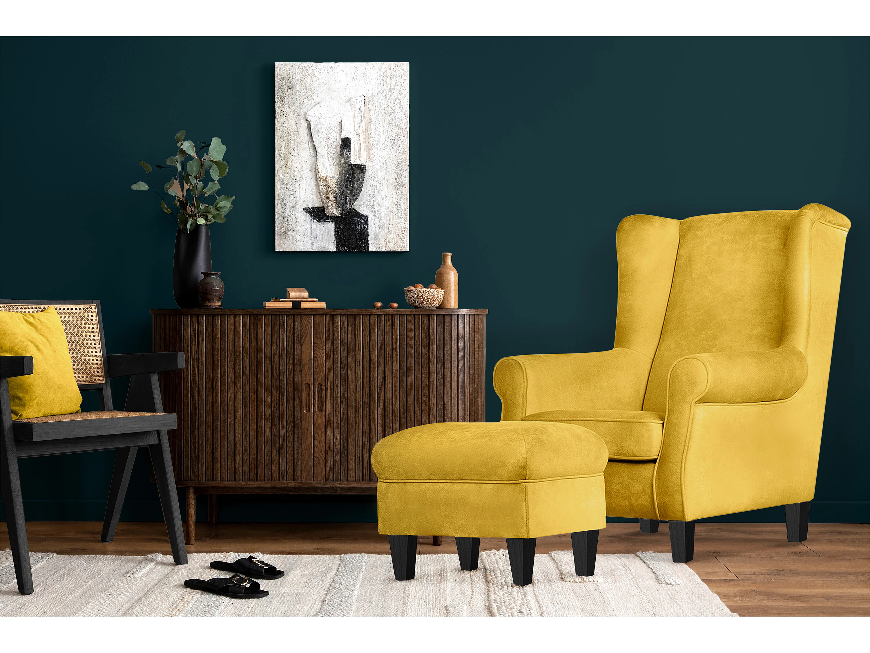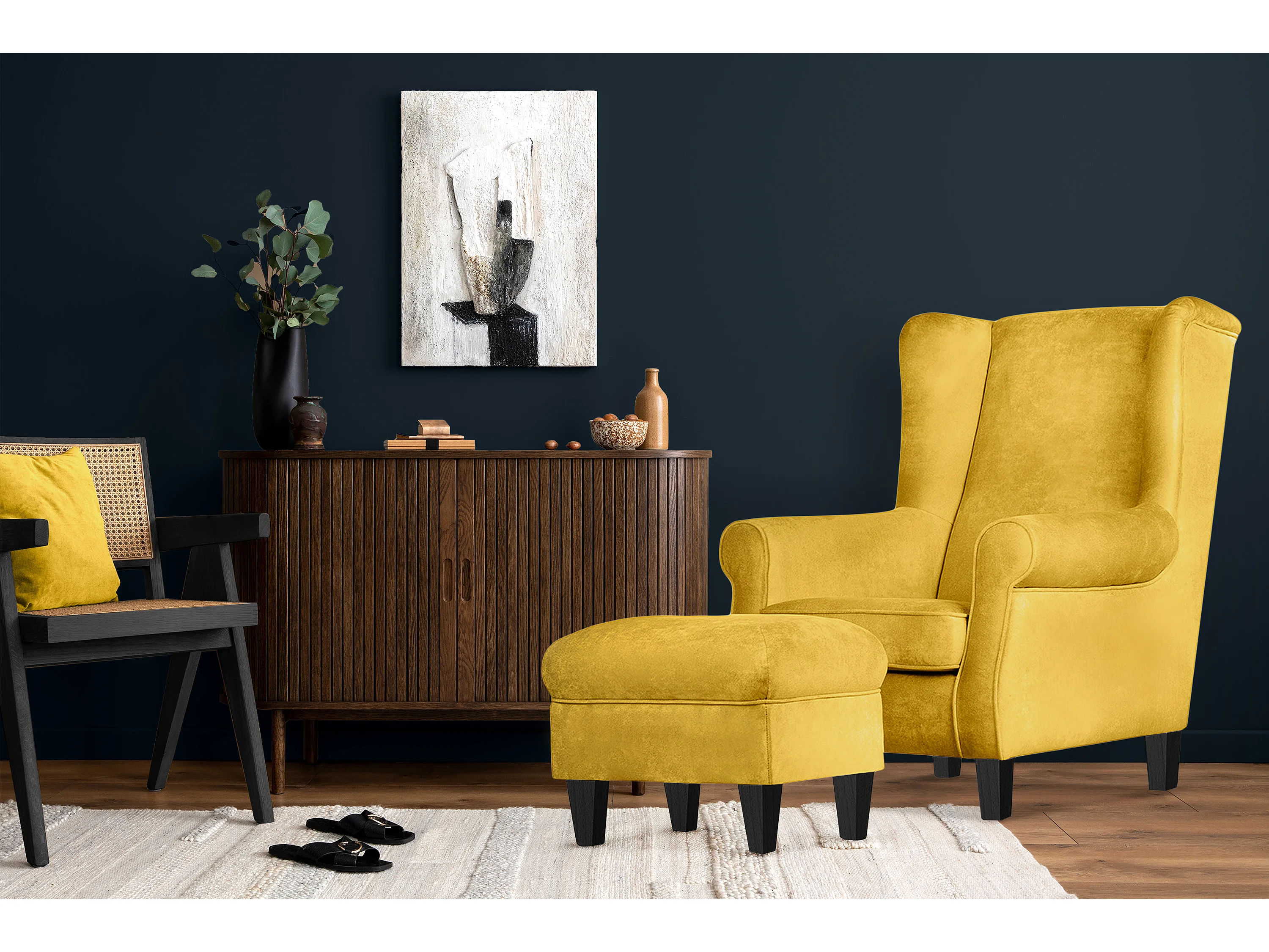 Ohrensessel Set inkl. Sitzhocker - Gelb - MILES