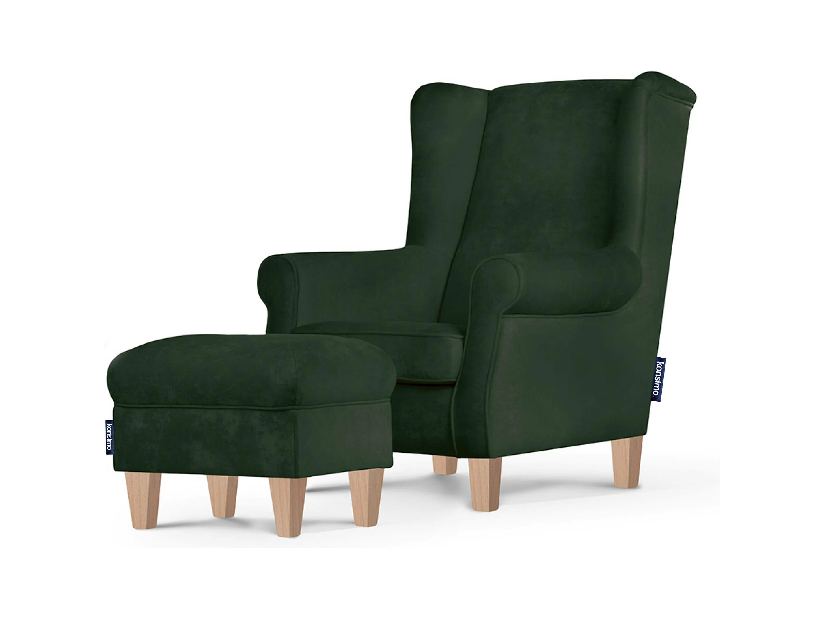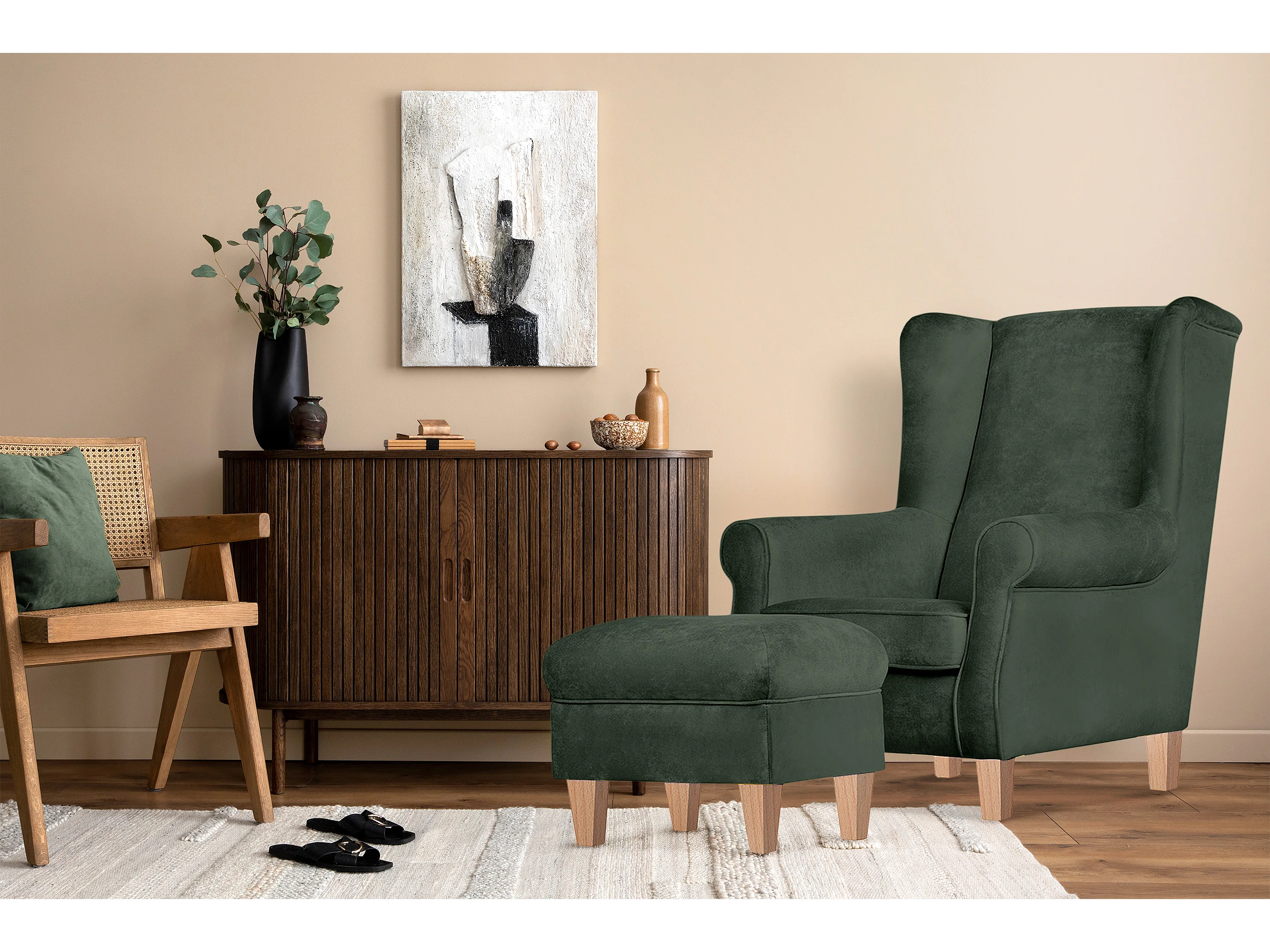 Ohrensessel Set inkl. Sitzhocker - grün - MILES
