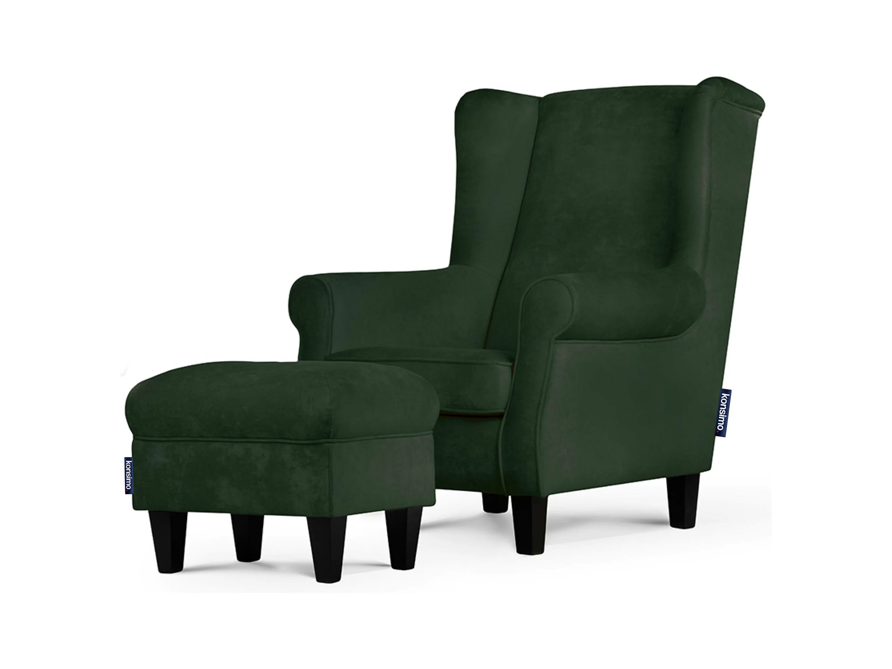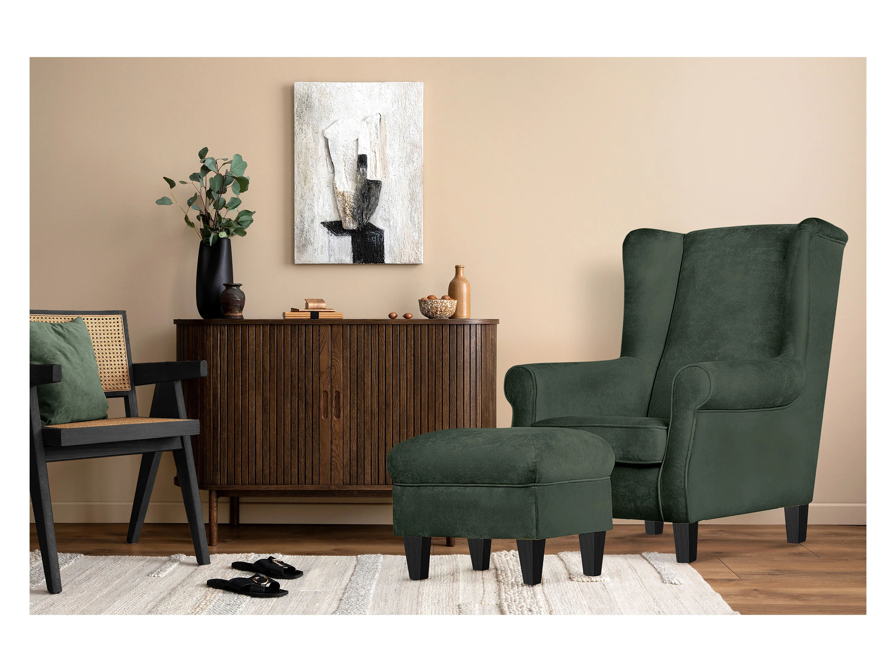 Ohrensessel Set inkl. Sitzhocker - Grün - MILES