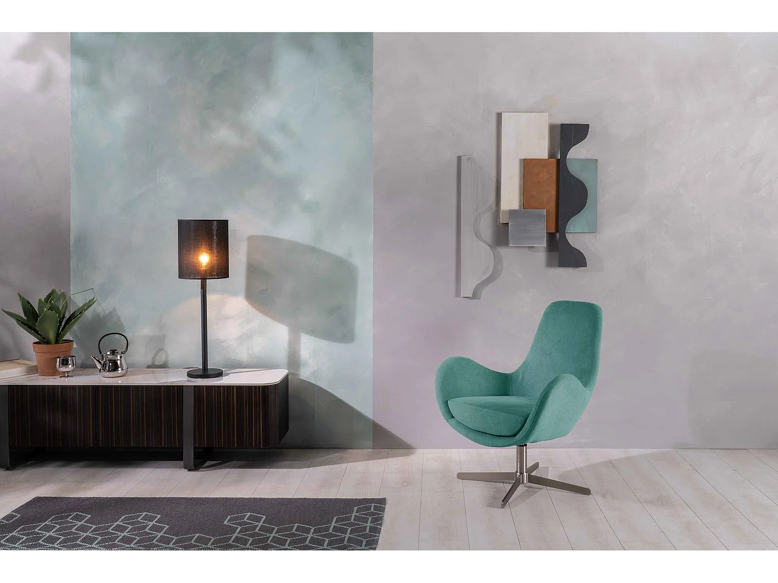 Olga - Drehsessel aus aquamarinfarbenem Stoff