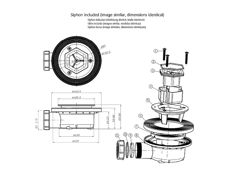 OPTIMA Extra flache Mineralguss-Duschwanne 4 Farben Schwarz RAL 9005 100x200 Ablaufschutz in Chrom