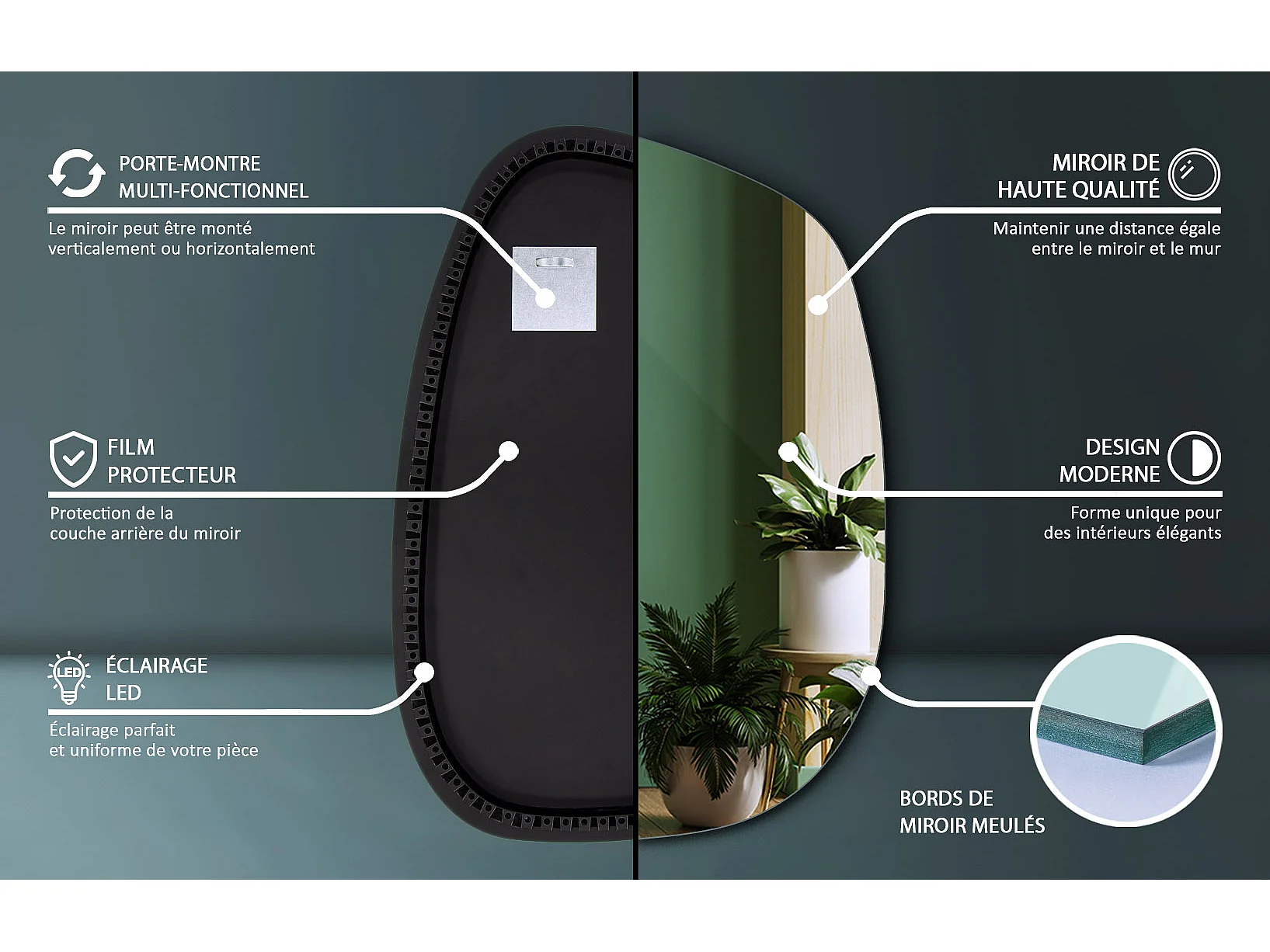 Organischer Spiegel mit Beleuchtung LED, Ausgefallene Form mit neutralem Licht, 67x47 cm, Tulup